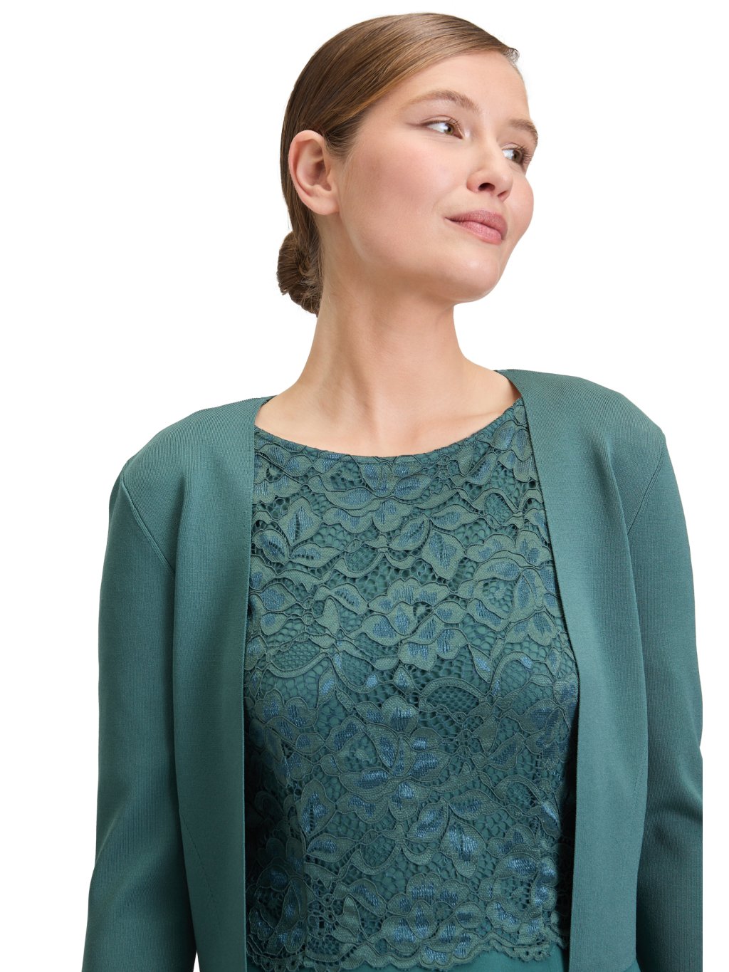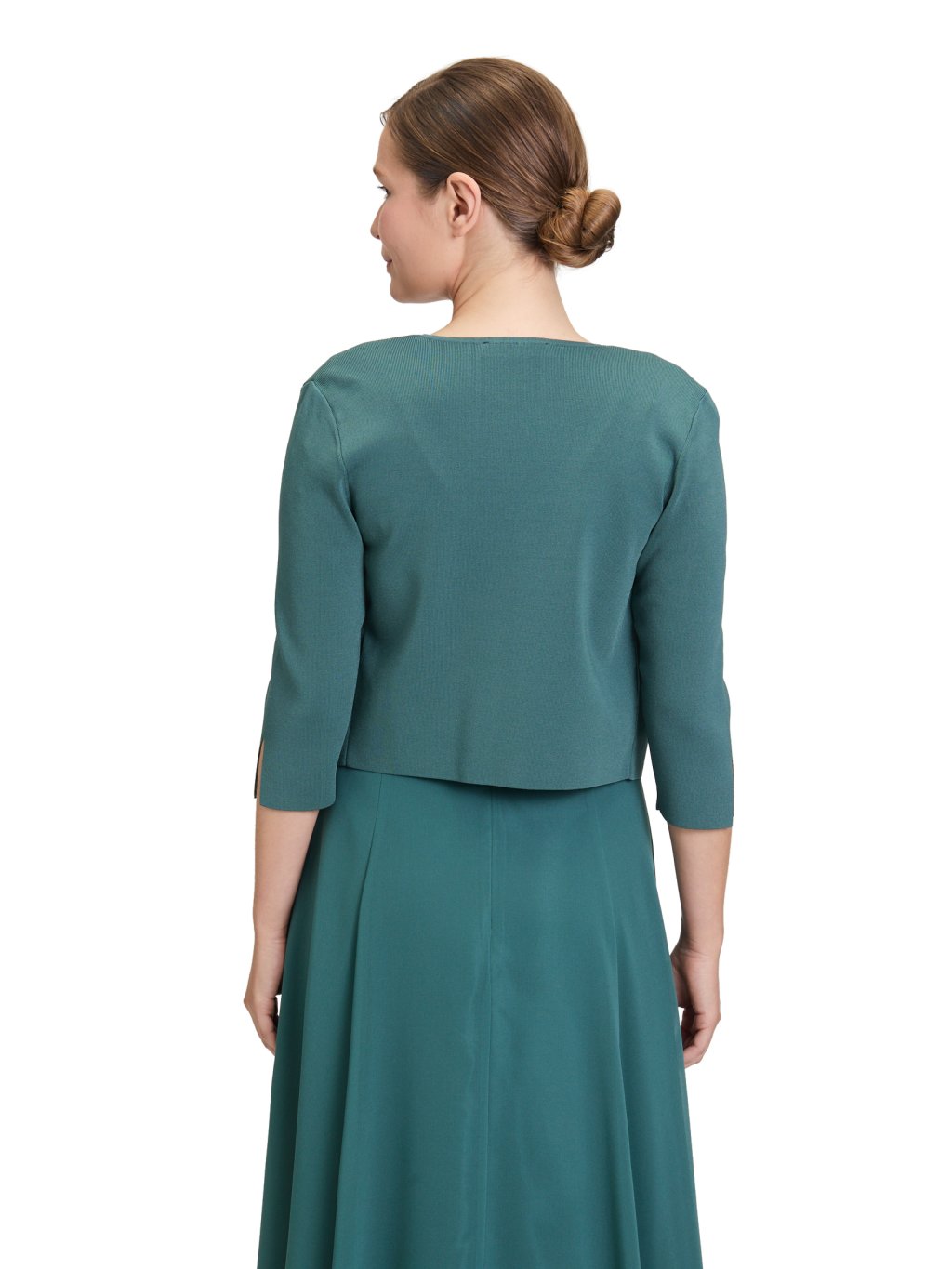 Jednoduché řešení, když chcete mít outfit dotažený, ale nepřehnaný. Toto krátké bolerko v elegantním zeleném odstínu je navržené tak, aby přirozeně doplnilo šaty i overal – bez narušení jejich linie. Čistý, otevřený střih nechává vyniknout spodní model, zatímco jemně strukturovaný materiál dodá outfitu uhlazený vzhled. Délka ke pasu opticky prodlužuje postavu a je ideální volbou pro chvíle, kdy potřebujete zakrýt paže nebo ramena, ale nechcete klasické sako. Proč ho využijete: lehké zakrytí ramen a paží neruší střih šatů ani overalu elegantní alternativa ke saku ideální na svatby, oslavy i formální akceDoplňkové parametry