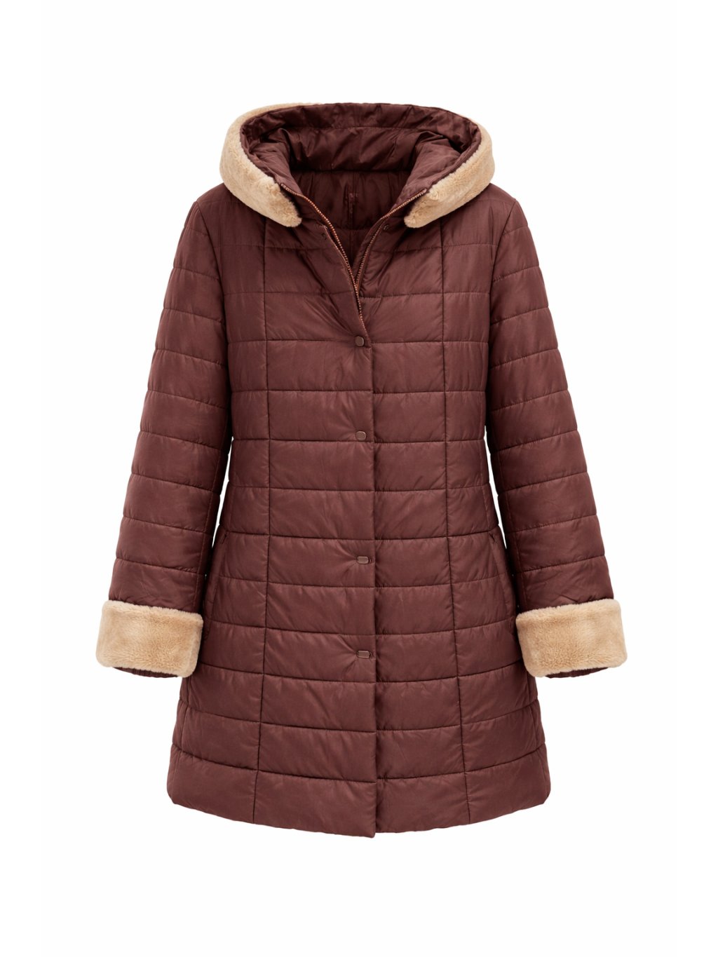 Elegantní prošívaný kabát s kapucí, který zahřeje a zároveň působí velmi žensky. Měkký kožíšek na kapuci a rukávech dodává modelu luxusní vzhled i příjemný komfort. Prodloužený střih lichotí postavě a je ideální pro chladné dny ve městě i na volný čas.