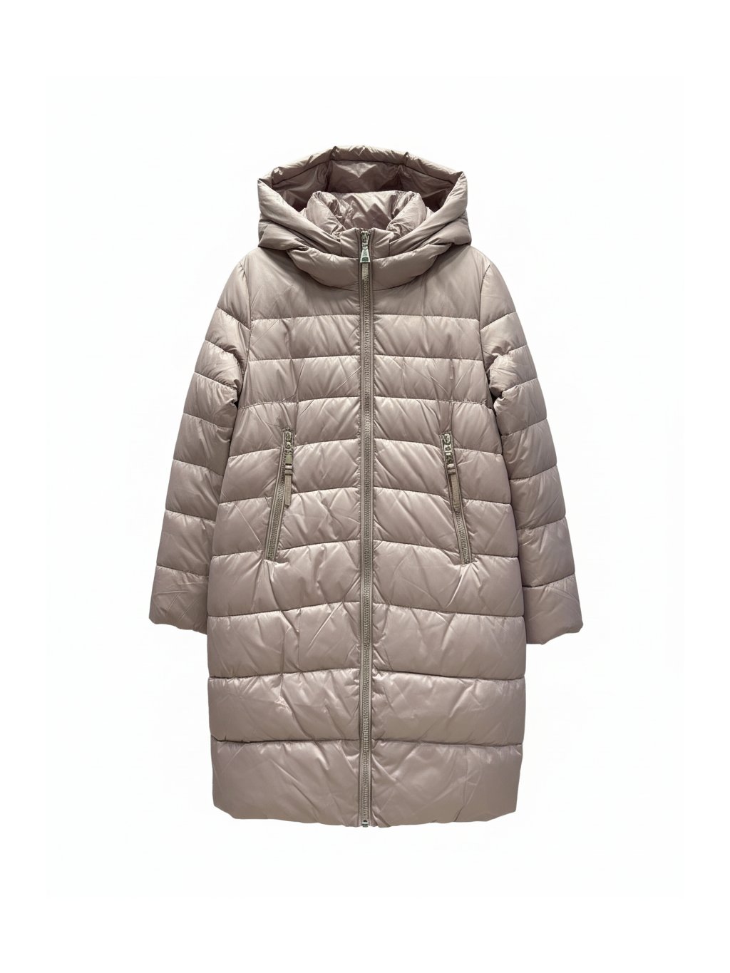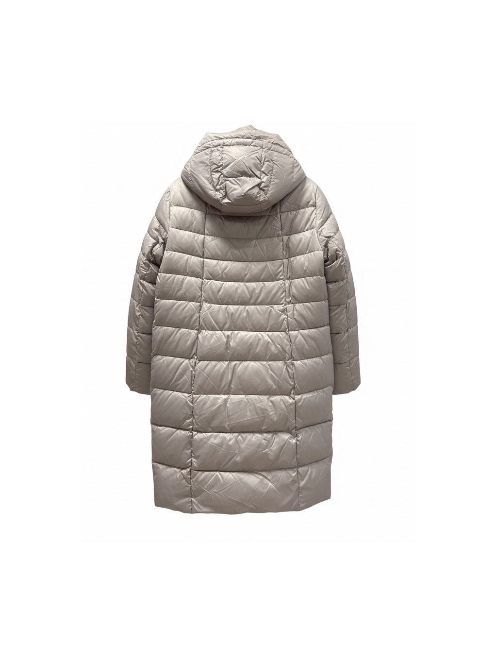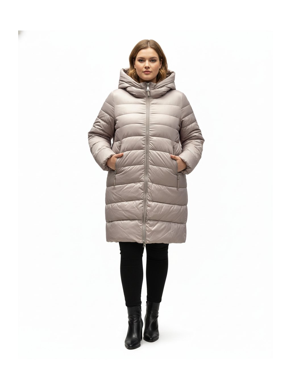 Stylová dámská dlouhá prošívaná bunda v jemném béžovém odstínu je ideální volbou pro chladnější dny, kdy chcete spojit eleganci, komfort a praktičnost.Bunda má rovný, lehce uvolněný střih, který lichotí postavě a zároveň umožňuje pohodlné vrstvení. Prošívání v horizontálních liniích zajišťuje moderní vzhled a rovnoměrné zateplení. Velká kapuce poskytuje maximální ochranu před chladem i větrem a dodává bundě městský, současný styl.