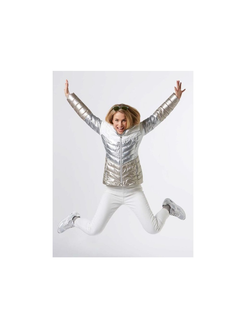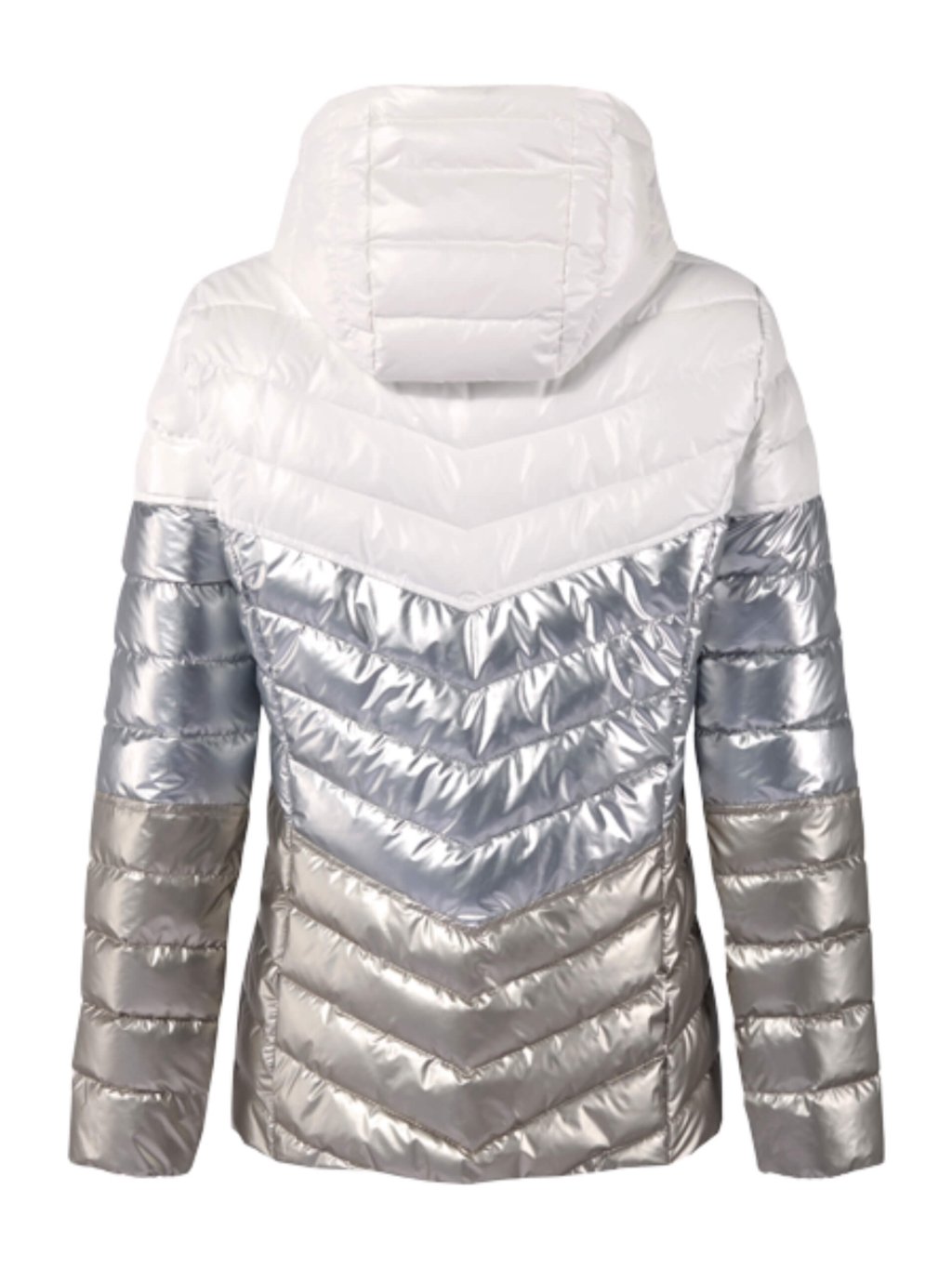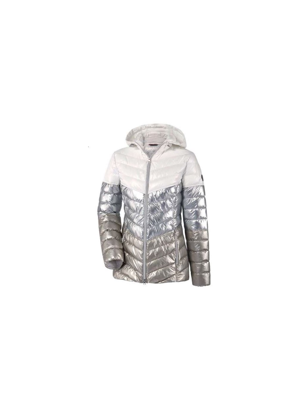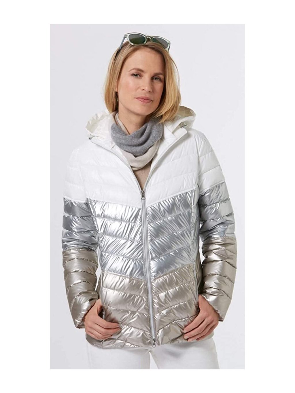 Moderní prošívaná bunda, která zaujme na první pohled elegantním dvoubarevným provedením. Lesklý spodní díl v metalickém tónu dodává modelu módní šmrnc, zatímco světlý horní díl působí čistě a nadčasově. Šikmé prošívání krásně tvaruje postavu a opticky zeštíhluje siluetu.Bunda má praktickou kapuci, zapínání na zip po celé délce a boční kapsy na zip pro pohodlné každodenní nošení. Lehký, ale hřejivý materiál je ideální pro chladnější dny ve městě i na volný čas.