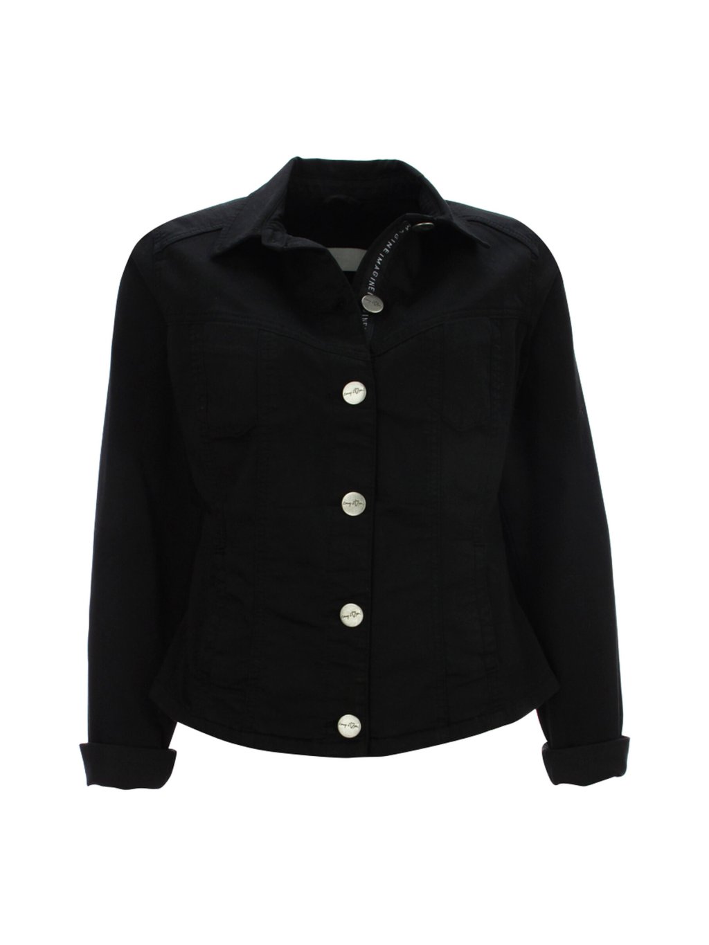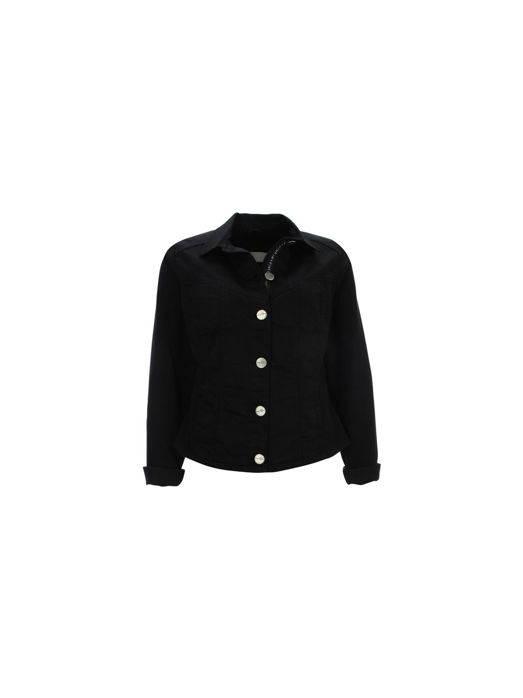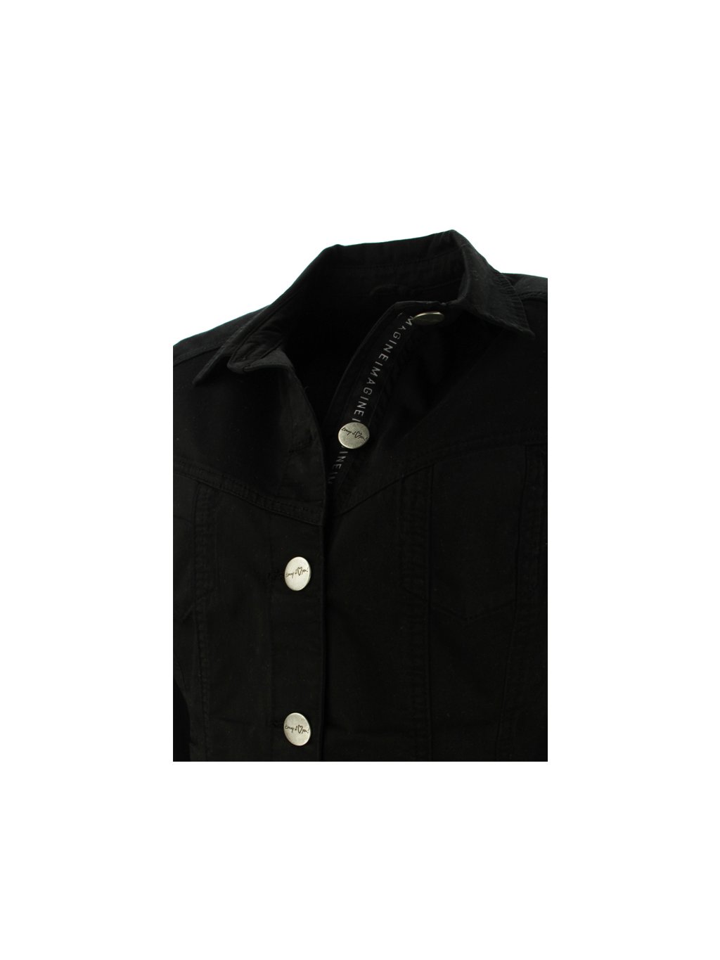 Stylová džínová bundička německé značky KENNY S Bundička je černé barvy z velmi příjemného materiálu. Zdobí ji límeček, kapsy a je také možné zapnutí na knoflíky.
