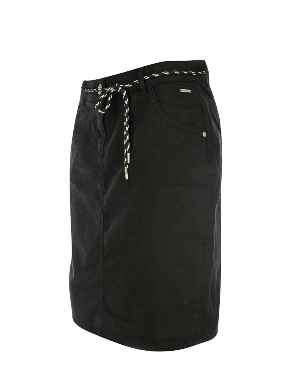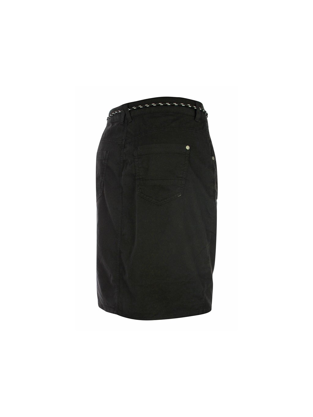 Dámská mini sukně KENNY S černé barvy s ozdobnou šňůrkou místo pásku. Sukně je rovného střihu s kapsami.