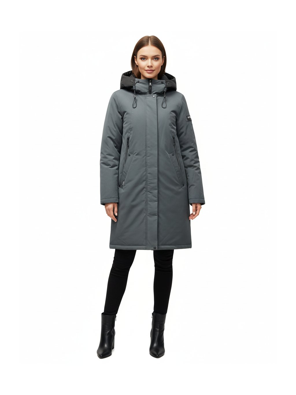 Moderní dámský kabát, který spojuje funkčnost, pohodlí a městský styl. Díky prodloužené délce a hřejivé výplni poskytuje spolehlivý komfort i v chladných dnech, aniž by působil těžce nebo robustně.