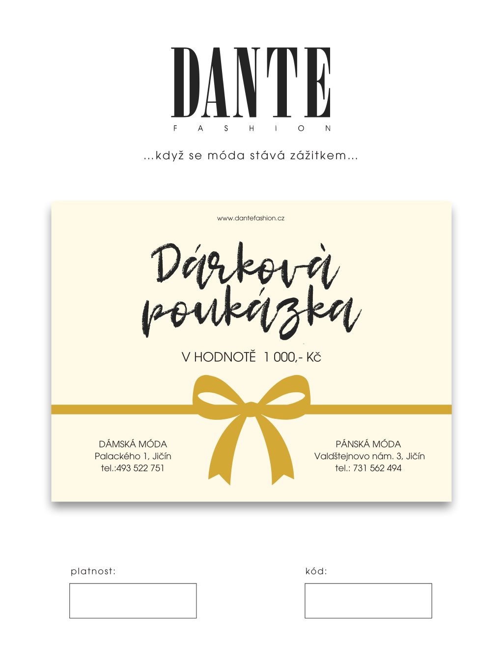 DÁRKOVÁ E-POUKÁZKA DANTE 1000,- Kč