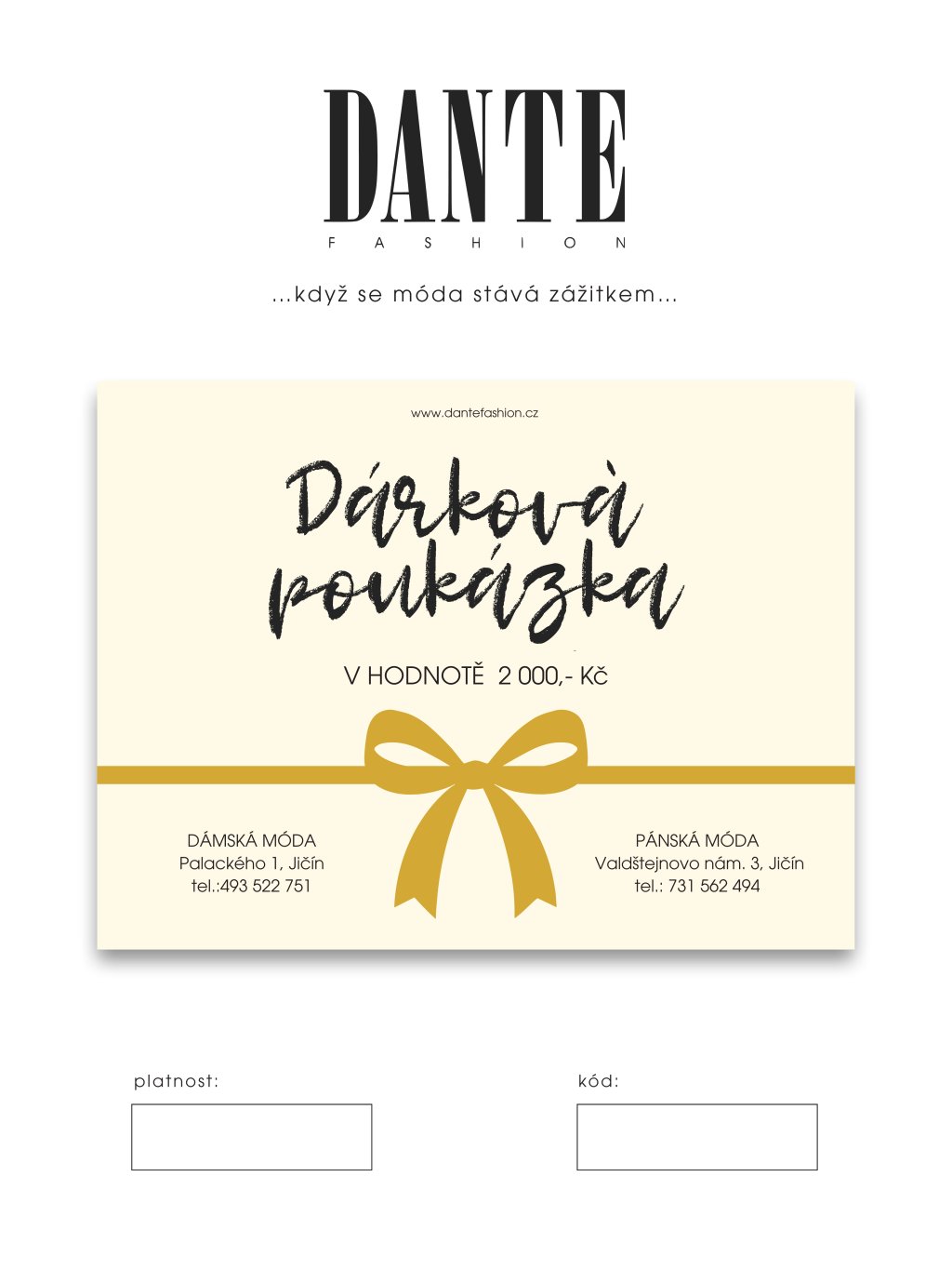 DÁRKOVÁ E-POUKÁZKA DANTE 2000,-Kč