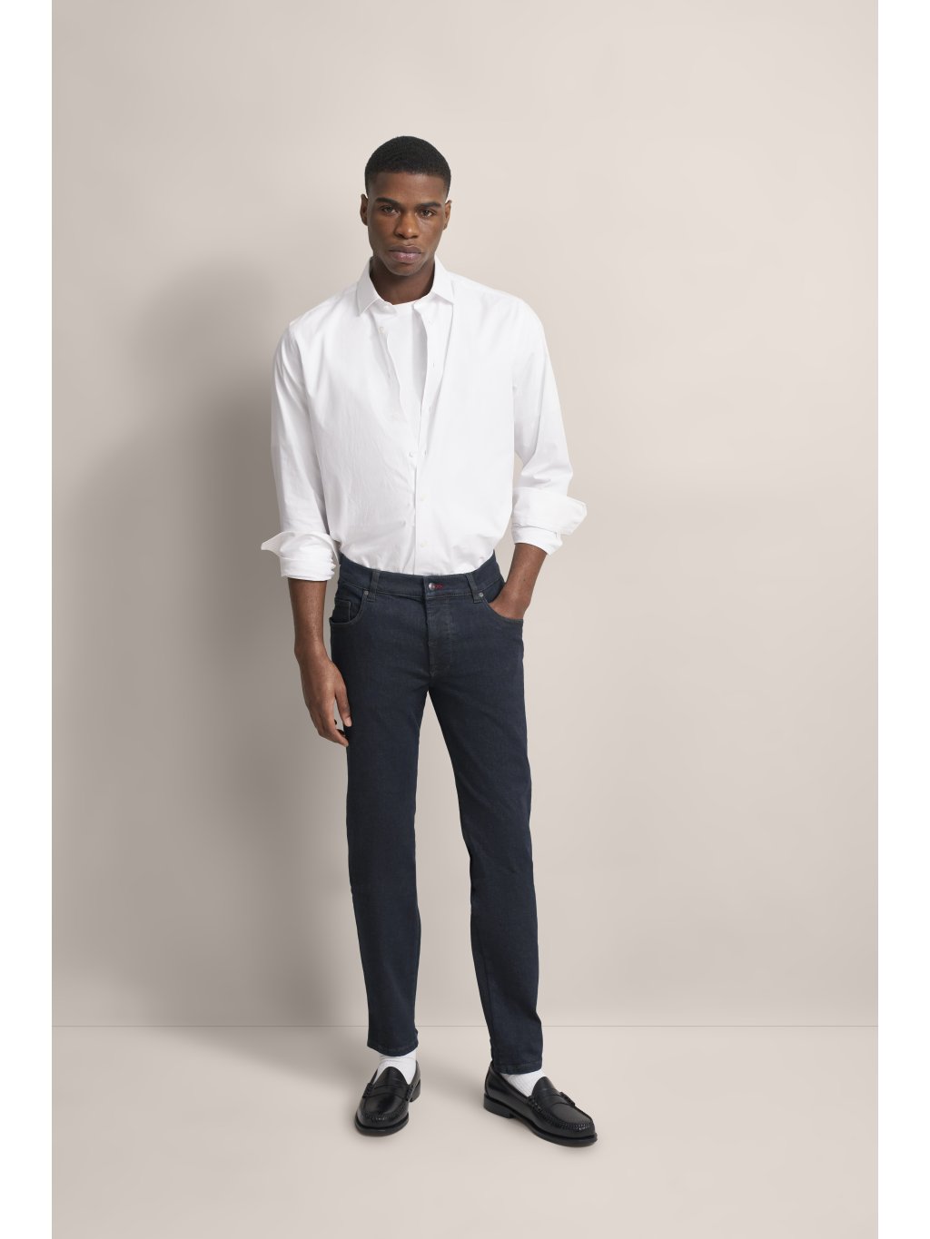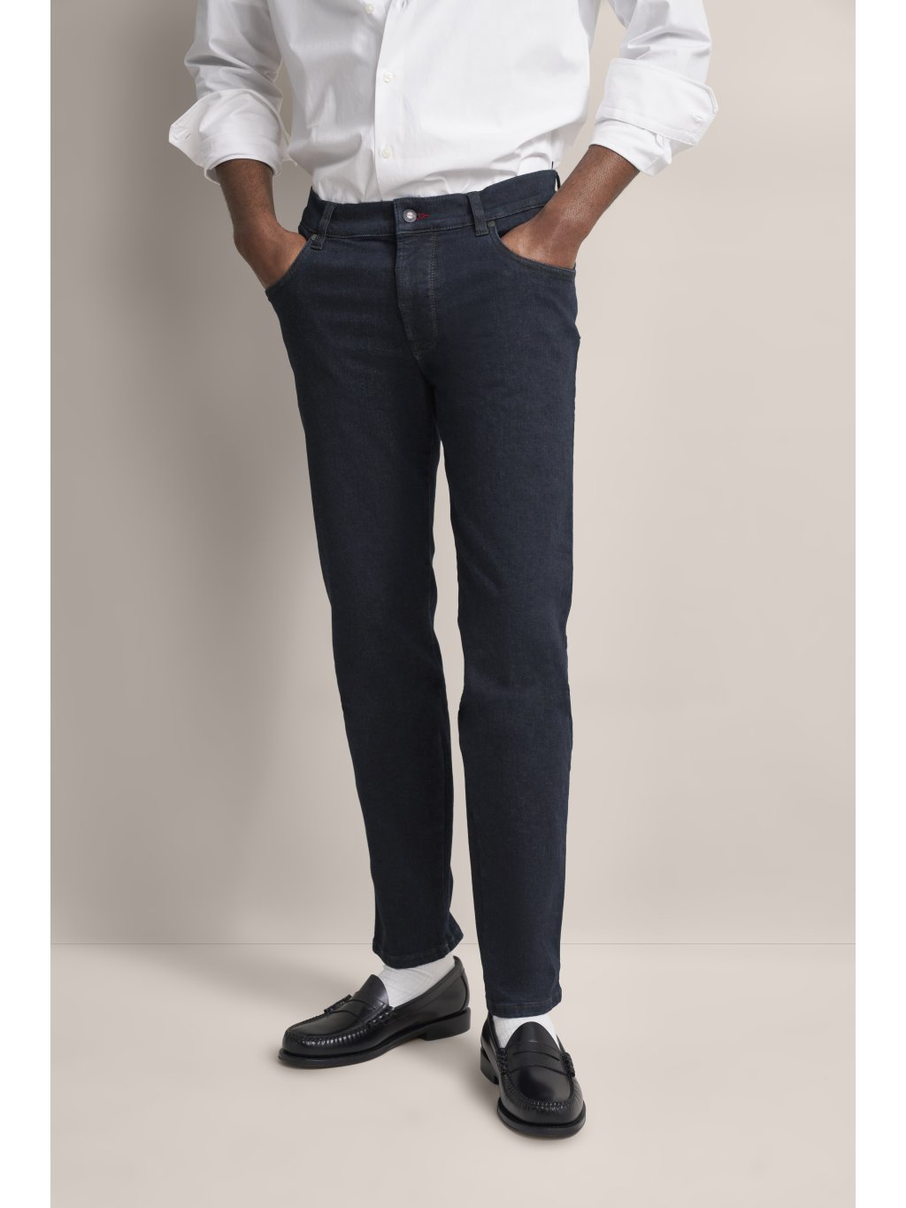 Pánské džíny v moderním střihu z kvalitního denimu s jemným strečem pro maximální pohodlí při nošení. Nadčasová tmavá barva se snadno kombinuje s košilí i mikinou a hodí se do práce i na volný čas. Ideální volba pro muže, kteří chtějí pohodlí, styl a univerzální využití v jednom.