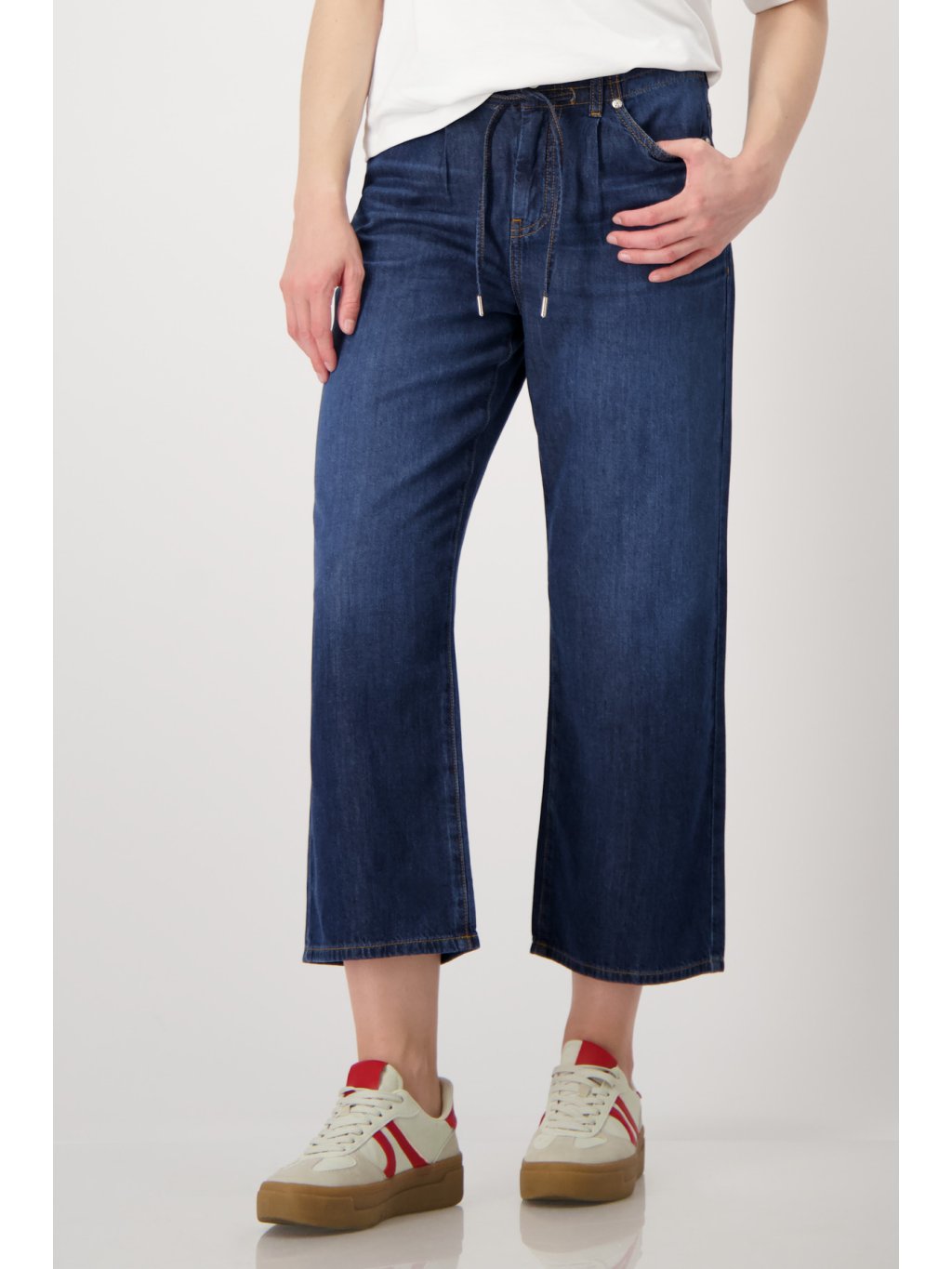 Dámské džíny od oblíbené značky jsou v pase na gumu a stažení šňůrkou. Kalhoty jsou rovného střihu. Zdobí je přední a zadní kapsy.