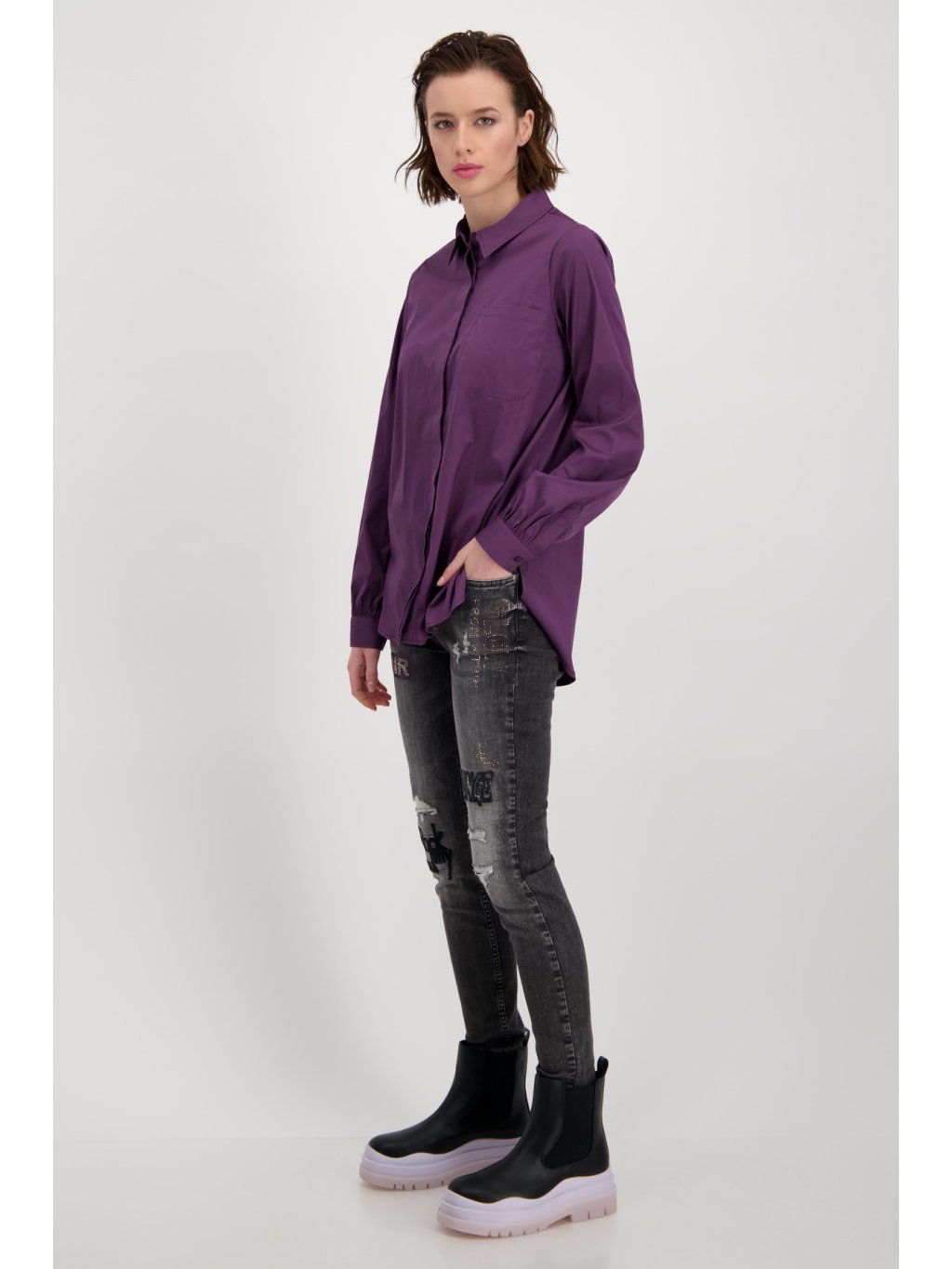 Krásná, moderní halenka. Šeříková barva košile vám dodá eleganci. Halenka je rovného střihu se zapínáním na knoflíky. Tento kousek je velmi vzdušný a skvělý na podzimní dny.Doplňkové parametry