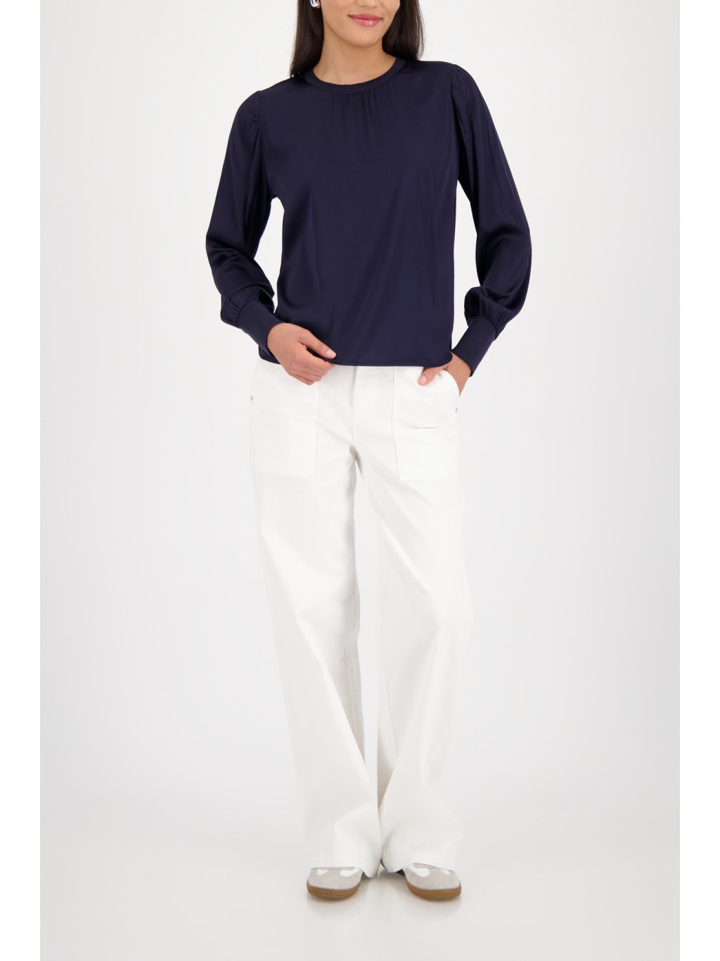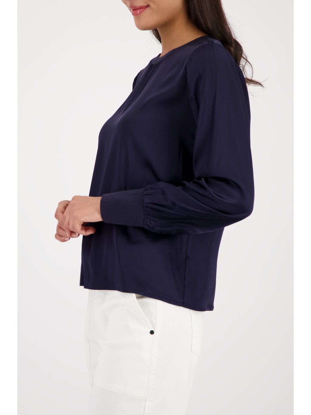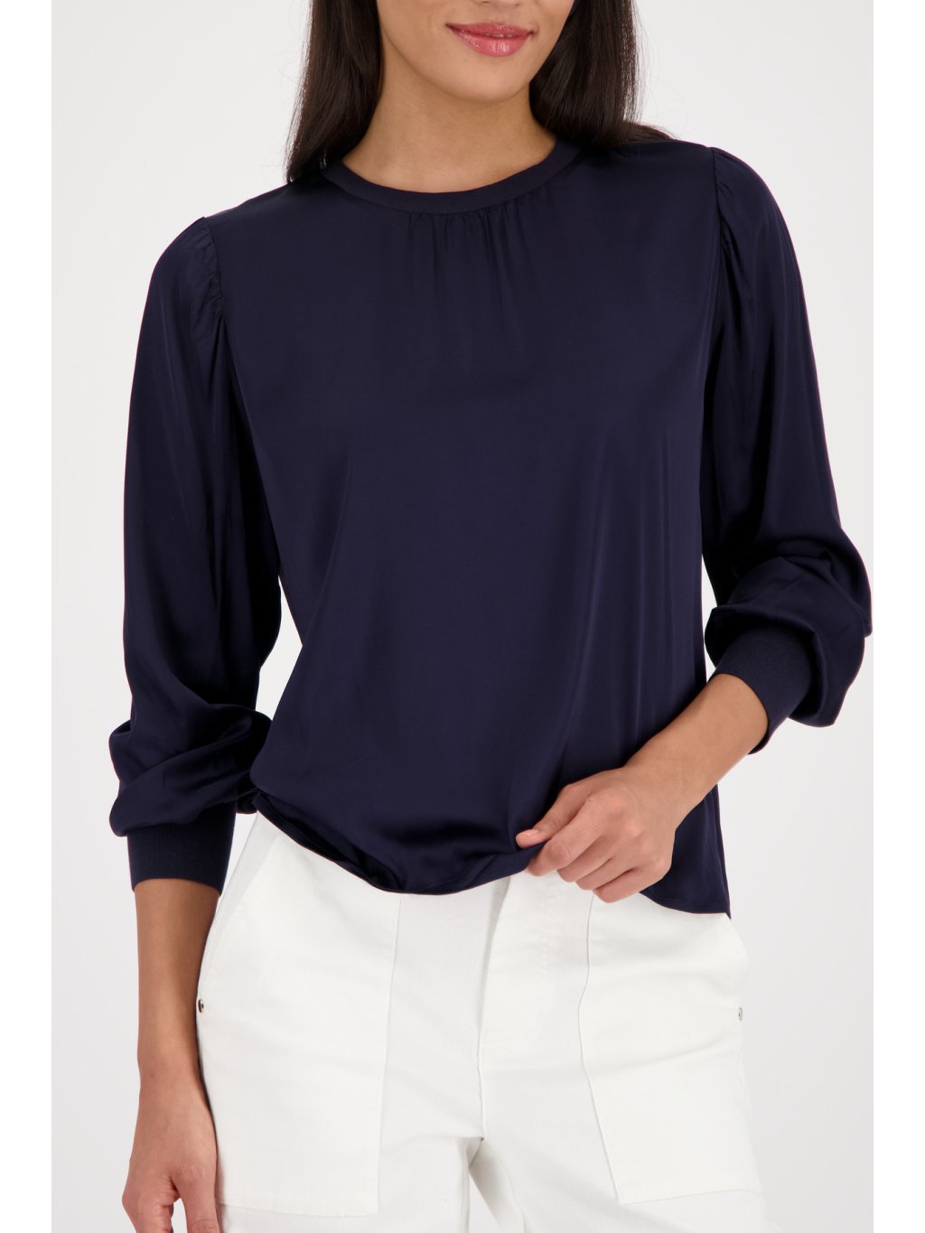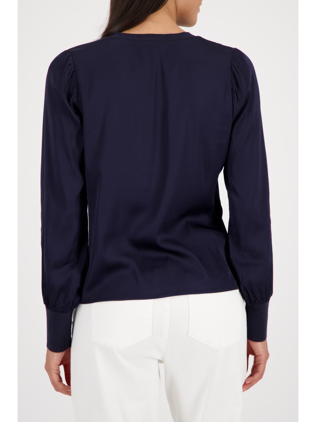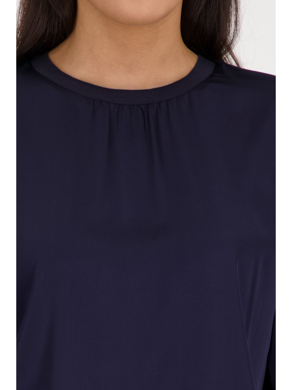 Tmavě modrá halenka Monari z lehkého, splývavého materiálu působí elegantně a přirozeně zároveň. Jemné řasení u výstřihu dodává ženskost a lehkost, zatímco čistý střih nechává prostor vyniknout siluetě bez zbytečných detailů. Pružné zakončení rukávů zajišťuje pohodlí při nošení a zároveň vytváří jemně elegantní linii. Ideální volba pro ženy, které chtějí vypadat upraveně po celý den – v práci, na schůzce i při společenské příležitosti. ? lehký, splývavý materiál ? jemné řasení u výstřihu ? elegantní a nadčasová barva ? univerzální kousek do šatníkuDoplňkové parametry
