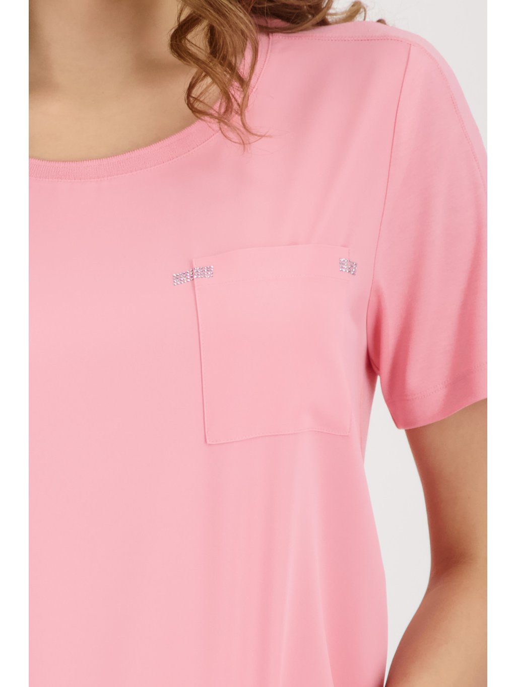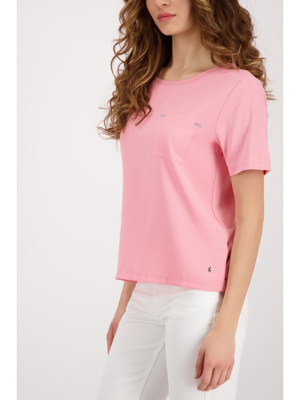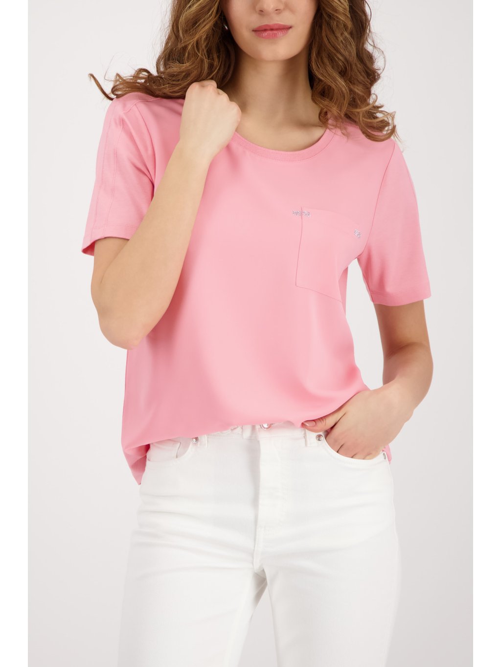 Minimalismus, který funguje. Tato dámská halenka značky MONARI v jemném růžovém odstínu je ideální volbou pro ženy, které milují čistý styl s nádechem elegance. Halenka od MONARI má volnější střih a krátké rukávy, díky čemuž působí uvolněně a zároveň velmi žensky. Dominantním prvkem je náprsní kapsa s decentním třpytivým zdobením, která dodává modelu luxusní detail, aniž by působila výrazně. Lehký a příjemný materiál zajišťuje komfort při nošení po celý den – ideální do práce, na schůzky i volný čas.Doplňkové parametry