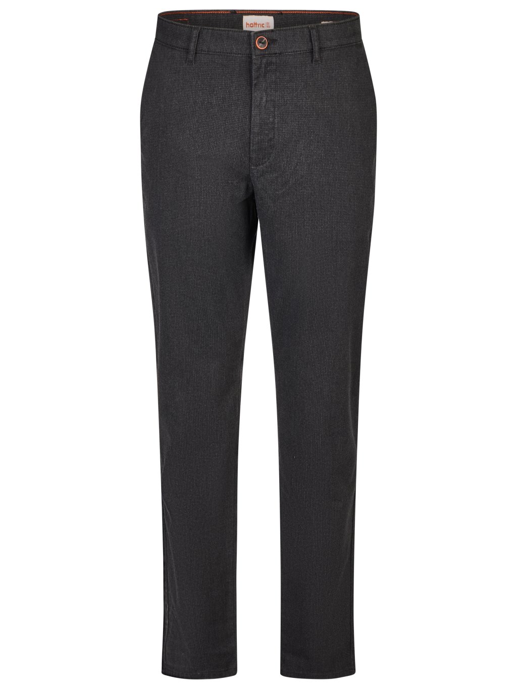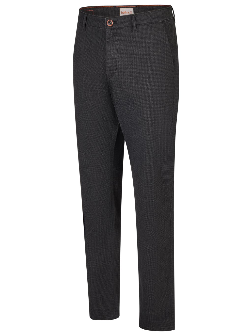 Moderní pánské kalhoty od německé značky Hattric, která se vyznačuje precizním zpracováním a pohodlnými střihy. Tyto kalhoty v decentním černém odstínu s jemnou strukturou materiálu působí elegantně a přitom univerzálně – ideální do práce, na schůzku i pro volný čas.Doplňkové parametry