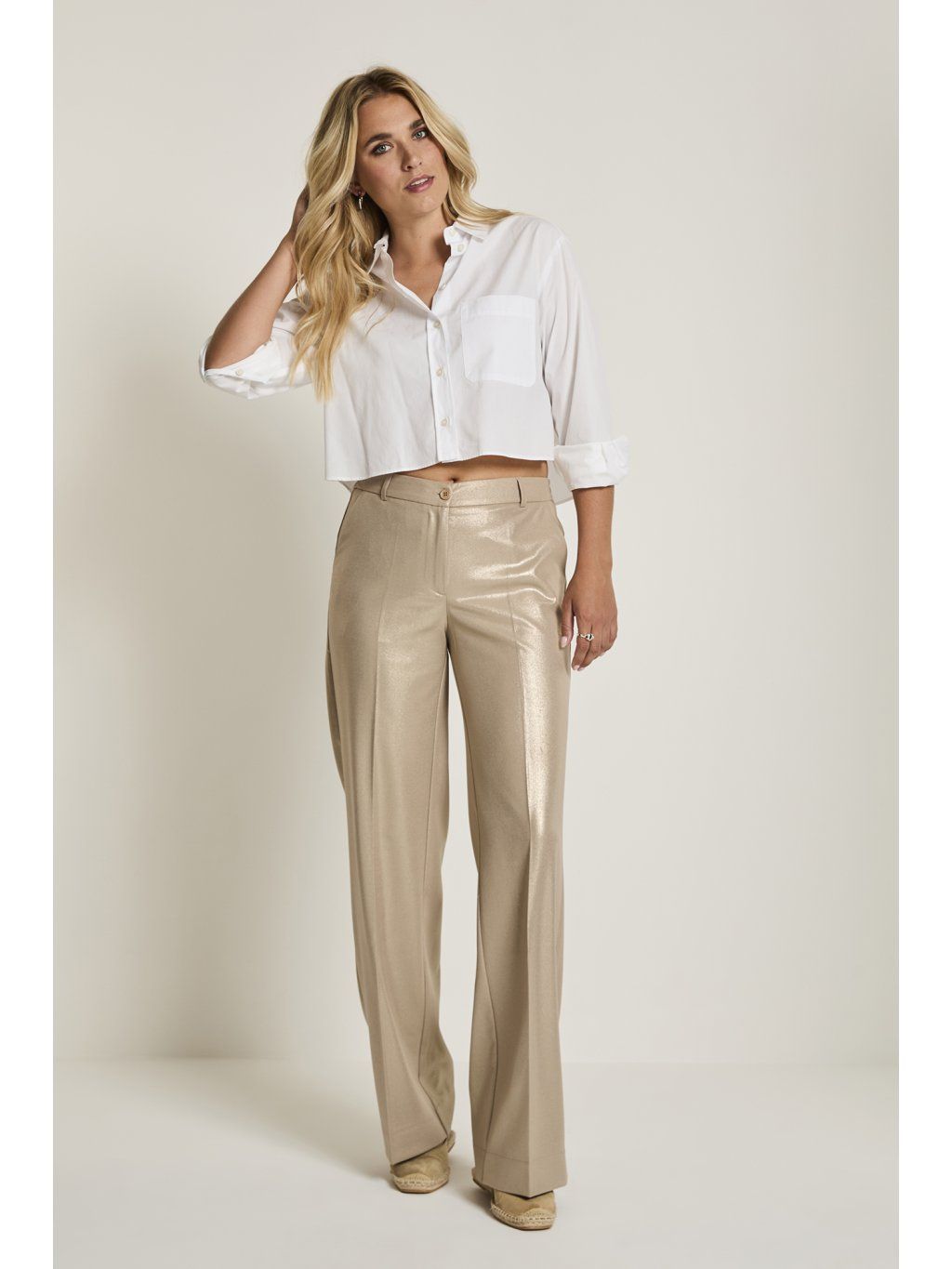 Stylové dámské kalhoty Para-Mi Mira zaujmou moderním vzhledem a elegantním detailem v podobě lurexového vlákna, které dodává modelu jemný třpytivý efekt. Kalhoty Para-Mi Mira jsou navrženy tak, aby spojovaly pohodlí s ženskou elegancí. Střih Mira je oblíbený díky svému pohodlnému provedení a lichotivé siluetě, která krásně tvaruje postavu a zároveň poskytuje dostatek komfortu při nošení. Díky kvalitnímu materiálu jsou kalhoty příjemné na dotek a dobře drží tvar. Kalhoty Para-Mi Mira se skvěle hodí jak pro každodenní nošení, tak i pro elegantnější outfit. Snadno je zkombinujete s halenkou, svetrem nebo sakem a vytvoříte tak moderní a stylový vzhled.