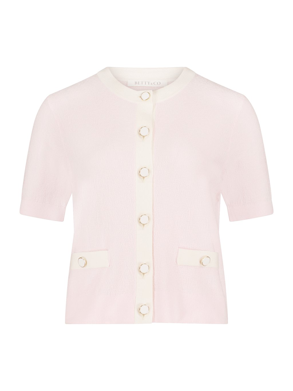Stylový dámský kardigan BETTY & CO je ideální volbou pro ženy, které hledají elegantní a nadčasový kousek do svého šatníku. Tento jemný kardigan BETTY & CO v romantickém světle růžovém odstínu působí velmi ženským a sofistikovaným dojmem a snadno doplní jak každodenní, tak elegantnější outfit. Pletený BETTY & CO kardigan je navržen s kulatým výstřihem a zapínáním na výrazné ozdobné knoflíky, které dodávají modelu luxusní vzhled. Kontrastní lemování v krémové barvě zvýrazňuje střih a přidává celému modelu moderní a elegantní charakter. Krátké rukávy a jemný pletený materiál zajišťují pohodlné nošení během jarních a letních dnů. Díky dvěma dekorativním kapsám na přední straně působí kardigan BETTY & CO velmi stylově a zároveň prakticky. Tento nadčasový model se skvěle kombinuje s kalhotami, sukněmi i šaty a stane se univerzálním základem elegantního šatníku. Značka BETTY & CO je známá kvalitním zpracováním, precizními detaily a moderním ženským designem. Právě proto je tento BETTY & CO kardigan skvělou volbou pro ženy, které chtějí spojit eleganci, pohodlí a kvalitní módu. Hlavní vlastnosti: elegantní dámský kardigan BETTY & CO jemný pletený materiál světle růžová barva s kontrastním lemováním zapínání na ozdobné knoflíky dekorativní přední kapsy krátké rukávy pro pohodlné nošení Tento stylový kardigan BETTY & CO je perfektní kousek pro ženy, které chtějí do svého šatníku přidat elegantní, nadčasový a snadno kombinovatelný model.Doplňkové parametry