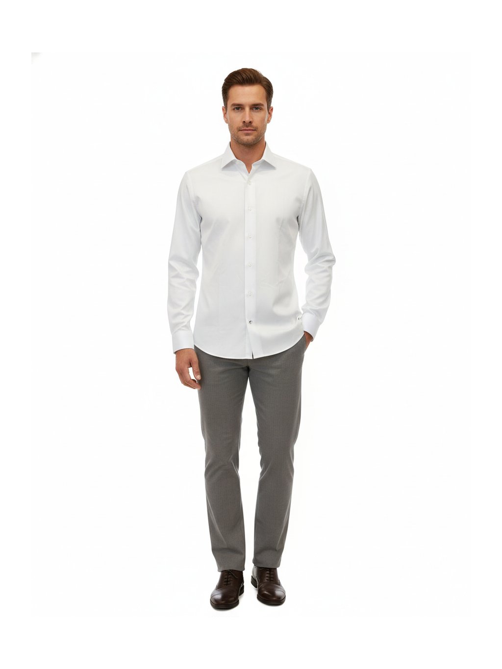 Nadčasová bílá košile, která patří mezi stálice šatníku. Oblíbená značka, osvědčený slim fit střih, který zvýrazní siluetu a zároveň zůstává pohodlný po celý den. Příjemný materiál z několikrát upravené bavlny a elastanu je hebký na dotek, dobře prodyšný a ideální jak do práce, tak pro společenské příležitosti.