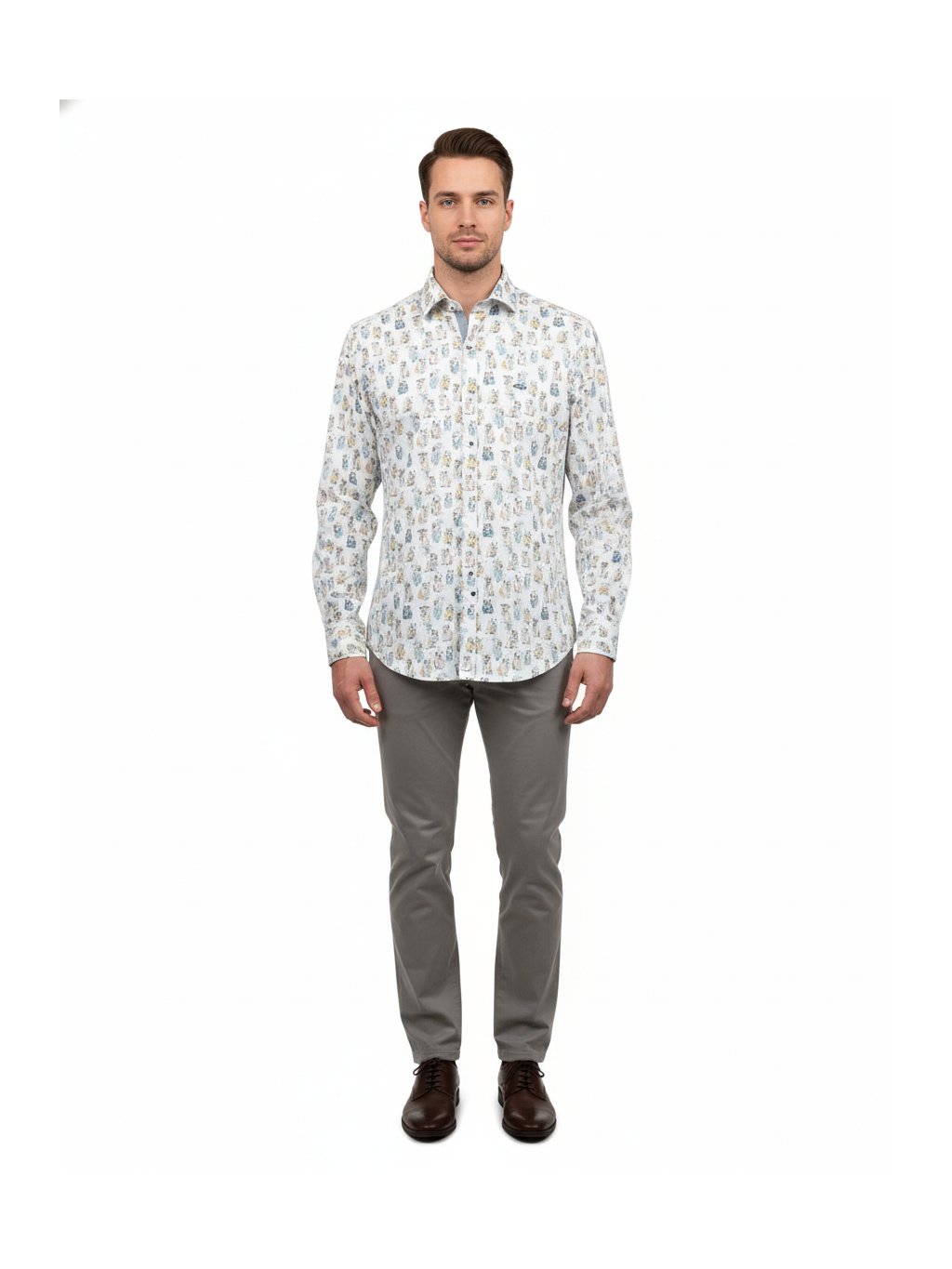 Košile, která na první pohled zaujme originálním potiskem s motivem buldočků. Detail, který dodává košili osobitý, lehce hravý charakter, aniž by působila přehnaně. Regular střih zajišťuje pohodlí a volnost pohybu při každodenním nošení. Vyrobena z několikrát upravované 100% bavlny, která je příjemná na dotek, prodyšná a komfortní po celý den. Ideální volba pro muže, kteří chtějí vystoupit z davu, ale stále si zachovat styl a kvalitu.Doplňkové parametry