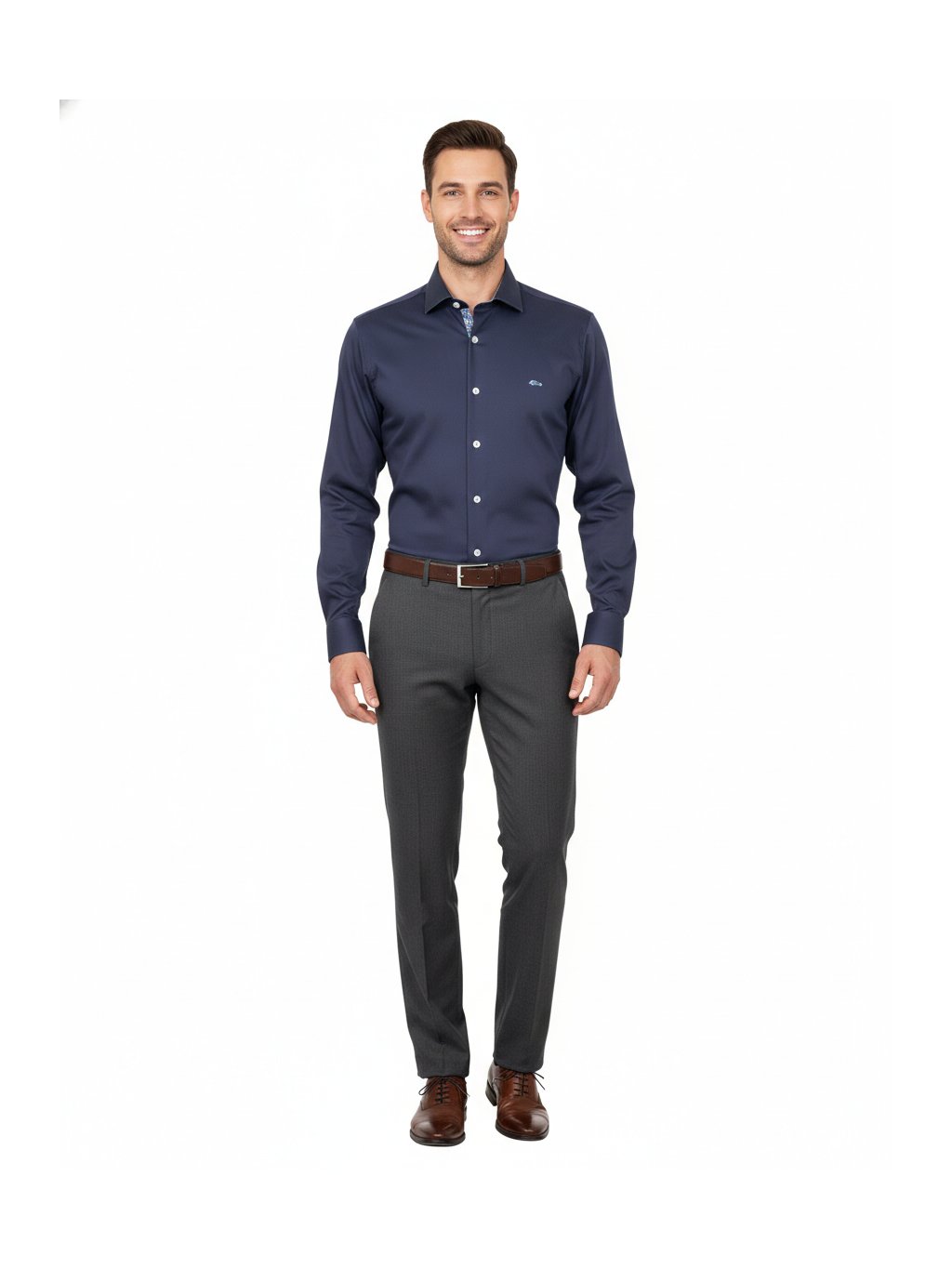 Elegantní modrá košile, která zaujme promyšlenými detaily. Odstíny modré barvy decentně zdobí vnitřek límečku a vnitřní stranu manžet, což dodává košili sofistikovaný a moderní vzhled. Slim fit střih zvýrazňuje siluetu a zároveň zachovává pohodlí při nošení. Vyrobena z několikrát upravované 100% bavlny, která je měkká, prodyšná a velmi příjemná na dotek. Ideální volba pro muže, kteří ocení eleganci, kvalitu a detaily, které dělají rozdíl.Doplňkové parametry