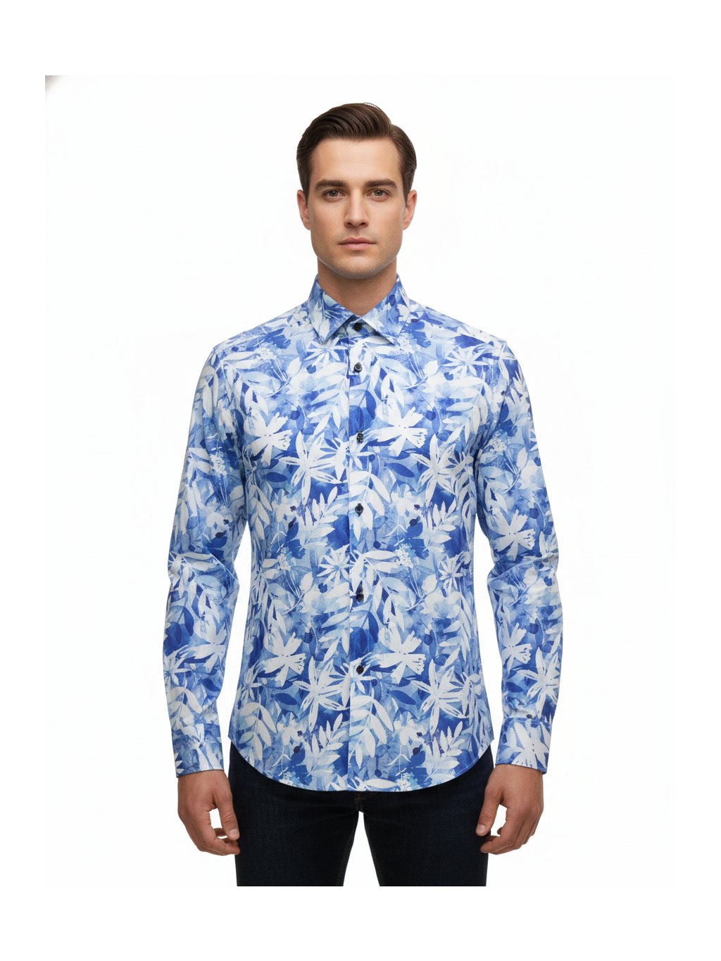 Pánská košile s moderním španělským rukopisem. Originální modro-bílý vzor dodává outfitu svěžest a sebevědomý styl, zatímco kvalitní 100% bavlna zajišťuje maximální komfort po celý den. Precizní střih skvěle sedí a hodí se jak k džínům, tak k elegantním kalhotám. Ideální volba pro muže, kteří chtějí vyniknout bez kompromisů v pohodlí.