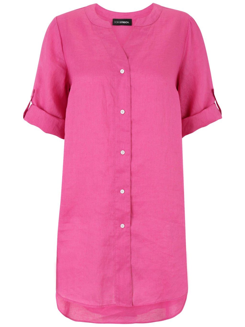 Jednoduchost, která má styl. Tato košilová halenka Doris Streich v sytě růžovém odstínu působí svěže, žensky a velmi moderně. Čistý design bez potisku dává vyniknout barvě i kvalitnímu zpracování. Volnější střih zajišťuje pohodlí po celý den a zároveň lichotí postavě. Zapínání na knoflíky po celé délce umožňuje variabilní styling – můžete ji nosit zapnutou jako tuniku nebo rozepnutou přes top. Rukávy s možností ohrnutí dodávají modelu ležérní nádech. Prodloužená zadní část jemně kryje boky a vytváří elegantní siluetu. Materiál je lehký, vzdušný a příjemný na nošení – ideální volba pro jarní a letní dny. Halenka se skvěle kombinuje s bílými kalhotami, džínami i elegantními úzkými střihy. Doris Streich je značka, která rozumí ženské postavě a komfortu. Doris Streich klade důraz na kvalitní materiály a perfektní střih. Pokud hledáte stylový a univerzální kousek do šatníku, Doris Streich je vždy správná volba.