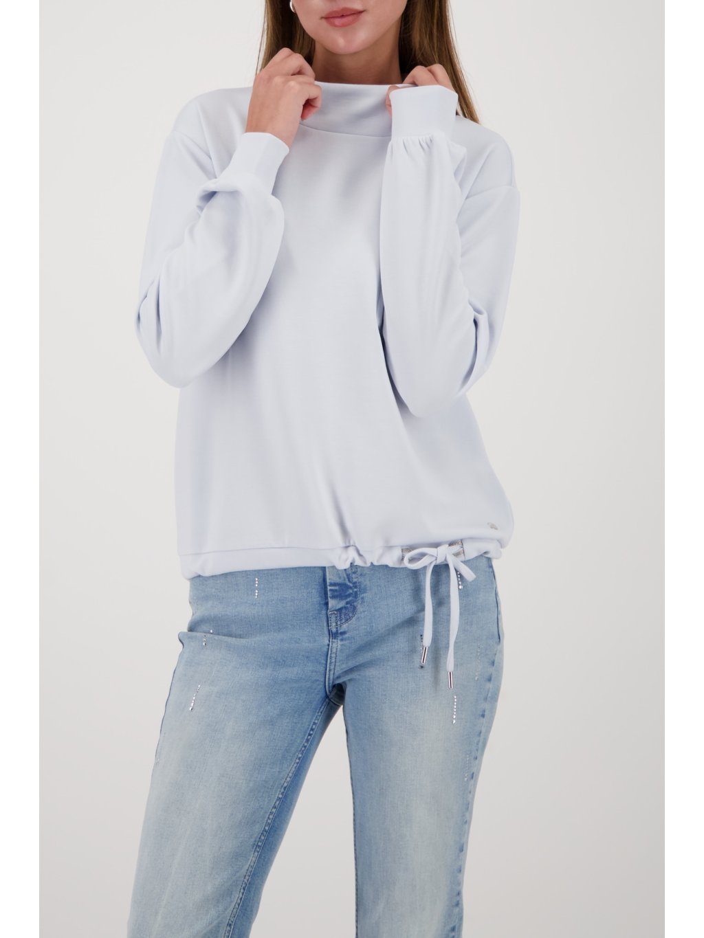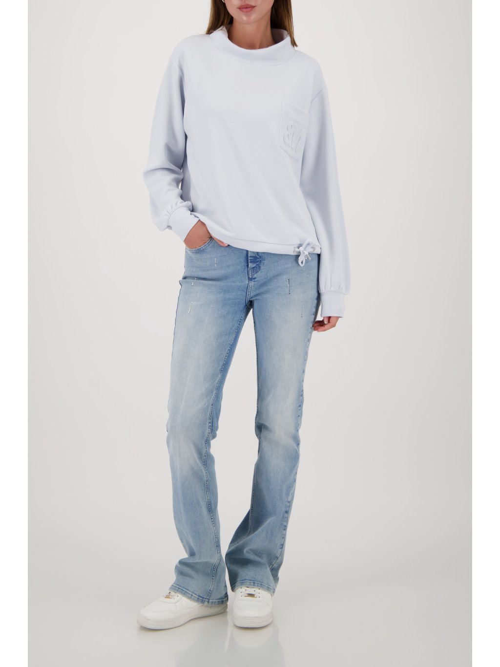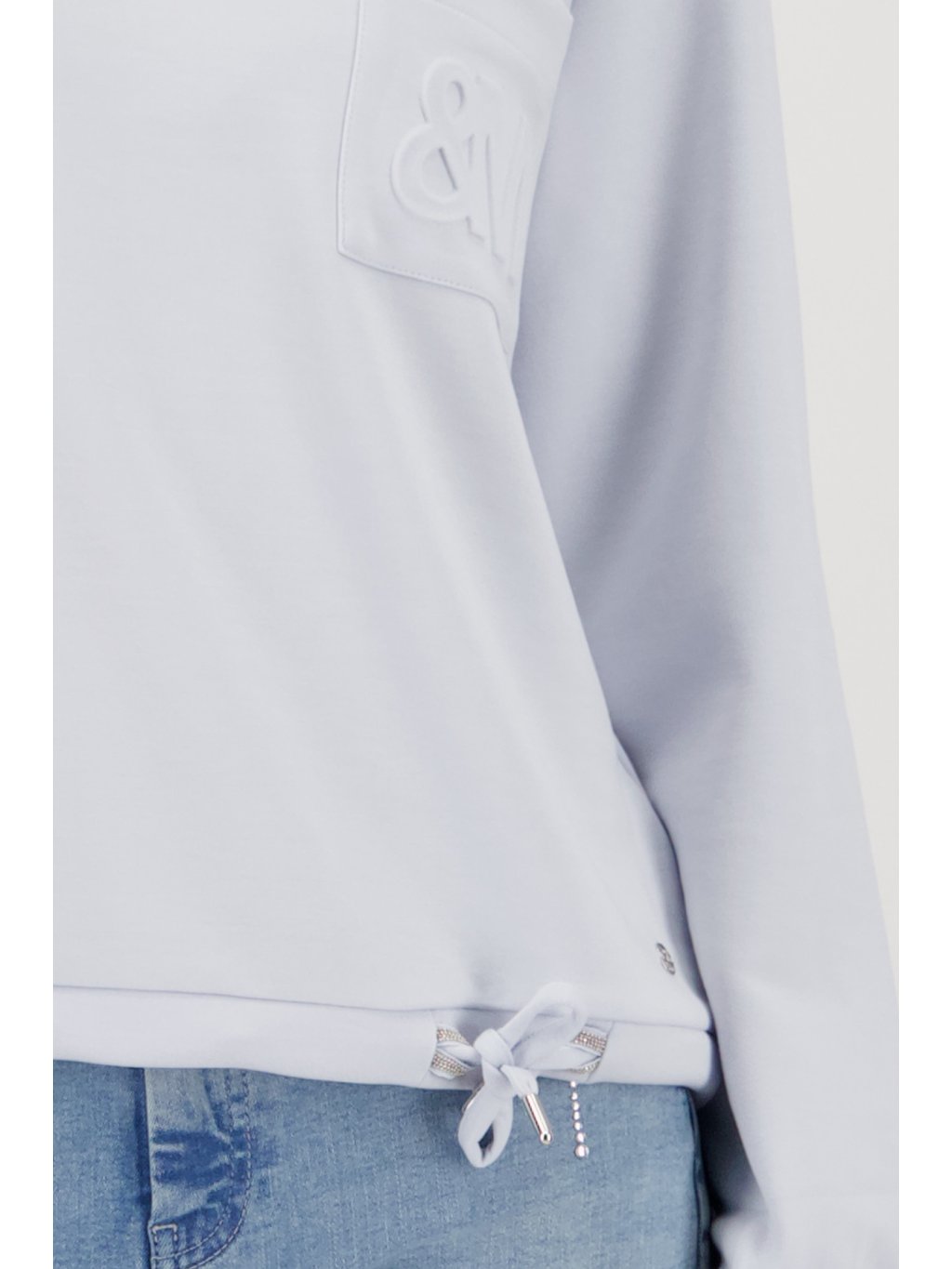Stylová mikina značky Monari v nadčasové bílé barvě je ideální volbou pro ženy, které chtějí spojit pohodlí s moderním, upraveným vzhledem. Minimalistický design doplňuje jemný reliéfní detail na náprsní kapse a decentní šňůrka v dolním lemu, díky které si snadno upravíš siluetu podle potřeby. Příjemný, lehce splývavý materiál zajistí komfort po celý den – ať už ji oblékneš k džínům, elegantním kalhotám nebo sukni. Mikina se skvěle hodí pro každodenní nošení, ale i pro uvolněnější pracovní outfit.Doplňkové parametry