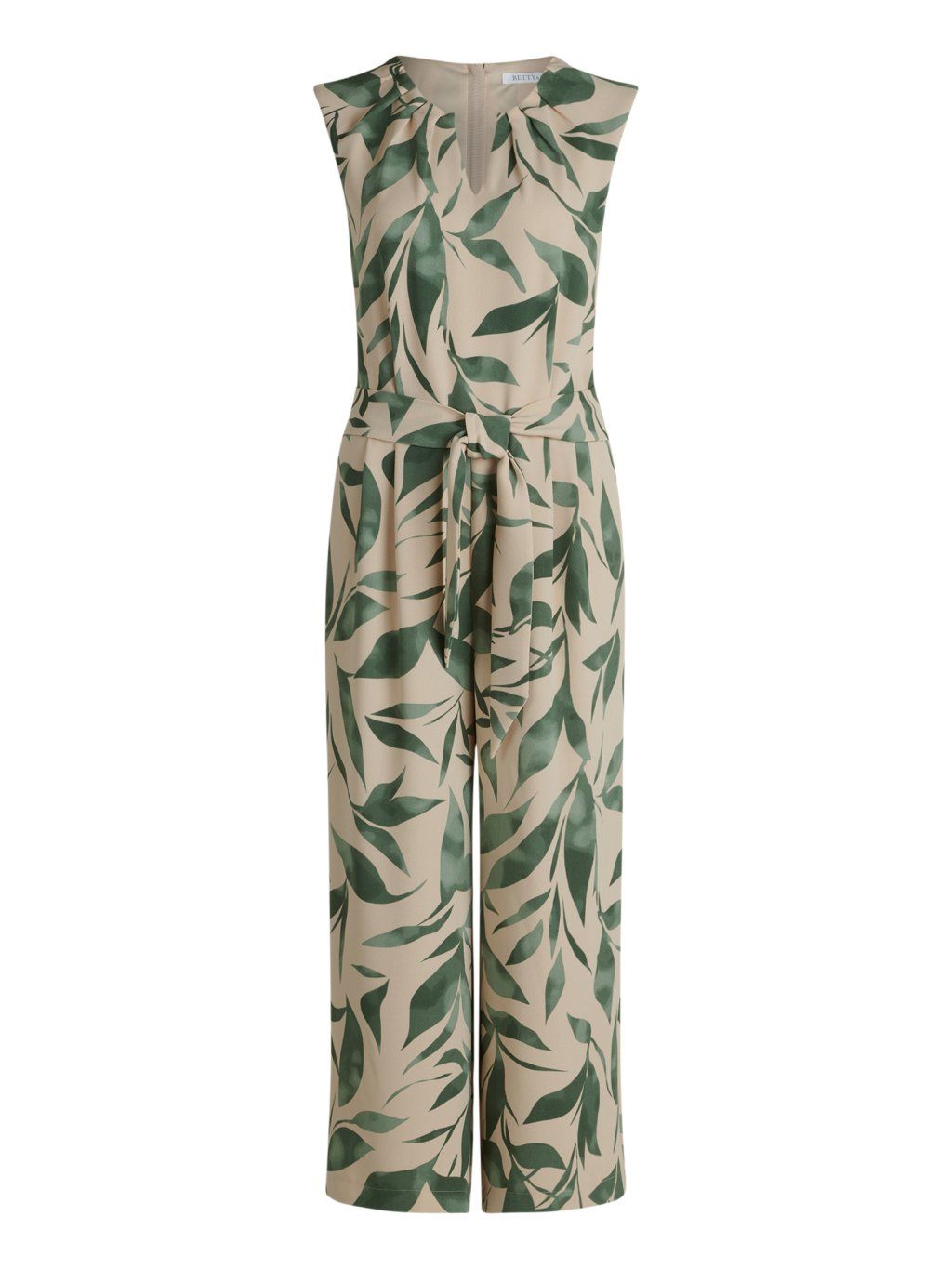 Dámský overal od Betty & Co zaujme elegantním přírodním potiskem v béžovo-zelených tónech, který působí svěže a zároveň velmi sofistikovaně. Overal Betty & Co má ženský střih bez rukávů, jemně řešený výstřih a pásek v pase, který krásně zvýrazní siluetu. Lehký splývavý materiál overalu Betty & Co zaručuje maximální komfort a dělá z něj ideální kousek pro letní dny, společenské příležitosti i stylový každodenní outfit.
