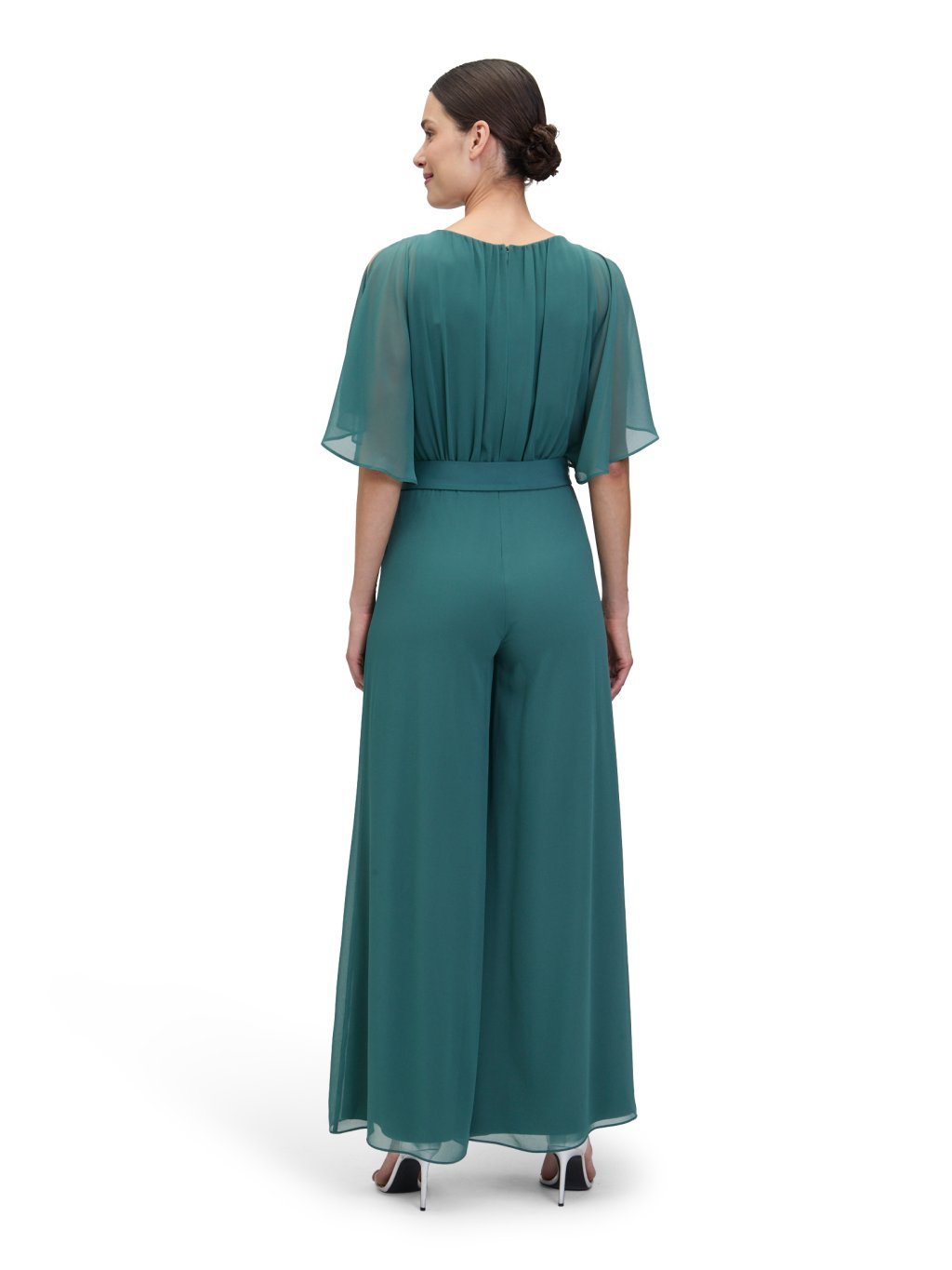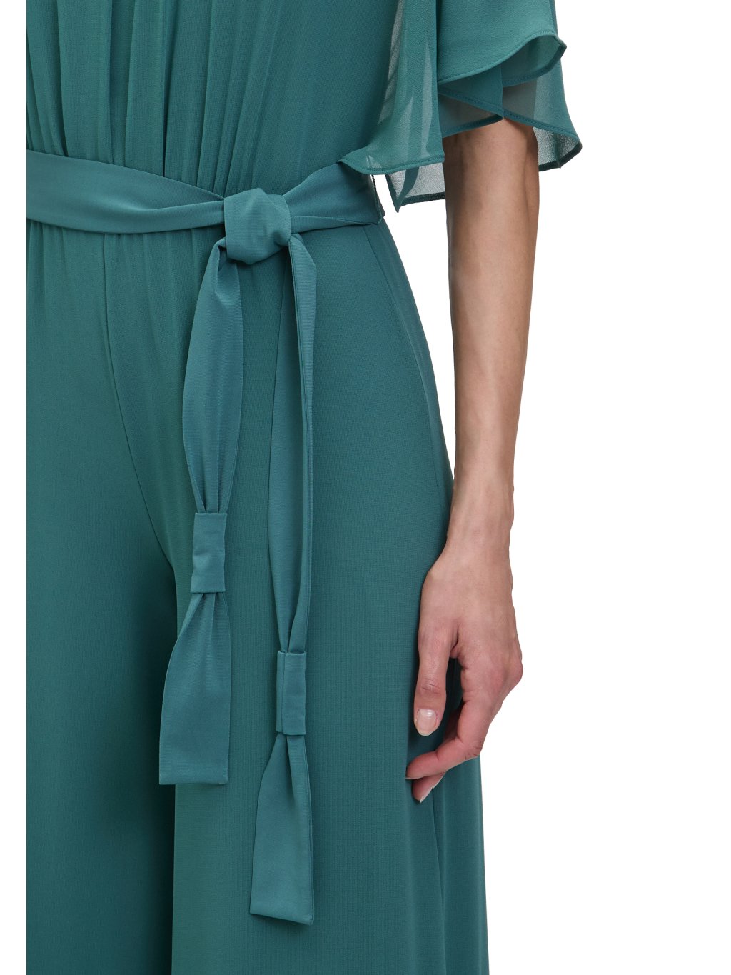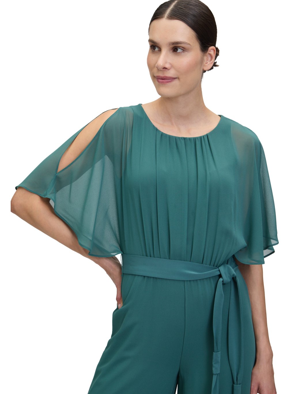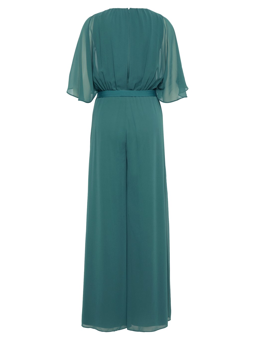 Tenhle model funguje na první pohled – a ještě líp na těle. Lehký, splývavý overal v elegantní zelené barvě vytváří dlouhou, štíhlou siluetu a zároveň zakrývá vše, co má zůstat nenápadné. Horní část s jemným řasením a vzdušnými rukávy působí lehce a žensky. Vázání v pase si přizpůsobíte přesně podle sebe – zvýrazní pas, ale netlačí. Široké nohavice se krásně hýbou při chůzi a dodávají outfitu noblesu. Ideální volba, pokud chcete: zakrýt paže, ale nepůsobit těžce zvýraznit pas bez upnutého střihu elegantní outfit bez řešení kombinací