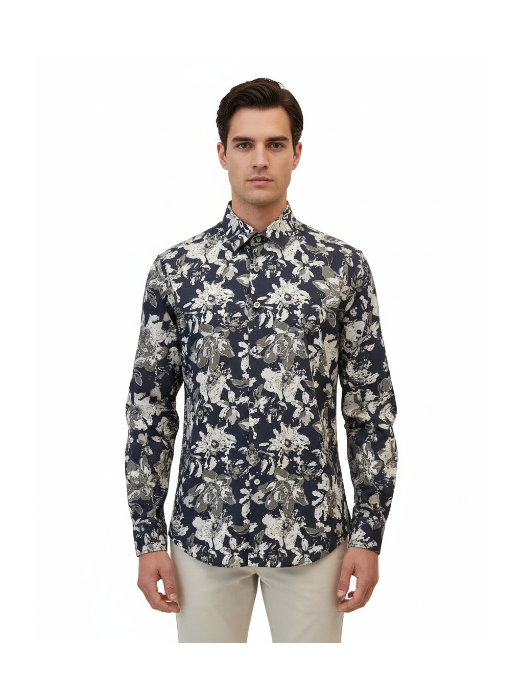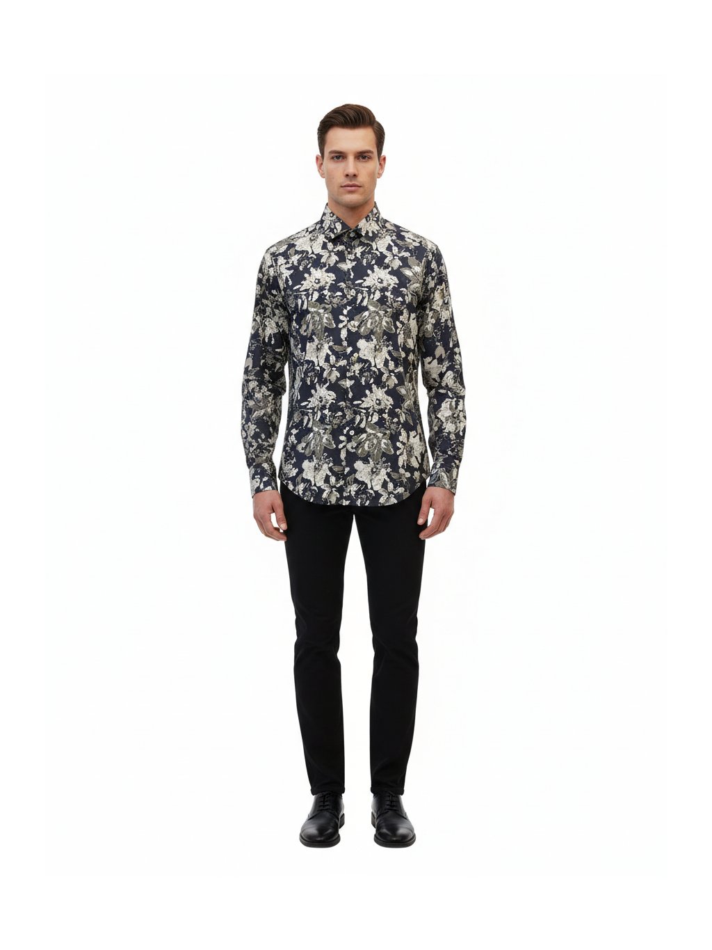 Elegantní pánská košile s tmavým květinovým vzorem v decentních zemitých tónech. Stylový kontrast, který působí sebevědomě, ale neokázale. Kvalitní bavlna zajišťuje pohodlí po celý den, precizní střih perfektně sedí. Ideální volba pro muže, kteří chtějí moderní vzhled s nádechem španělské elegance – do práce i na večer.