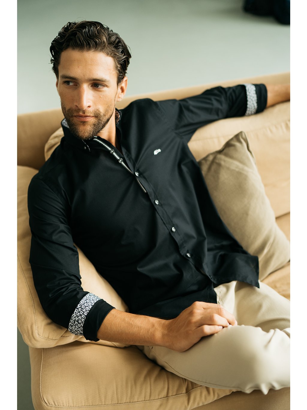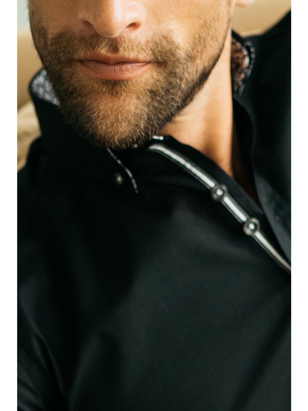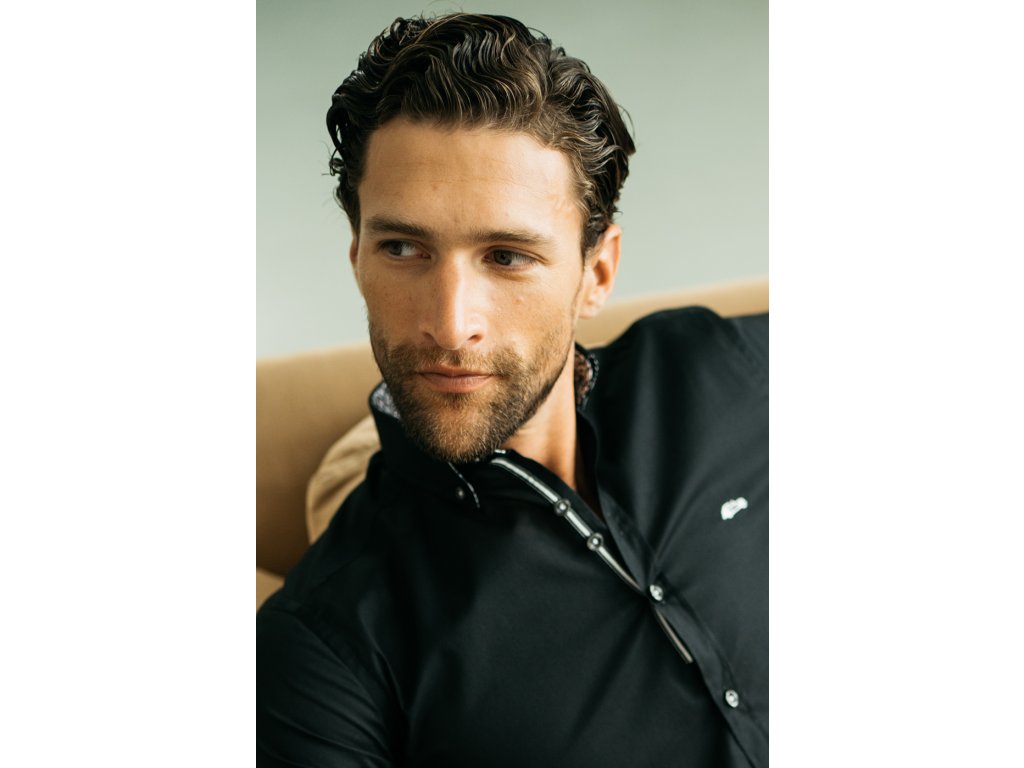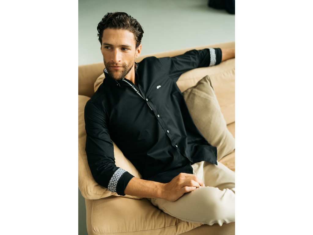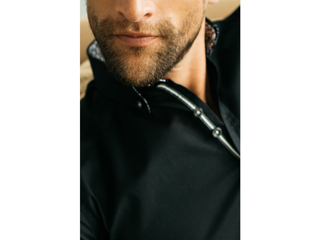 Bavlněná pánská košile je velice příjemná. Košile má vnitřní stranu límečku a rukávu zdobenou vkusným vzorem. Límeček je navíc zdoben knoflíčky.