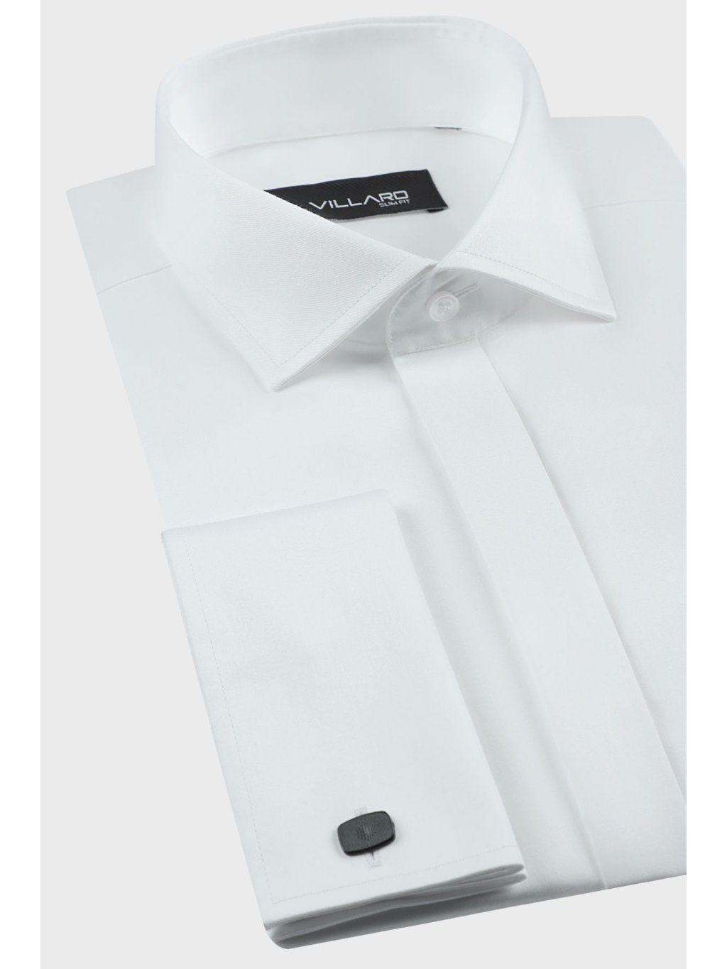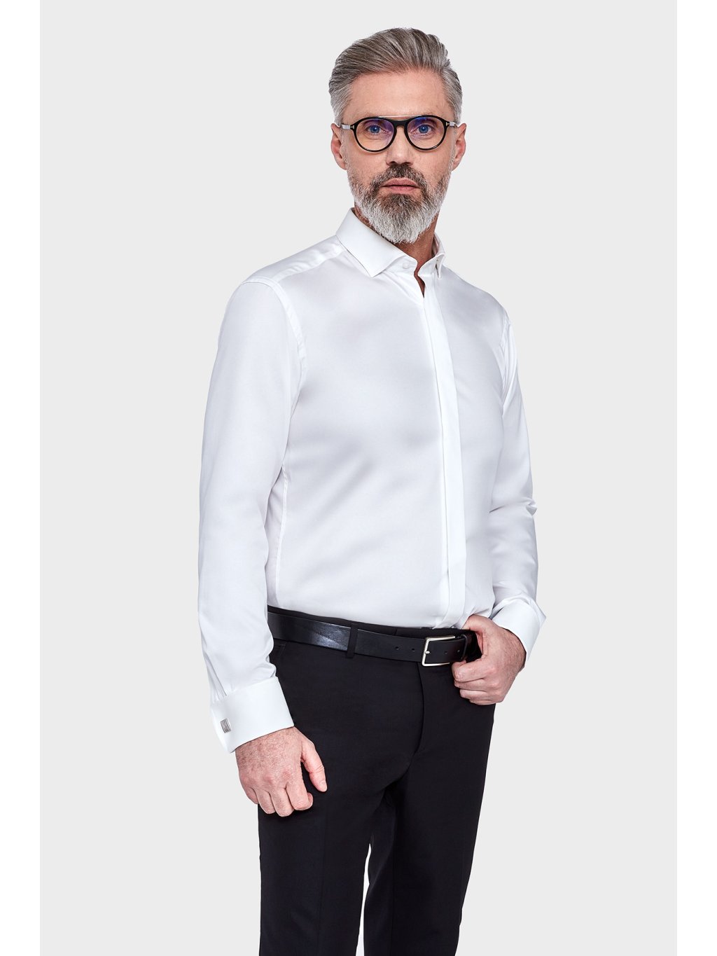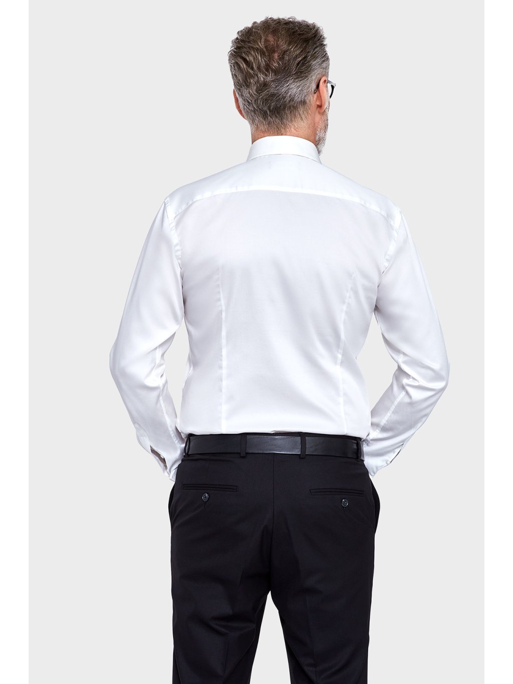Bílá pánská košile s dlouhým rukávem.