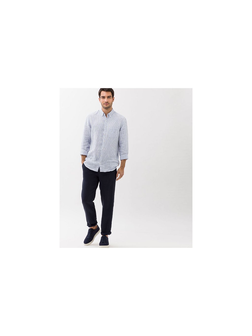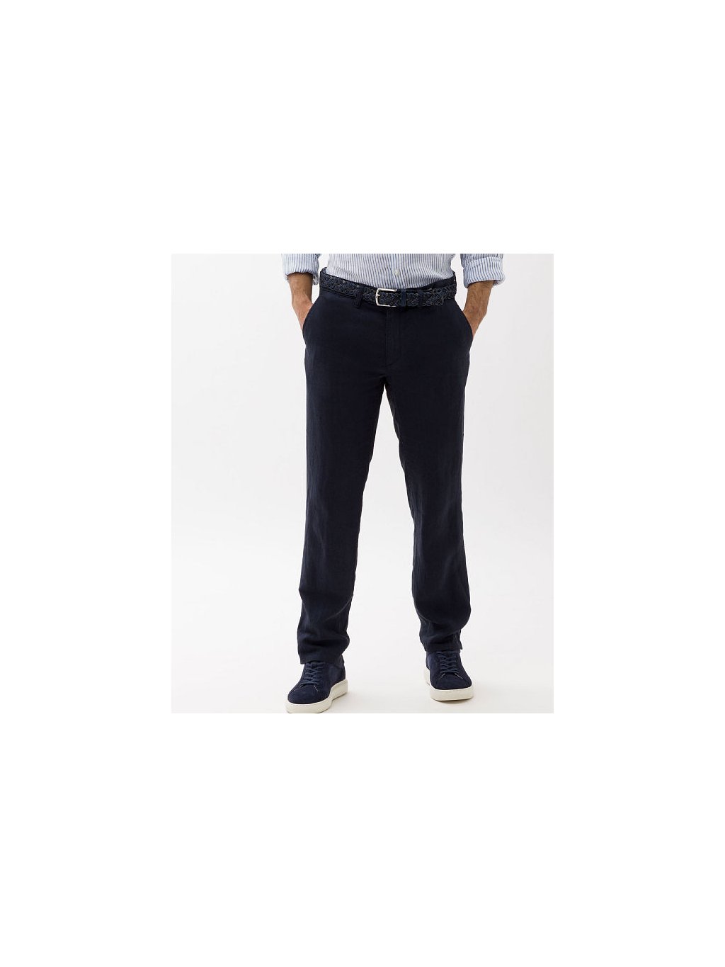 Lněné kalhoty tmavě modré barvy jsou až skoro nepostradatelným kouskem Vašeho šatníku pro letní sezónu. Díky materiálu jsou kalhoty vzdušné a budete se v nich cítit skvěle a zároveň stylově.