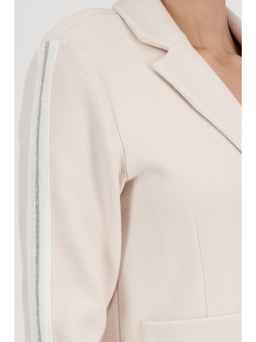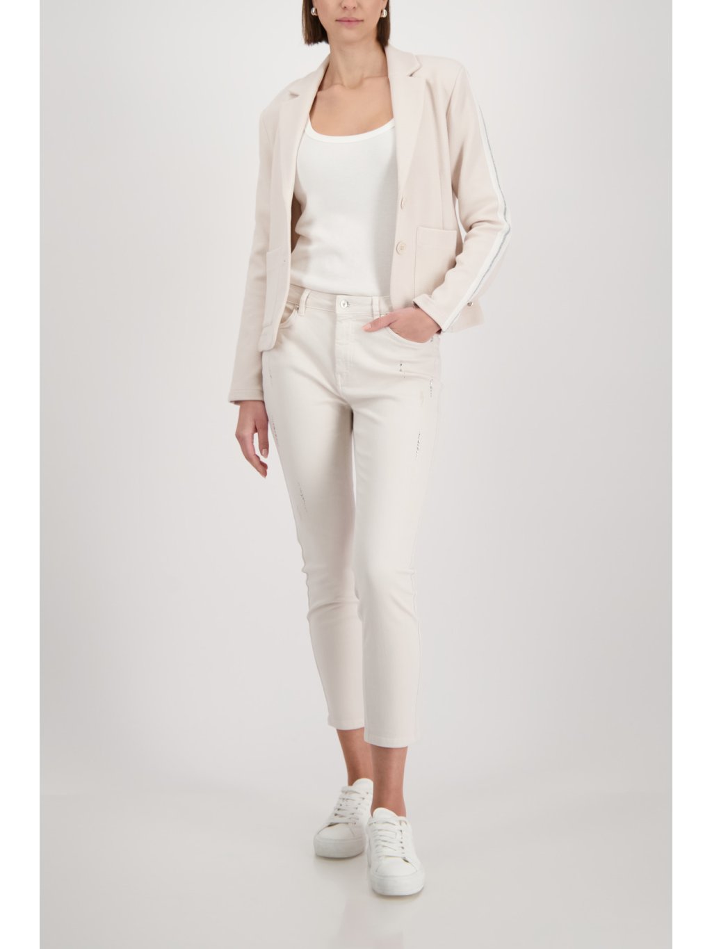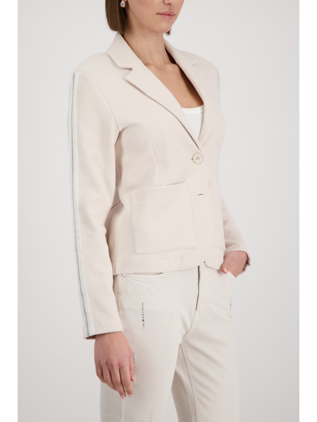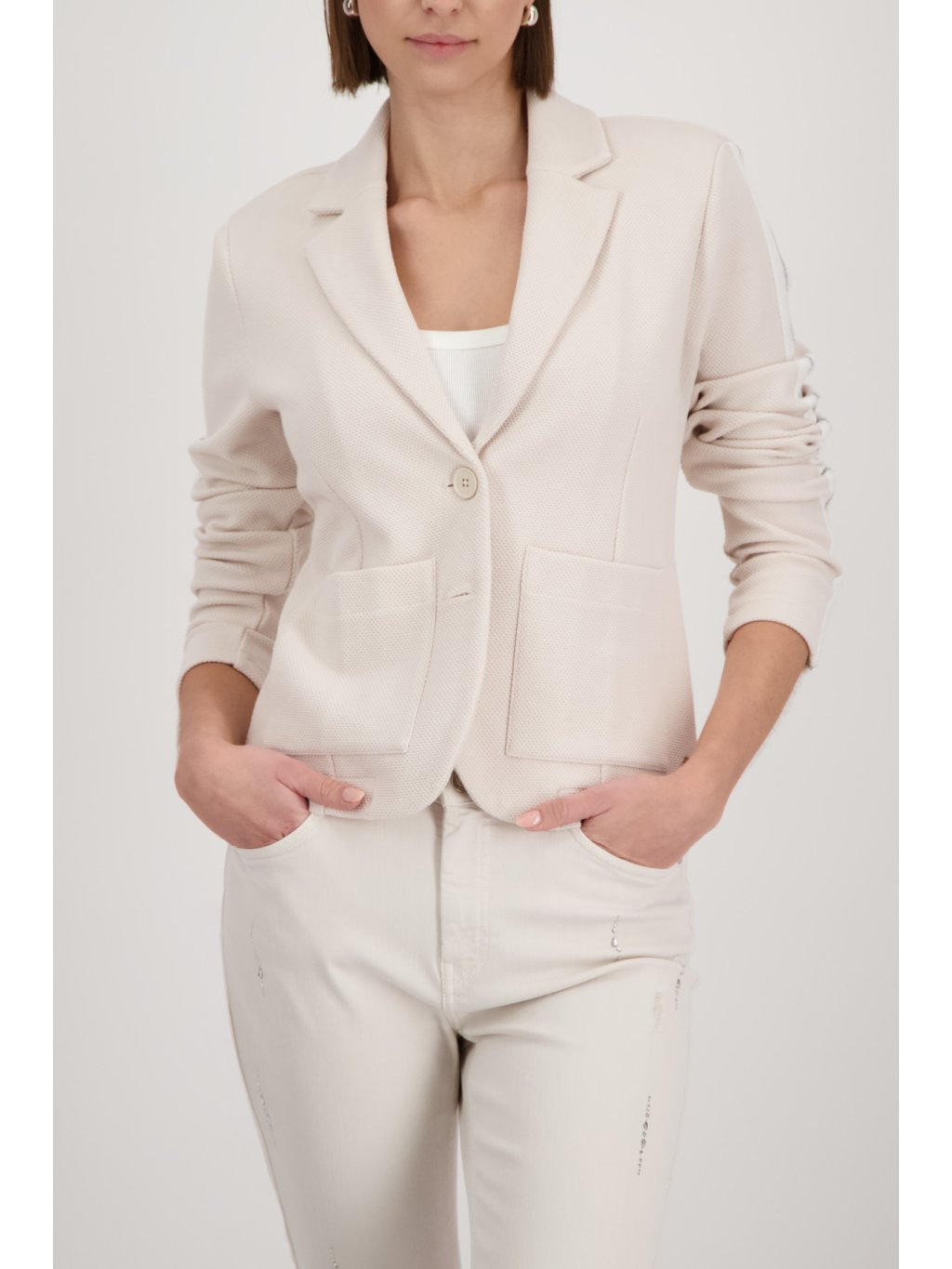 Elegantní dámské sako Monari zaujme svým nadčasovým designem a jemnou strukturou materiálu. Sako Monari v světlém odstínu působí velmi sofistikovaně a je ideální volbou pro ženy, které mají rády moderní a elegantní styl. Model má klasický límec a zapínání na dva knoflíky, které podtrhuje jeho elegantní vzhled. Praktickým prvkem jsou přední našité kapsy, které dodávají saku ležérní nádech a zároveň zvyšují jeho pohodlí při nošení. Díky svému střihu se sako Monari skvěle hodí jak k elegantním kalhotám, tak k džínům nebo sukni. Sako Monari je ideální pro každodenní nošení do práce i pro společenské příležitosti, kdy chcete působit stylově a upraveně.Doplňkové parametry