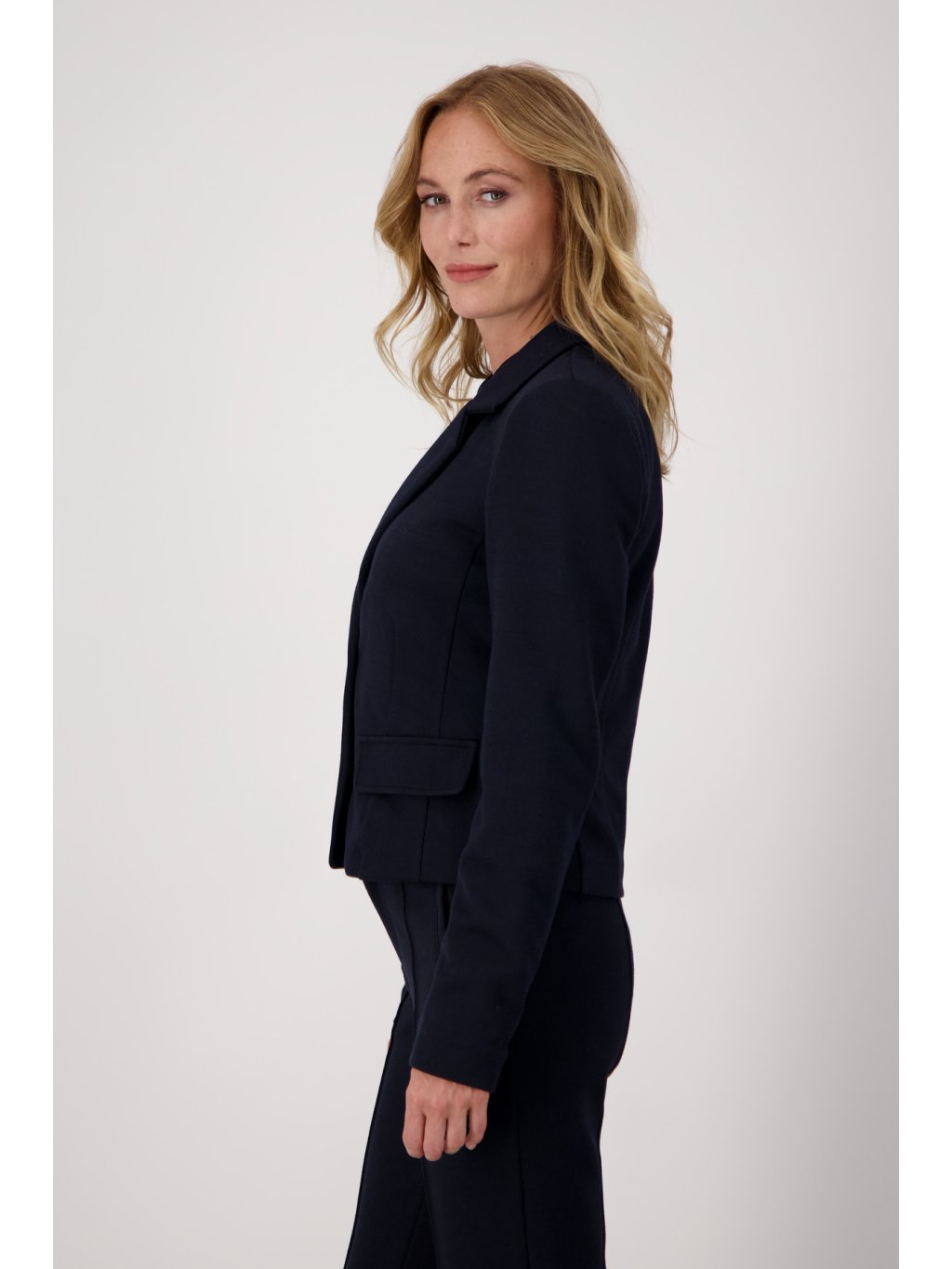 Krásné, značkové, tmavě modré, dámské sako od německé značky Monari. Sako je z velmi kvalitního a příjemného materiálu. Hezké sako jak pro volný čas, tak pro zvláštní příležitosti.Doplňkové parametry