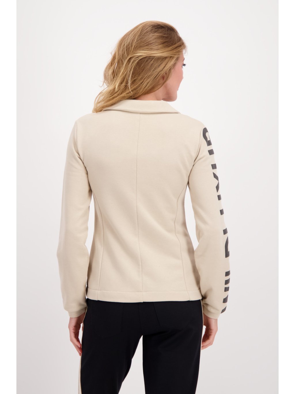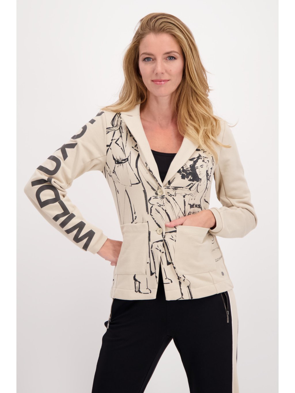 Stylové sako sportovní elegance. Na přední straně Dámské sako jsou černé vzory, kterými rozhodně zaujmete. Sako má dvě přední kapsy a díky svému složení je velmi pohodlné. V saku můžete vyrazit a zaujmout ve společnosti nebo být stylová ve volném čase.Doplňkové parametry