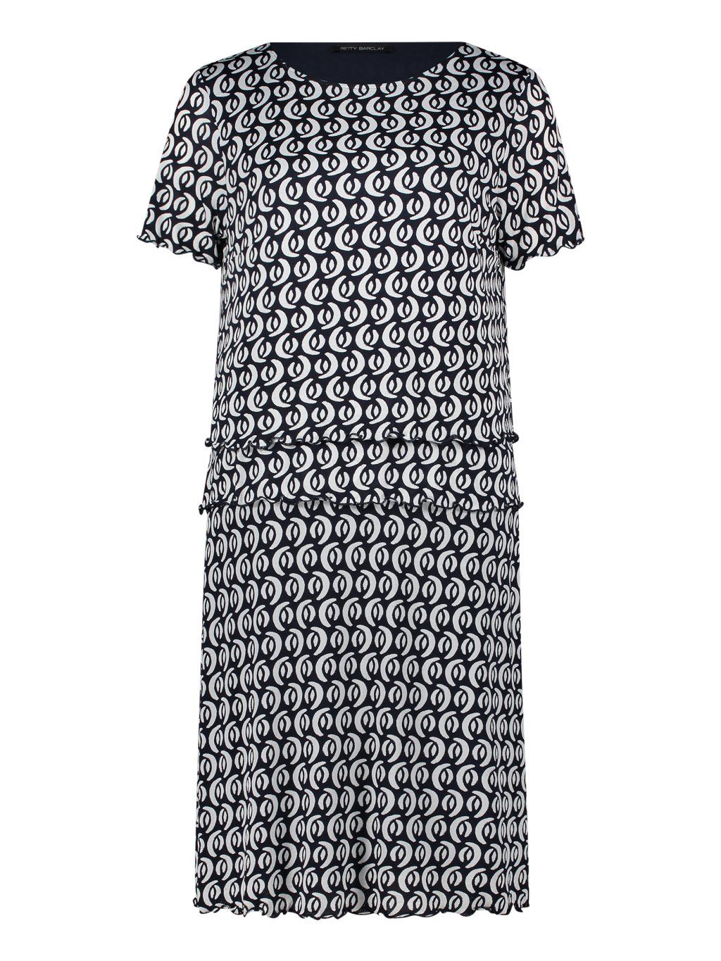 Dámské šaty Betty Barclay zaujmou na první pohled svým originálním vzorem v kontrastním modro-bílém provedení, který dodává modelu moderní a svěží vzhled. Šaty Betty Barclay mají kulatý výstřih a krátký rukáv, díky čemuž jsou ideální volbou pro každodenní nošení i letní společenské příležitosti. Model Betty Barclay je navržen ve volnějším, pohodlném střihu s jemným vrstvením v oblasti pasu, které lichotí postavě a dodává šatům zajímavý detail. Lehký a vzdušný materiál spolu s elegantním designem zaručuje maximální komfort i styl během celého dne.Doplňkové parametry