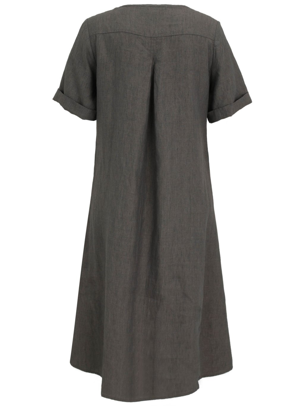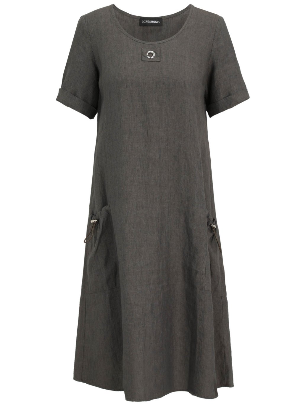 Minimalismus, který nikdy nevyjde z módy. Tyto šaty v tmavě šedém odstínu zaujmou čistým, uvolněným střihem a přírodním vzhledem materiálu. Díky jednoduchému designu působí velmi elegantně a zároveň maximálně pohodlně. Volnější áčkový střih lichotí postavě a zajišťuje komfort při nošení. Kulatý výstřih je doplněn decentním kovovým detailem, který modelu dodává jemný moderní akcent. Krátké rukávy s ohrnutím působí ležérně a praktické kapsy po stranách přidávají na funkčnosti i stylu. Lehký, prodyšný materiál je ideální volbou pro teplejší dny – šaty jsou příjemné na těle a krásně splývají. Skvěle se kombinují s jednoduchými sandály, teniskami i elegantnější obuví. Model od Doris Streich je důkazem, že pohodlí a elegance mohou jít ruku v ruce. Pokud hledáte univerzální a nadčasový kousek do šatníku, Doris Streich nabízí styl, kvalitu a střih, který si zamilujete.