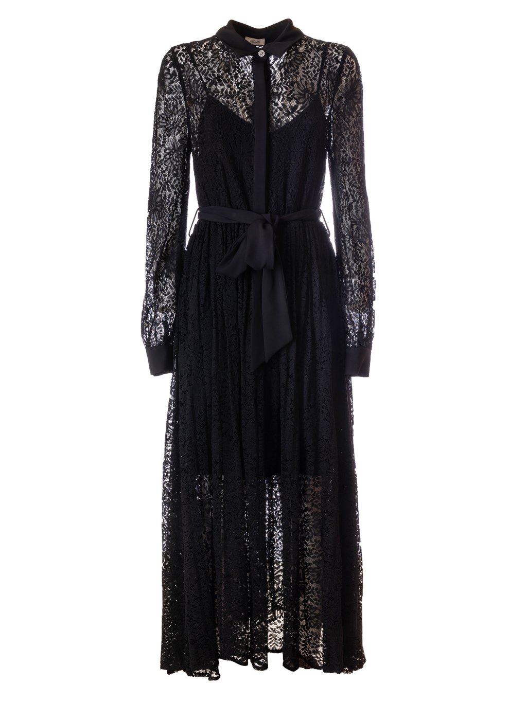 Dlouhé šaty , které jsou dělené na dva díly. Spodní část je kratší a má tílkový rukáv. Vrchní část je dlouhá, krajkovaná a šaty mají dlouhý rukáv a límeček zdobený krásnými knoflíky s kamínky. Šaty mají v pase vázání na pásek.Doplňkové parametry