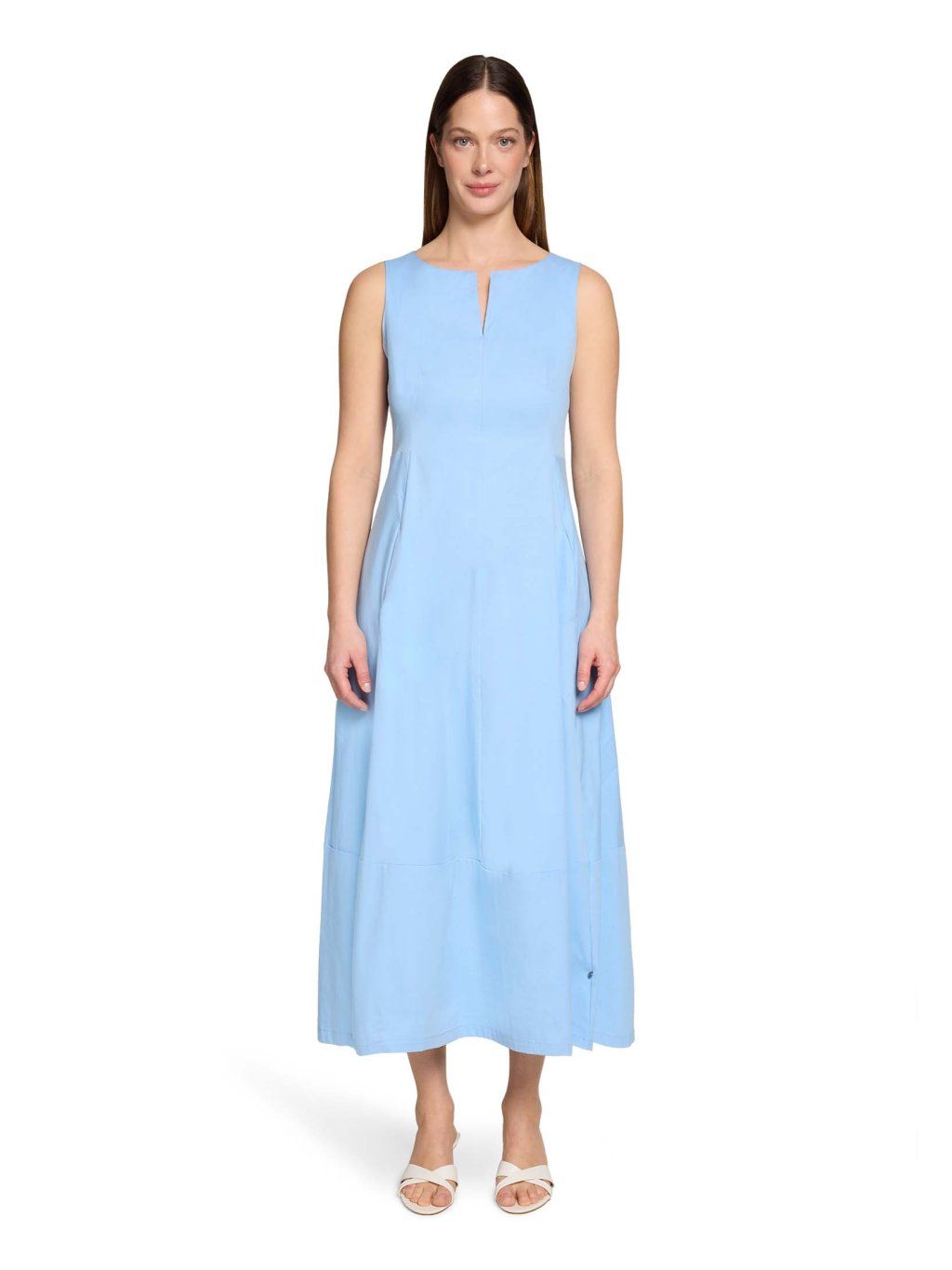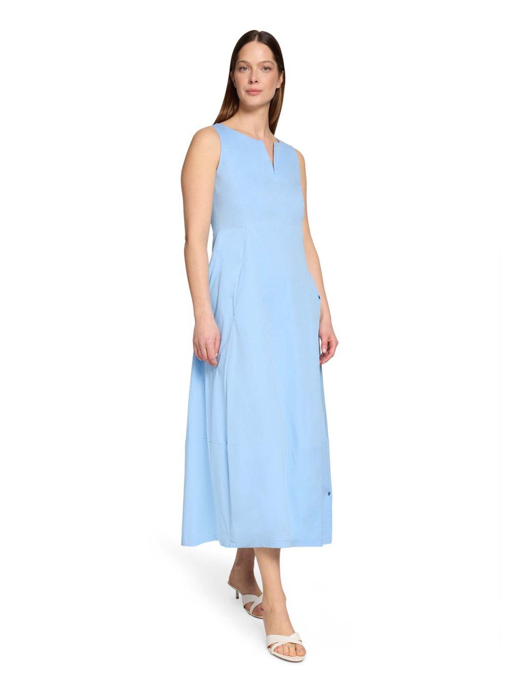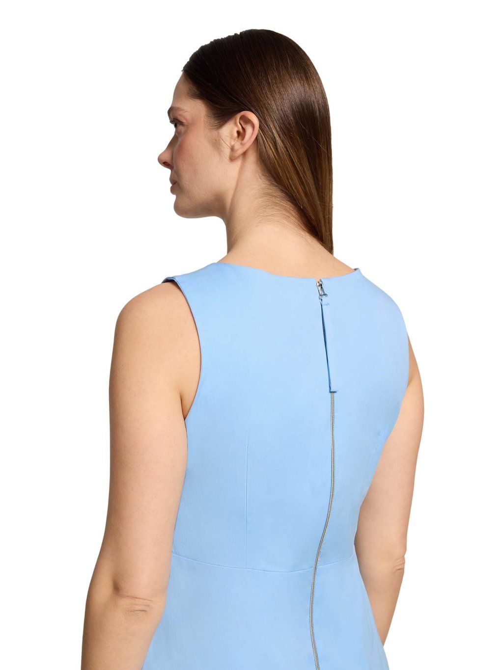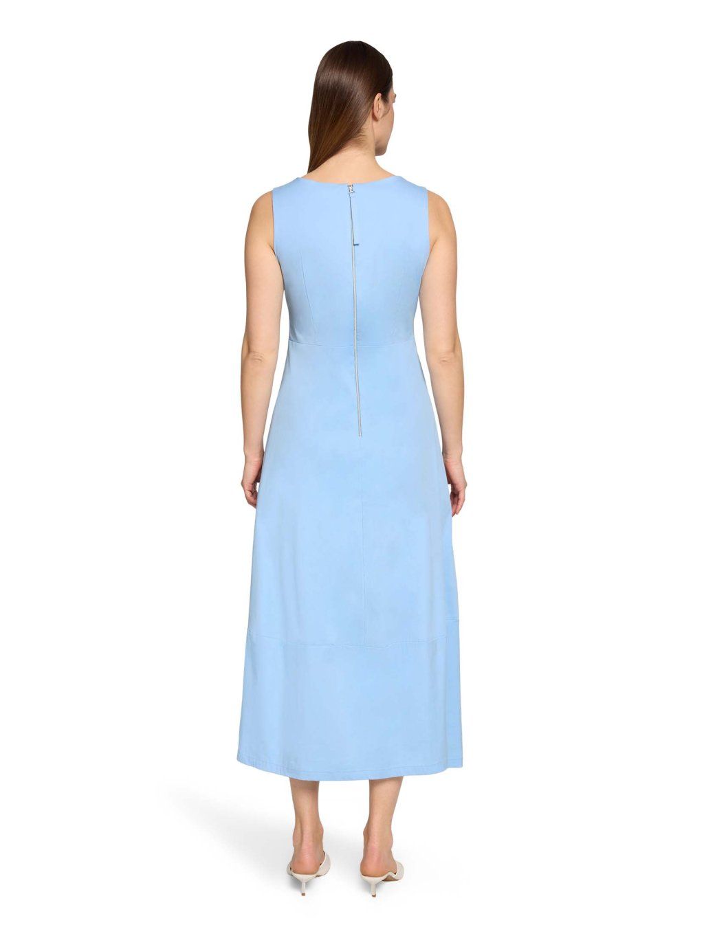 Dámské šaty Robe Légere v jemném světle modrém odstínu působí svěže, čistě a velmi elegantně. Jsou ideální volbou pro ženy, které chtějí vypadat upraveně a zároveň se cítit maximálně pohodlně. Šaty mají lehce projmutý, splývavý střih, který přirozeně kopíruje postavu a lichotí siluetě bez zbytečného obepínání. Výstřih do „V“ s jemným rozparkem opticky prodlužuje krk a dodává modelu ženskost. Délka midi a absence rukávů z nich dělají perfektní kousek na jaro i léto – do práce, na schůzky i volný čas. Lehký, příjemný materiál zajišťuje komfort při nošení po celý den a jednoduchý design umožňuje snadné kombinování s doplňky. Klíčové vlastnosti: značka: Robe Légere barva: světle modrá střih: lehce projmutý, splývavý délka: midi výstřih: do „V“ rukávy: bez rukávů zapínání: zadní zip materiál: lehký, příjemný na nošení