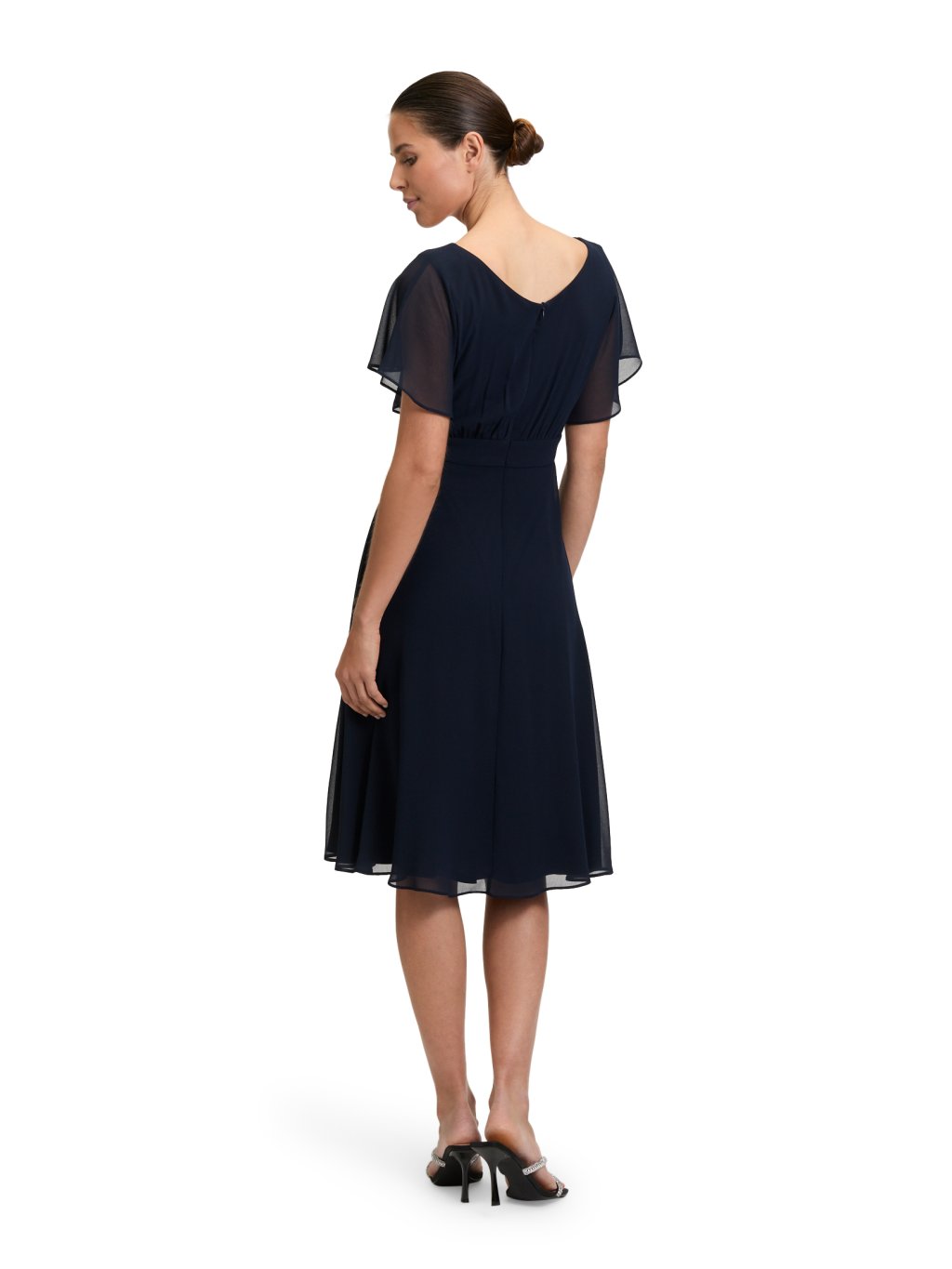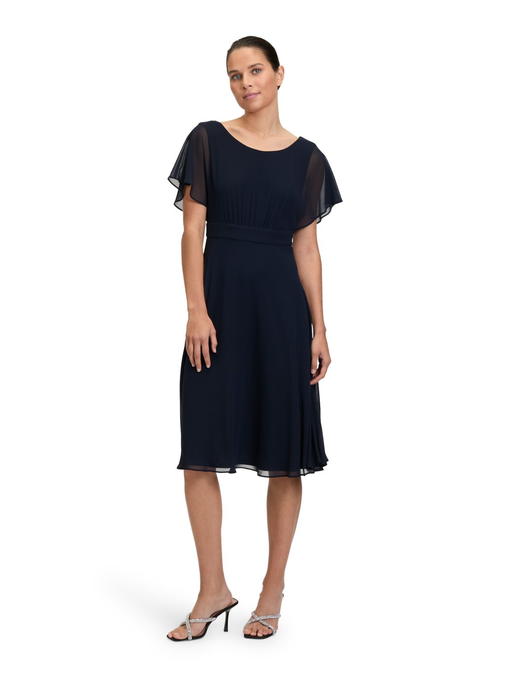 Černé šaty jsou symbolem tiché jistoty a ženské síly. Nepotřebují být nápadné – právě v jejich jednoduchosti je ukrytá noblesa. Jemně splývavý materiál krásně kopíruje postavu, aniž by ji obepínal, a vytváří elegantní siluetu, ve které se budete cítit přirozeně a sebevědomě. Lehké šifonové rukávky dodávají vzdušnost a jemně zakrývají paže. Vypasovaný pas zvýrazňuje ženské křivky a opticky prodlužuje postavu. Při chůzi se látka ladně pohybuje a zajišťuje pohodlí po celý den i večer. Ideální volba ve chvíli, kdy chcete mít jistotu, že vypadáte skvěle bez kompromisů.Doplňkové parametry