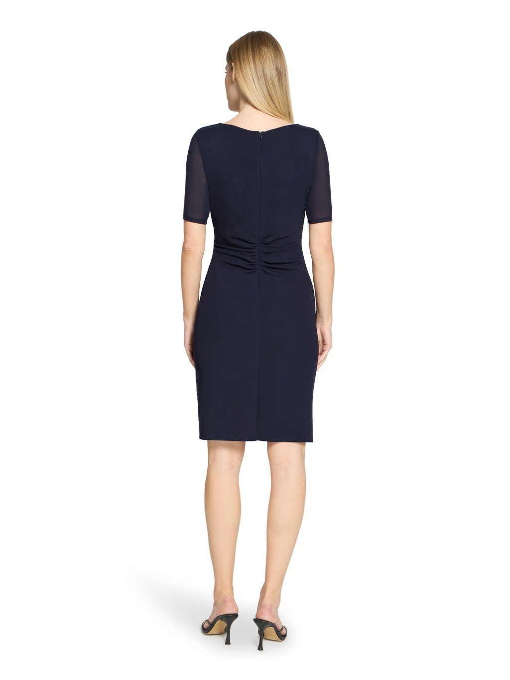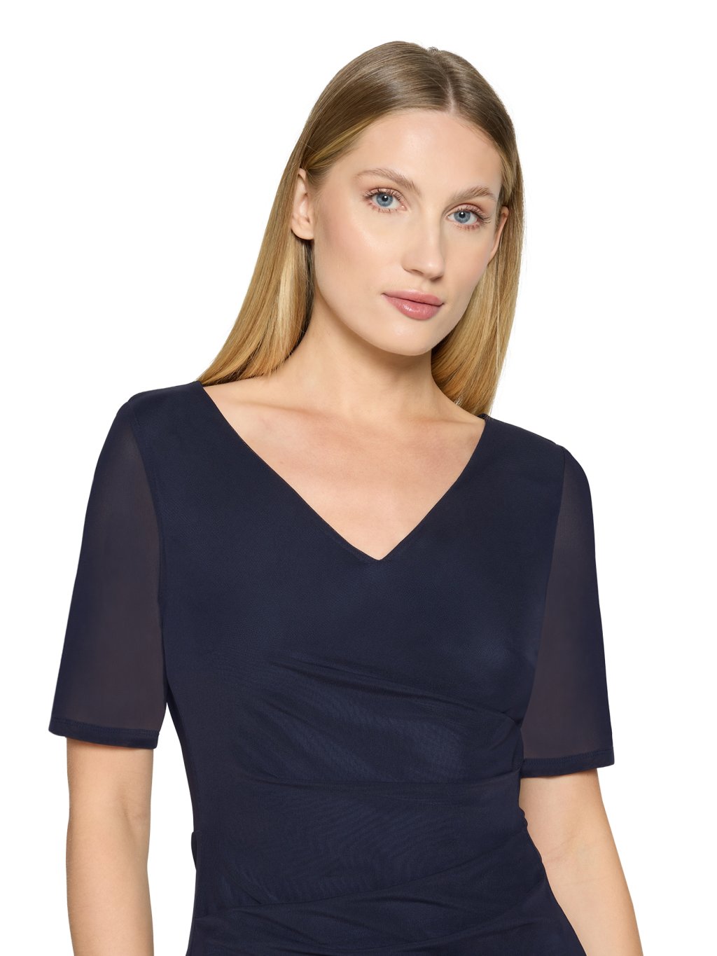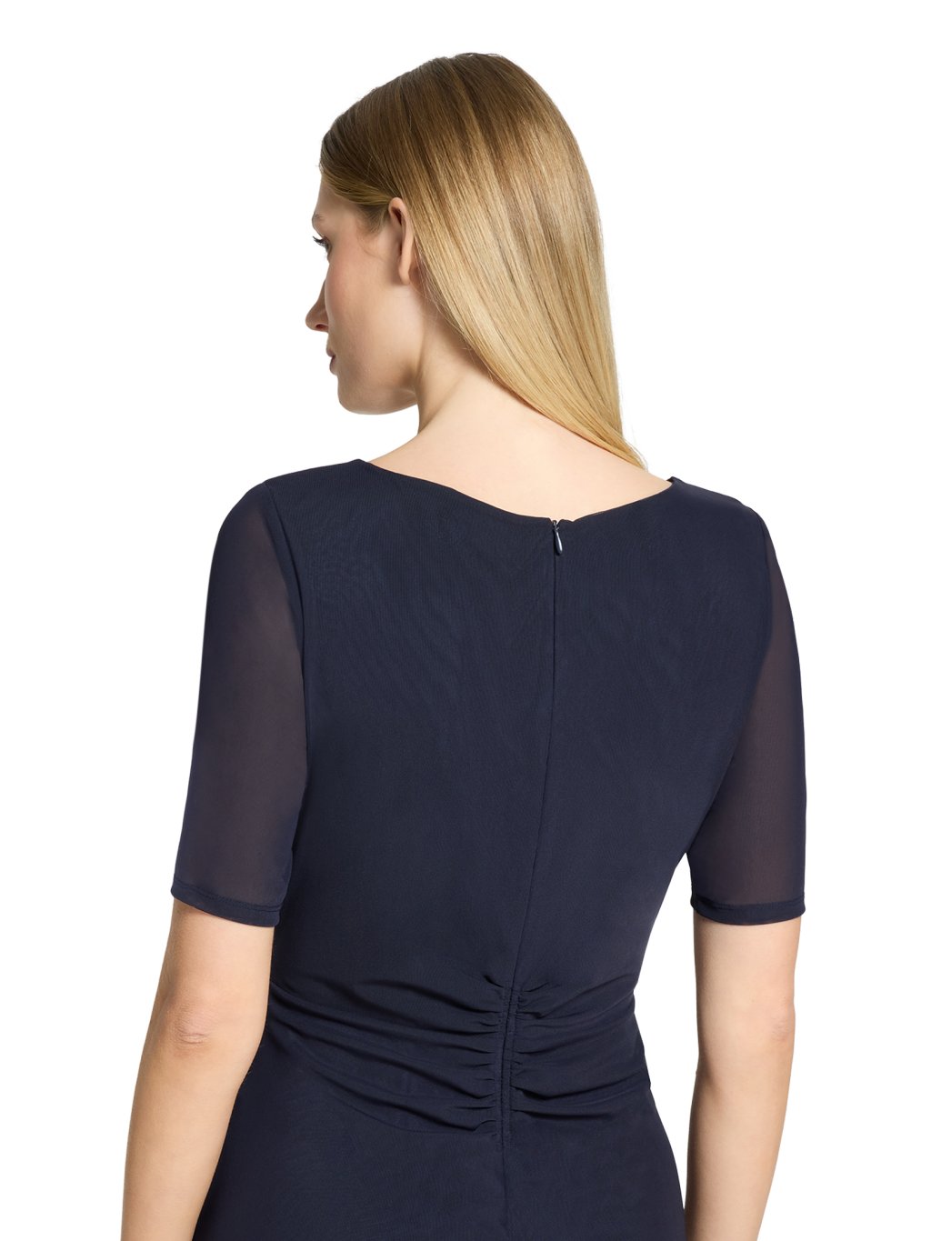 Šaty jsou ušité z lehce splývavého materiálu, který kopíruje siluetu. Decentní řasení v oblasti pasu a boku lichotí postavě a opticky jí zeštíhluje. Díky koktejlové délce jsou šaty ideální volbou pro slavnostní příležitosti.Doplňkové parametry