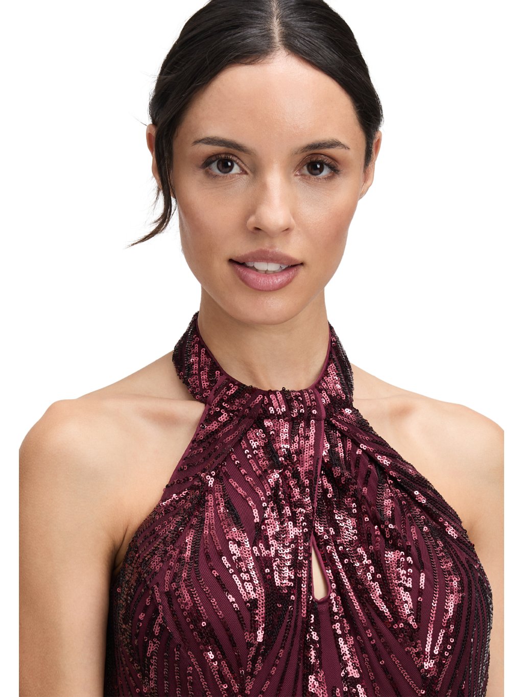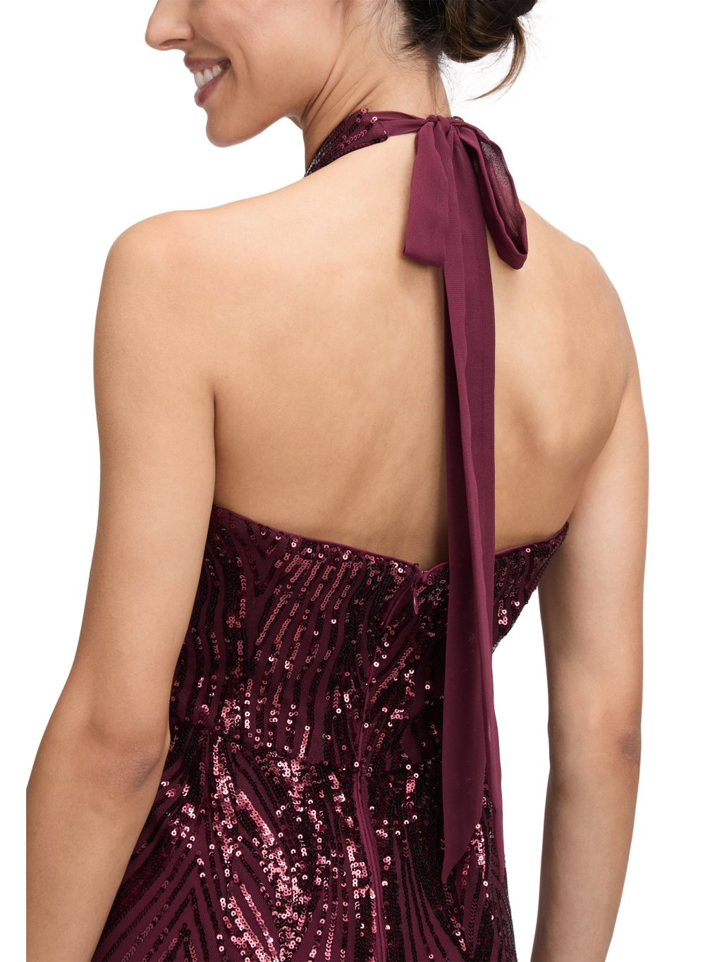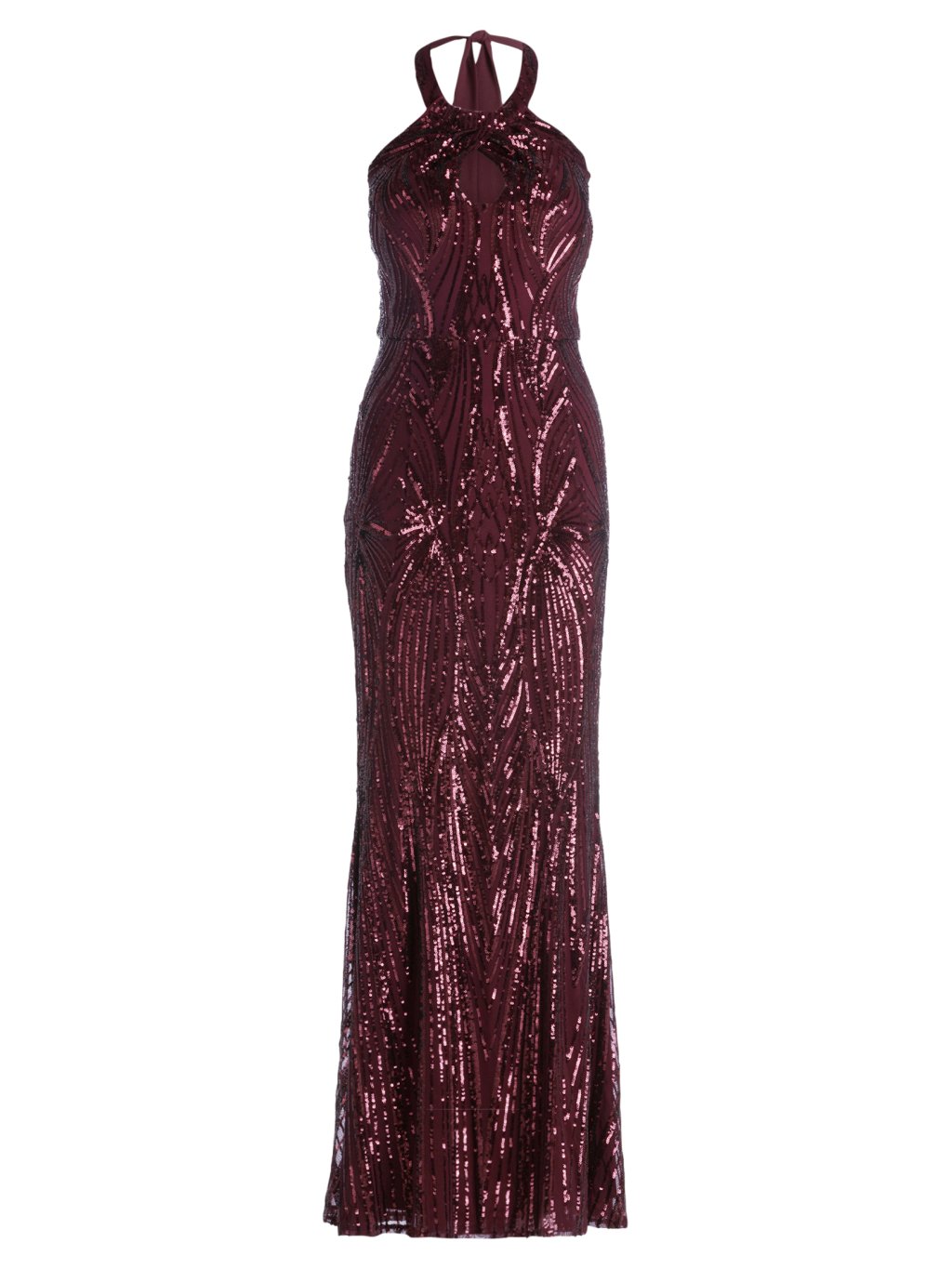 Elegantní dlouhé šaty v hlubokém vínovém odstínu okouzlí bohatým flitrovým zdobením, které vytváří rafinovanou hru světla a opticky tvaruje postavu. Promyšlený vzor zvýrazňuje křivky, zeštíhluje siluetu a dodává modelu smyslný, ale stále elegantní charakter. Střih s halter výstřihem krásně zvýrazní ramena a dekolt, zatímco jemný průstřih v oblasti hrudníku působí svůdně, nikoli vulgárně. Šaty perfektně obepínají tělo a plynule se rozšiřují směrem dolů, čímž vytvářejí elegantní, prodlužující efekt. Ideální volba na plesy, galavečery, svatby, slavnostní večery i výjimečné společenské události, kde chcete být nepřehlédnutelná a zároveň si zachovat noblesu.Doplňkové parametry