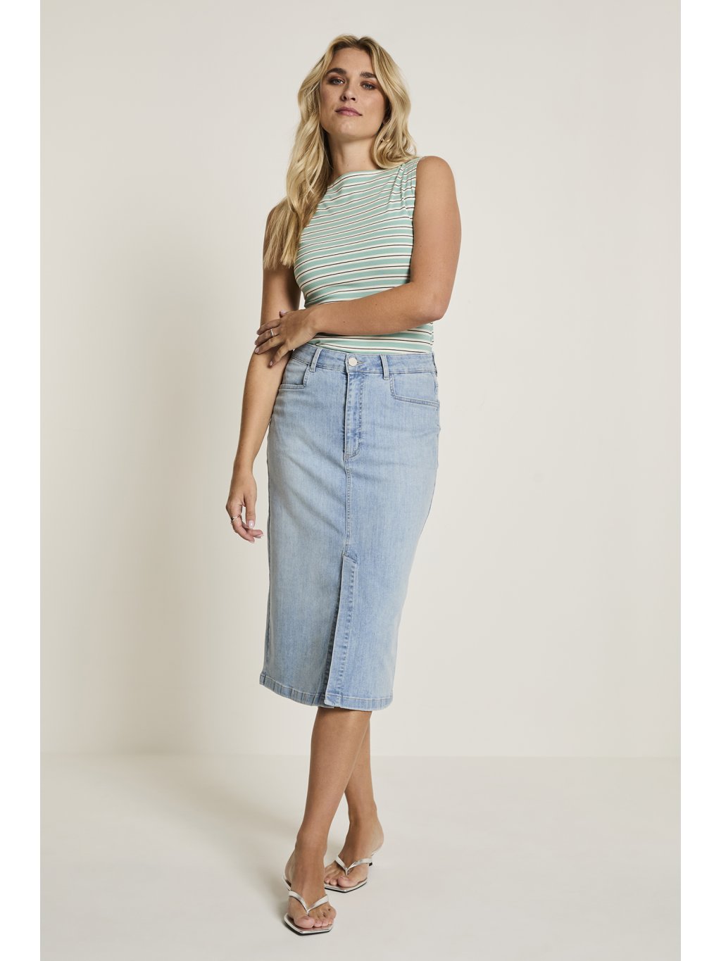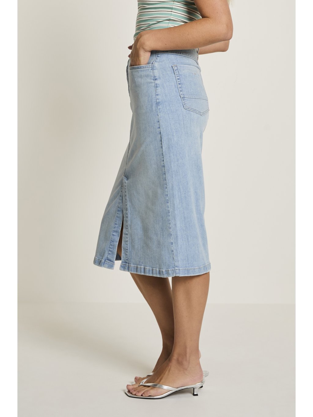 Dámská džínová sukně značky PARA-MI v midi délce je ideální volbou pro ženy, které hledají kombinaci pohodlí, stylu a univerzálnosti. Denim nikdy nevyjde z módy – a v tomto střihu působí navíc velmi žensky a elegantně. Sukně má lichotivou midi délku, která opticky prodlužuje postavu a hodí se jak do práce, tak na volný čas. Díky kvalitnímu materiálu s příměsí elastanu se příjemně přizpůsobí postavě a zajistí komfort při nošení po celý den.