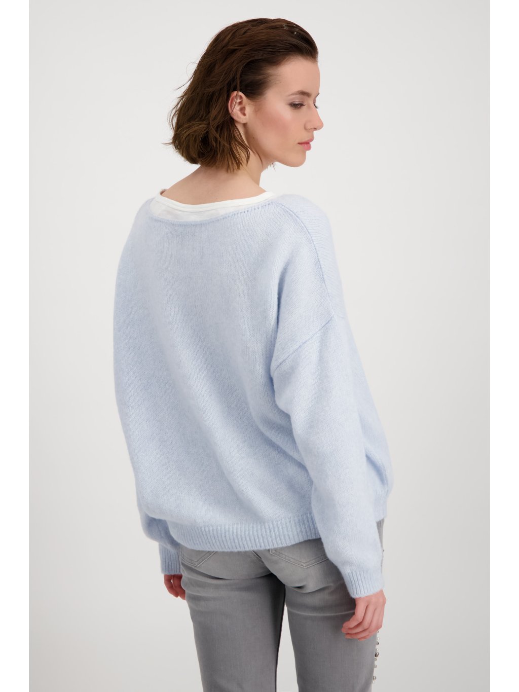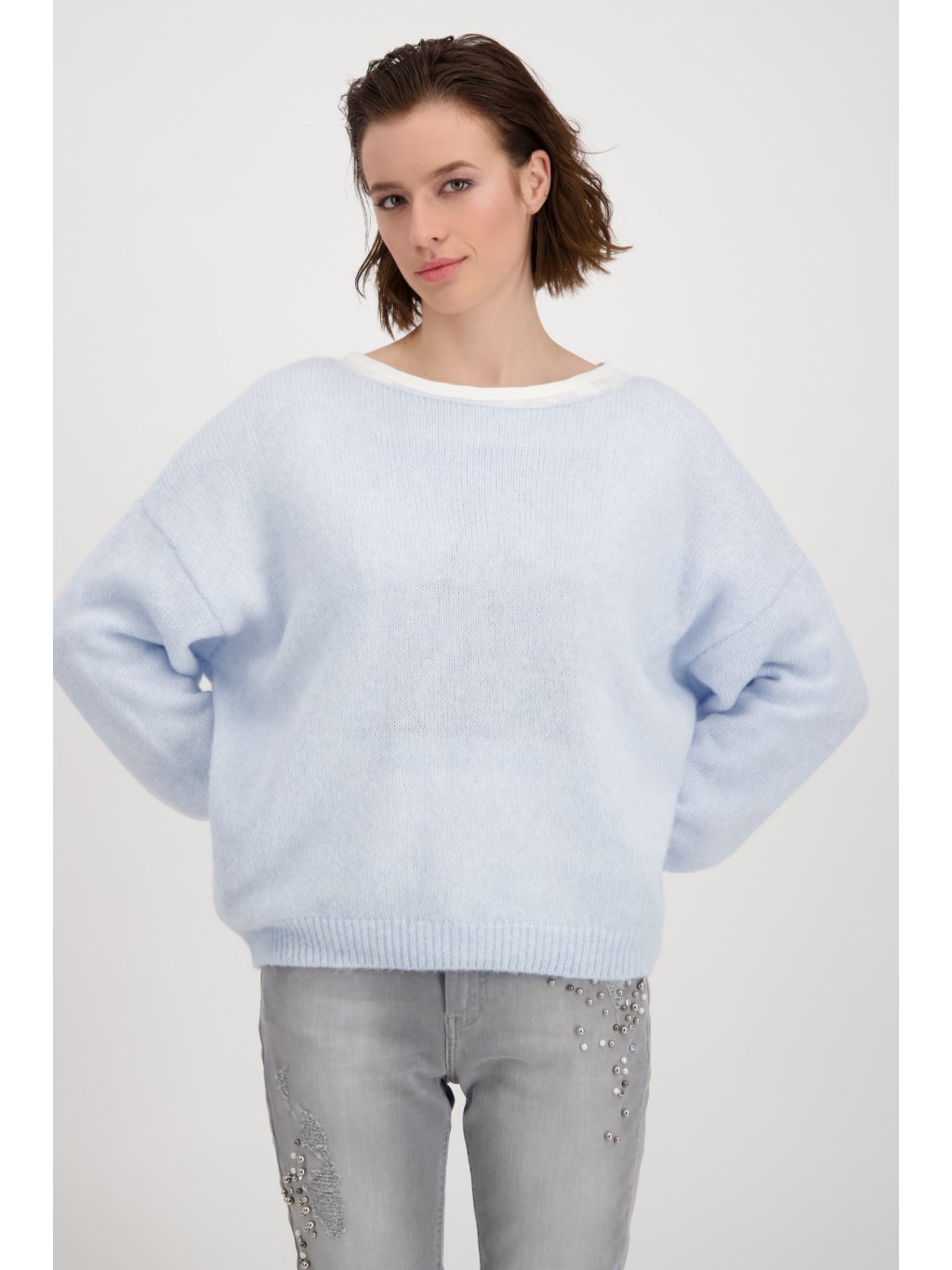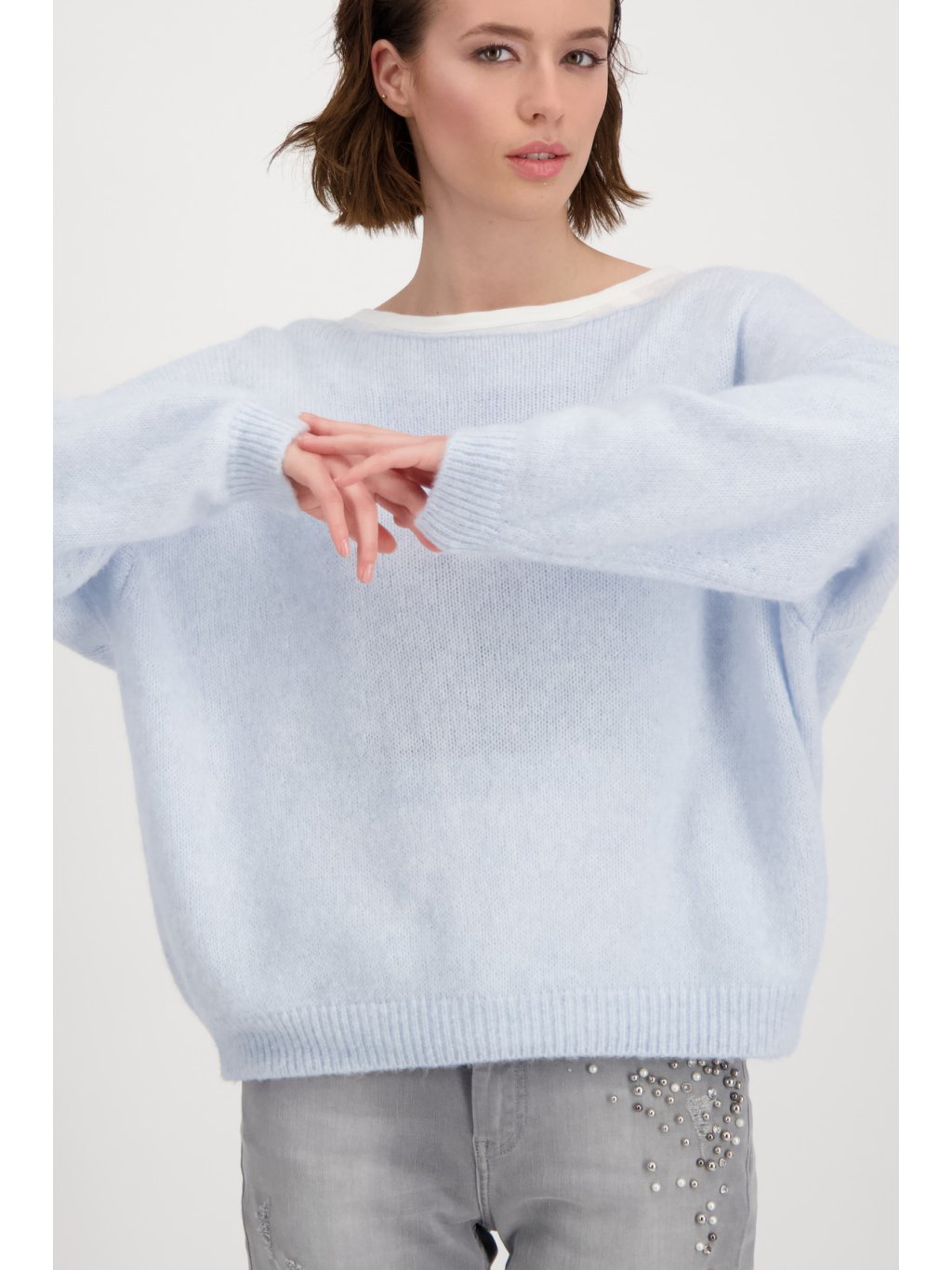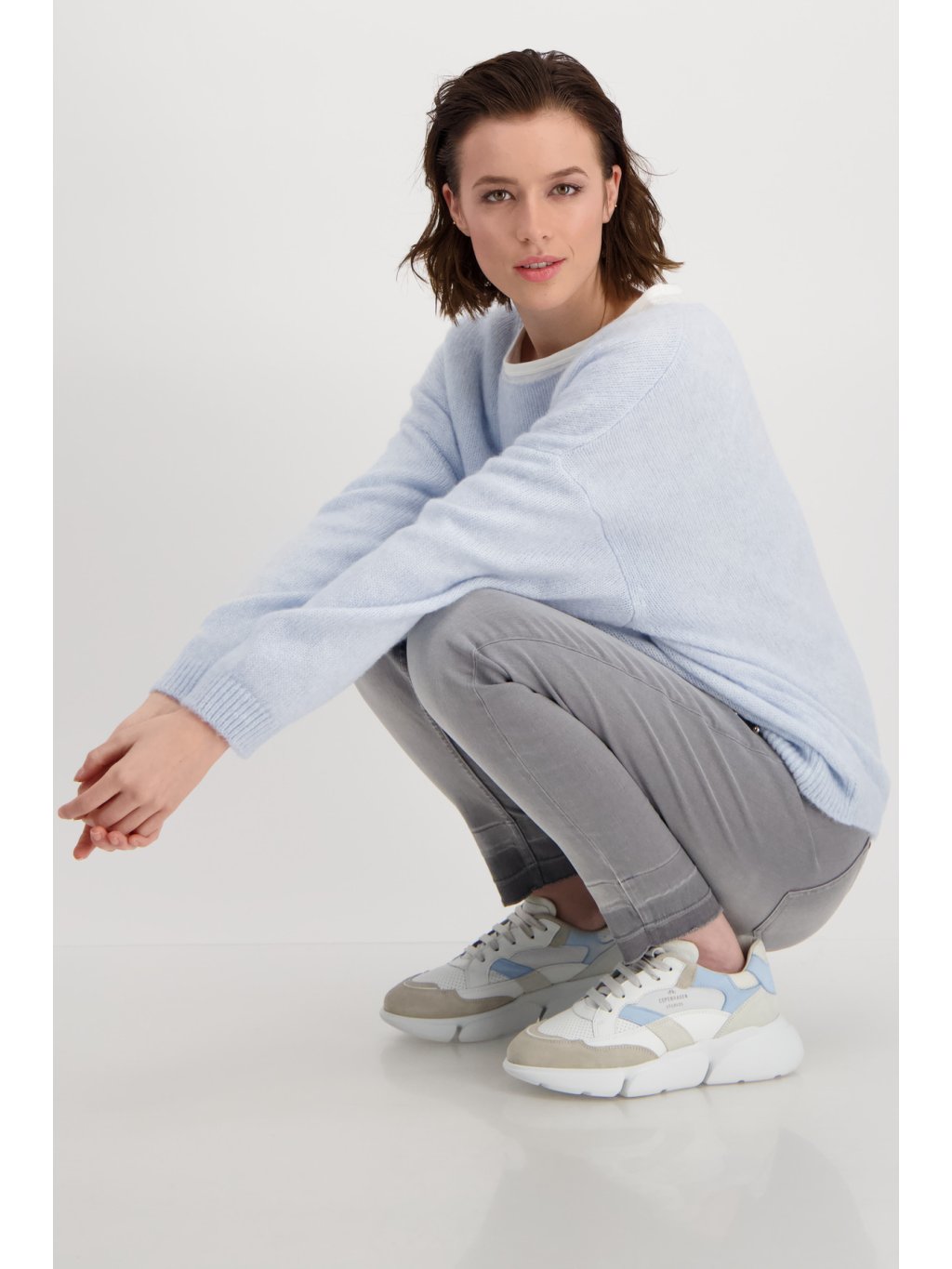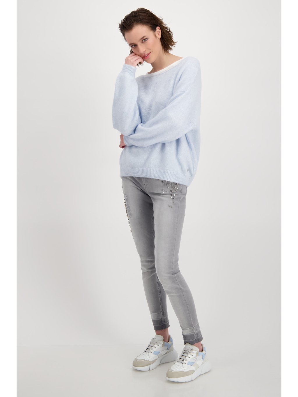 Lehký, pletený, měkký, hřejivý svetřík pro každý den. Svetr je rozšířeného střihu s kulatým výstřihem a žebrovanými konci rukávů.Doplňkové parametry