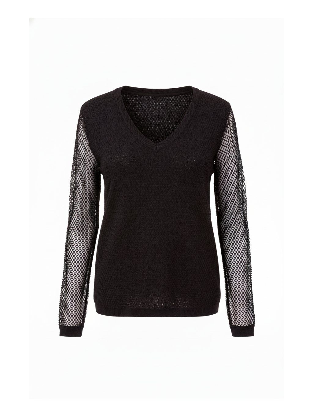 Dámský svetřík LEO&UGO v elegantní černé barvě zaujme sofistikovaným a velmi ženským designem. Model LEO&UGO má zajímavé síťované rukávy zdobené jemnými kamínky, které dodávají celému kousku výrazný a elegantní vzhled. Díky svému stylu je svetřík LEO&UGO ideální volbou pro ženy, které chtějí působit moderně a zároveň velmi elegantně.Doplňkové parametry