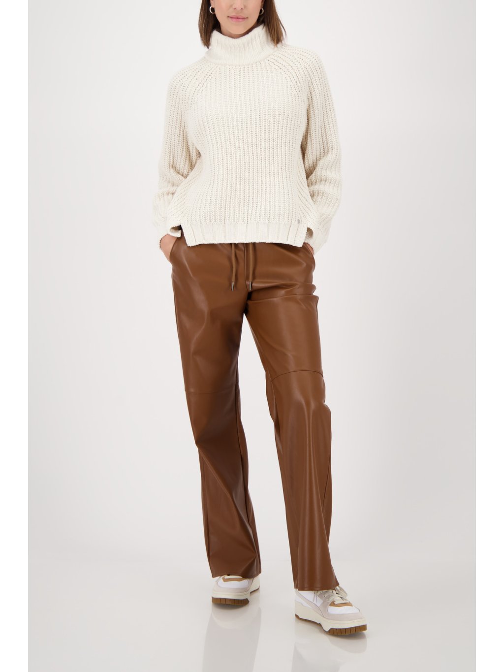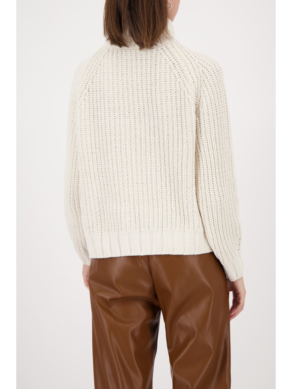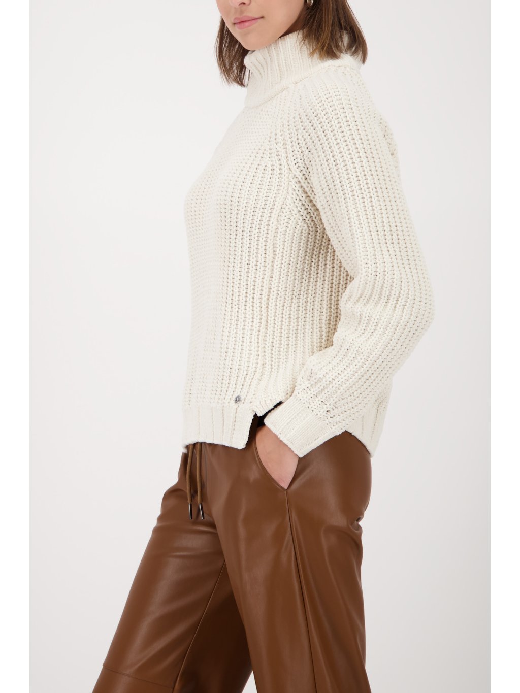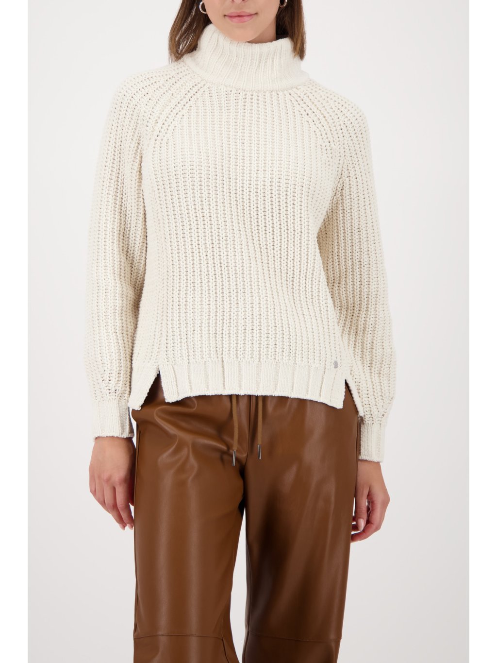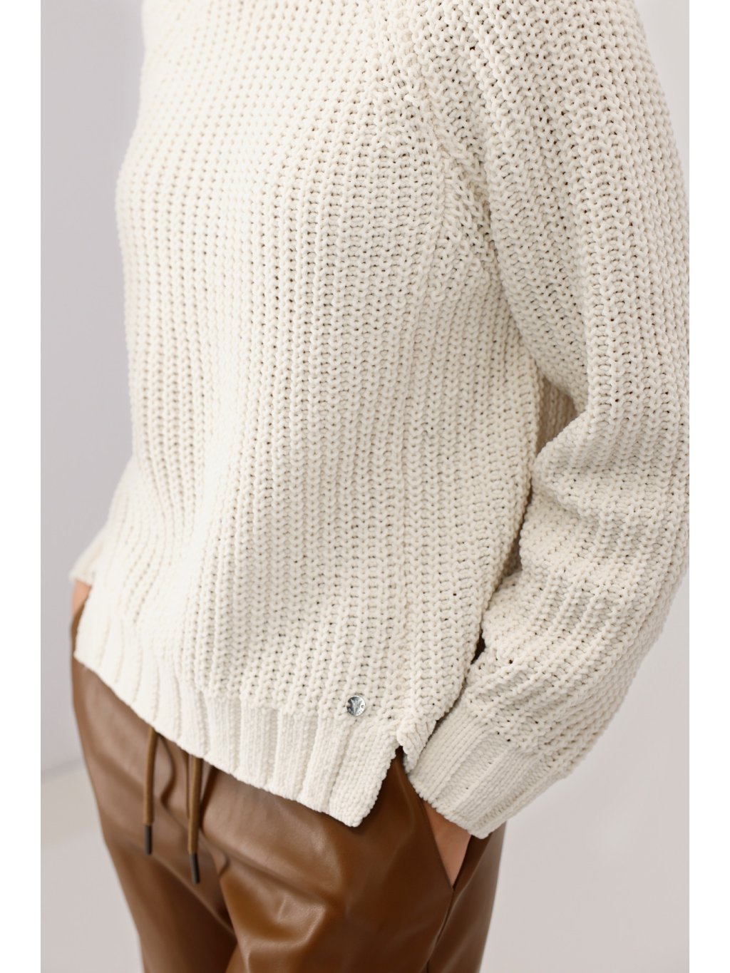 Elegantní pletený svetr Monari v jemném krémovém odstínu je dokonalým spojením pohodlí, kvality a moderního vzhledu. Hrubší struktura pleteniny dodává svetru charakter a luxusní dojem, zatímco měkký rolák příjemně zahřeje a podtrhne ženskou siluetu. Volnější střih s raglánovými rukávy zajišťuje maximální komfort při nošení a skvěle se přizpůsobí různým typům postavy. Tento svetr je ideální volbou pro chladnější dny – do práce, na schůzku i pro volný čas.Doplňkové parametry