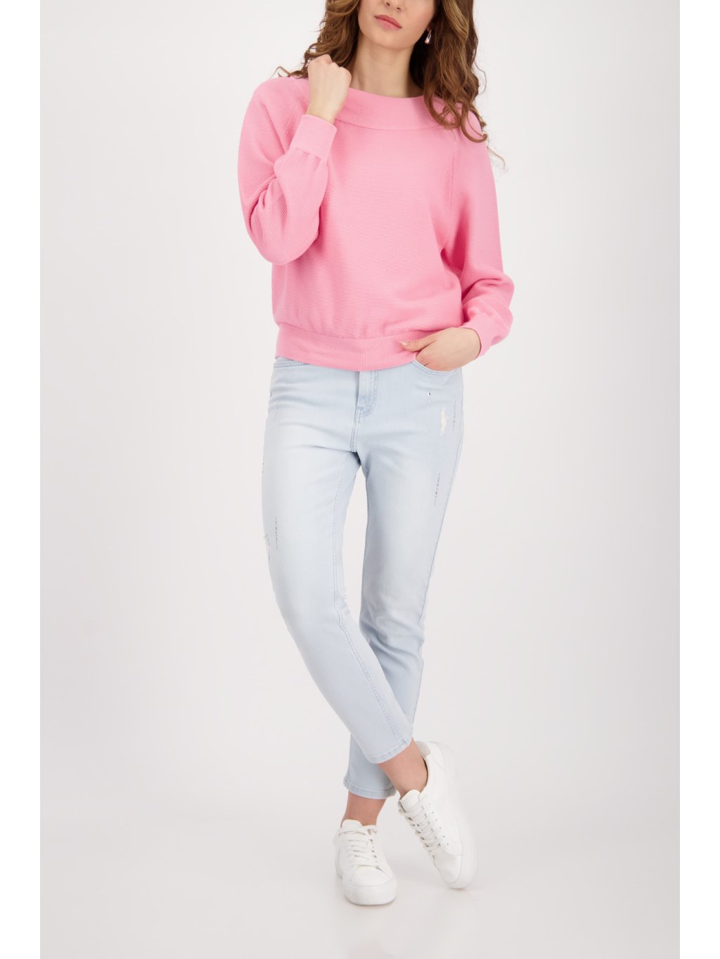Elegantní dámský svetr od značky MONARI v jemné růžové barvě je ideálním kouskem pro ženy, které hledají kombinaci pohodlí a nadčasového stylu. Tento svetr MONARI zaujme svou čistou linií, hladkým úpletem a moderním, lehce volnějším střihem, který krásně sedí na postavě. Dominantou je širší kulatý výstřih a jemně nabírané rukávy zakončené pružnými lemy, které dodávají modelu ženský a sofistikovaný vzhled. Díky kvalitnímu materiálu je svetr příjemný na nošení a vhodný jak pro každodenní outfit, tak i pro elegantnější kombinace. Pokud hledáte univerzální kousek, který snadno sladíte s kalhotami i sukní, tento svetr MONARI je skvělou volbou. Dopřejte si styl a kvalitu, kterou značka MONARI přináší v každé kolekci.