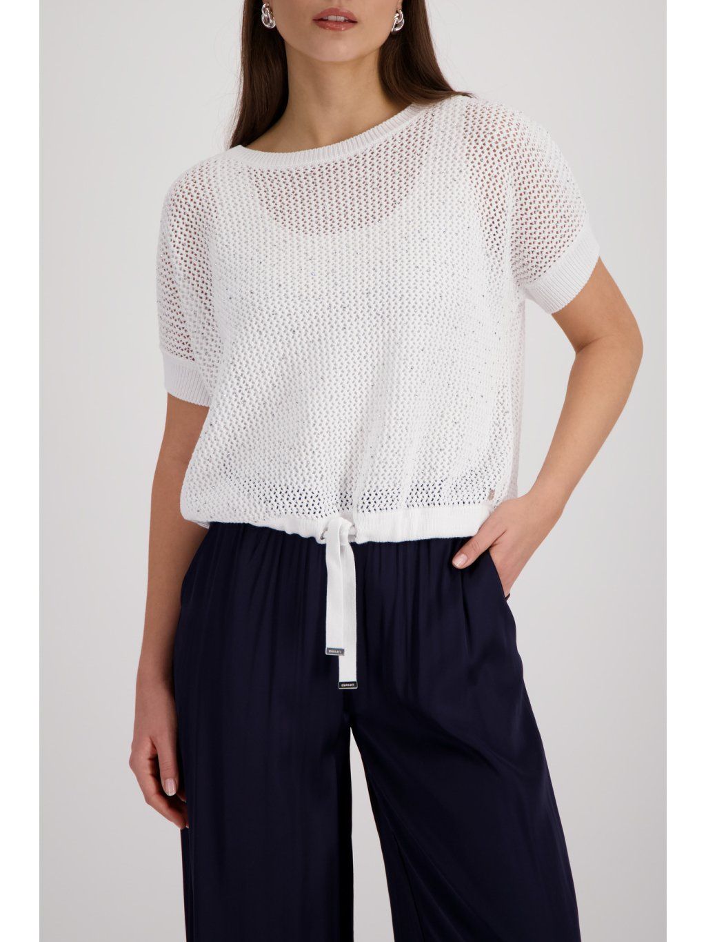 Tenhle svetr od značky Monari je přesně ten typ kousku, který zachrání každý outfit. Jednoduchý na první pohled, ale ve skutečnosti promyšlený do detailu. Svetr Monari v nadčasové bílé barvě působí svěže, luxusně a dokonale čistě. Jemné třpytivé detaily dodávají modelu nenápadný lesk, který zaujme, ale nepůsobí přeplácaně. Volnější střih zajistí pohodlí po celý den a spodní stažení na šňůrku ti umožní upravit siluetu přesně podle potřeby. Tohle je přesně ten kousek, který unosíš neustále – do práce, na schůzku i na volný den. Stačí obléct a máš hotovo. Pokud chceš mít ve skříni jistotu, která vypadá vždy upraveně a stylově, svetr Monari je sázka na jistotu. Tip na styling: Kombinuj s džínami, béžovými kalhotami nebo sukní a nech vyniknout jeho čistý, luxusní vzhled – přesně ten styl, který nikdy nevyjde z módy.Doplňkové parametry