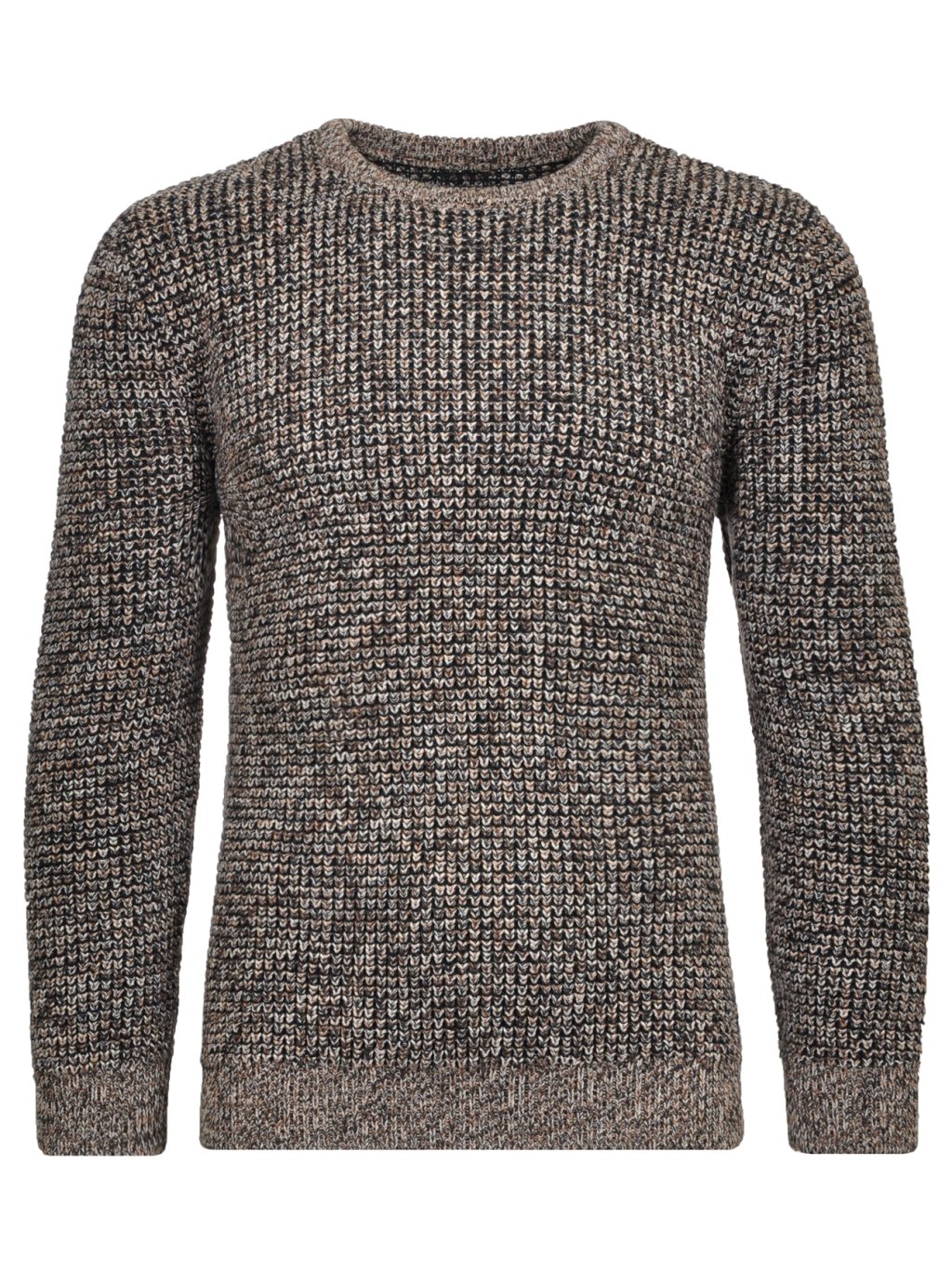 Pánský svetr s kulatým výstřihem. V tomto svetru se zaručeně ohřejete. Hnědé a černé odstíny barev tvoří zajímavý vzhled.