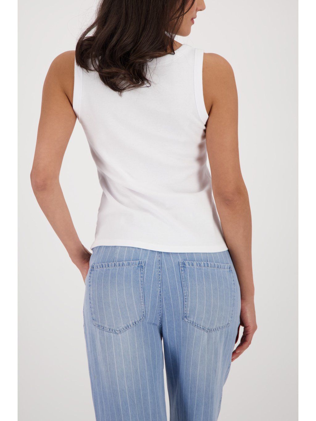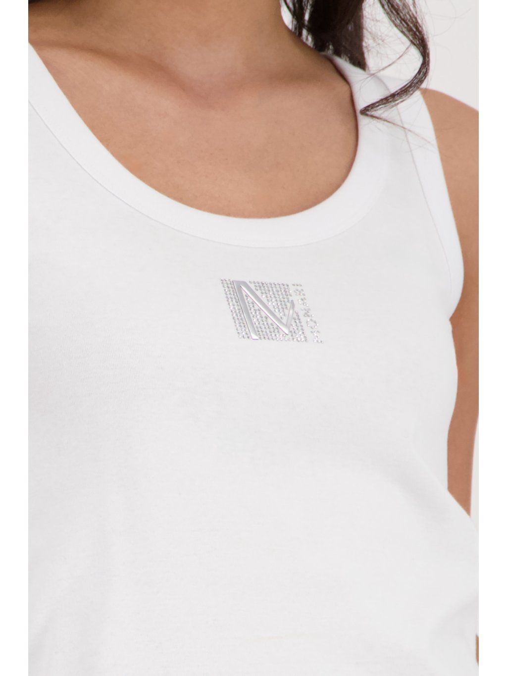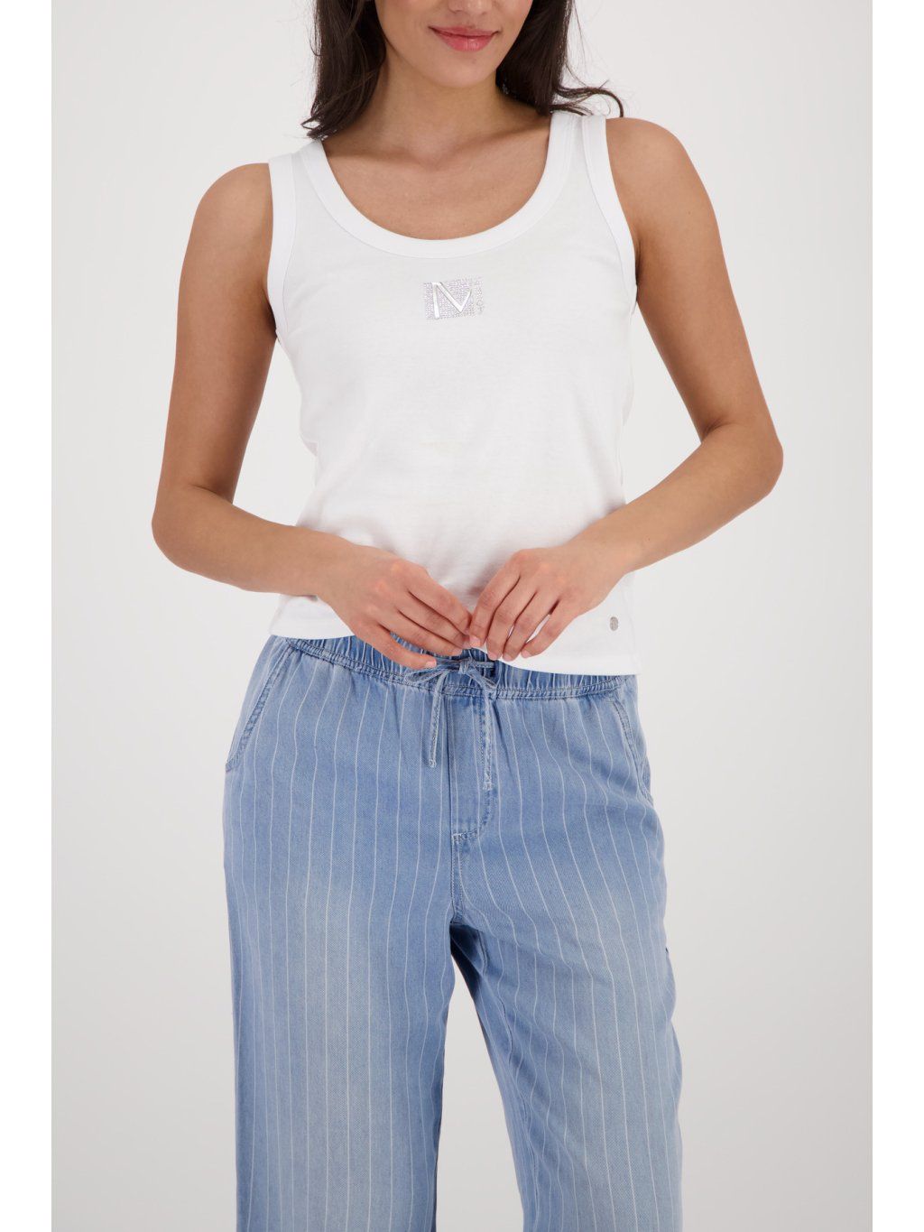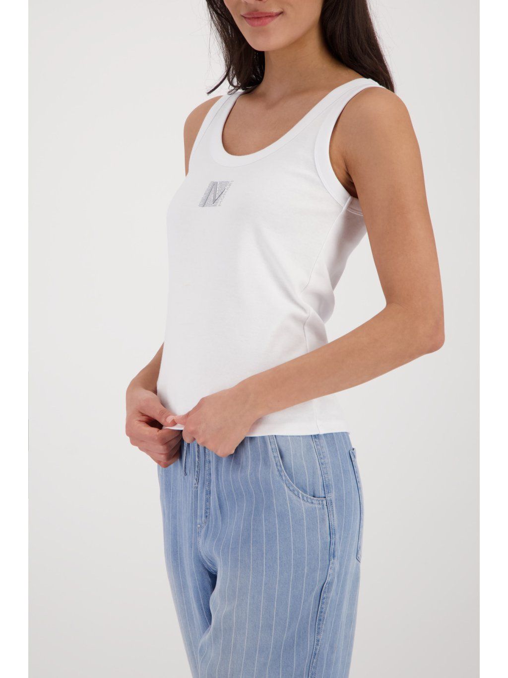 Minimalismus, který funguje na maximum. Tílko od značky Monari je přesně ten kousek, který v šatníku nikdy nezůstane ležet. Tílko Monari v nadčasové bílé barvě působí svěže, čistě a velmi elegantně. Decentní logo s jemným třpytem dodává modelu nenápadný luxusní detail, který zaujme bez zbytečné výraznosti. Příjemný, měkký materiál a pohodlný střih zaručují, že se v něm budeš cítit skvěle po celý den. Tohle je kousek, který využiješ samostatně i jako základ pro vrstvení – a vždy bude vypadat dobře. Pokud hledáš univerzální, stylový a pohodlný základ, tílko Monari je přesně to, co potřebuješ. Tip na styling: Noste pod sako, košili nebo jen k džínám – vytvoříš outfit, který působí čistě, moderně a přirozeně elegantně.Doplňkové parametry