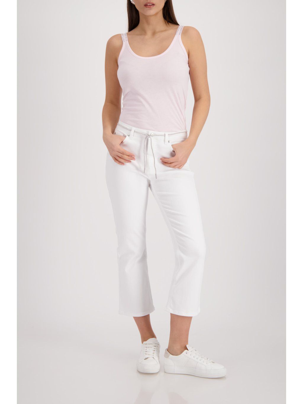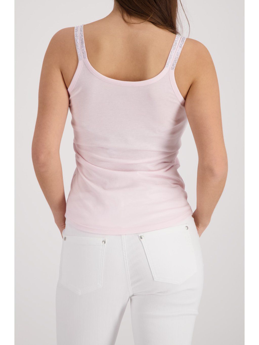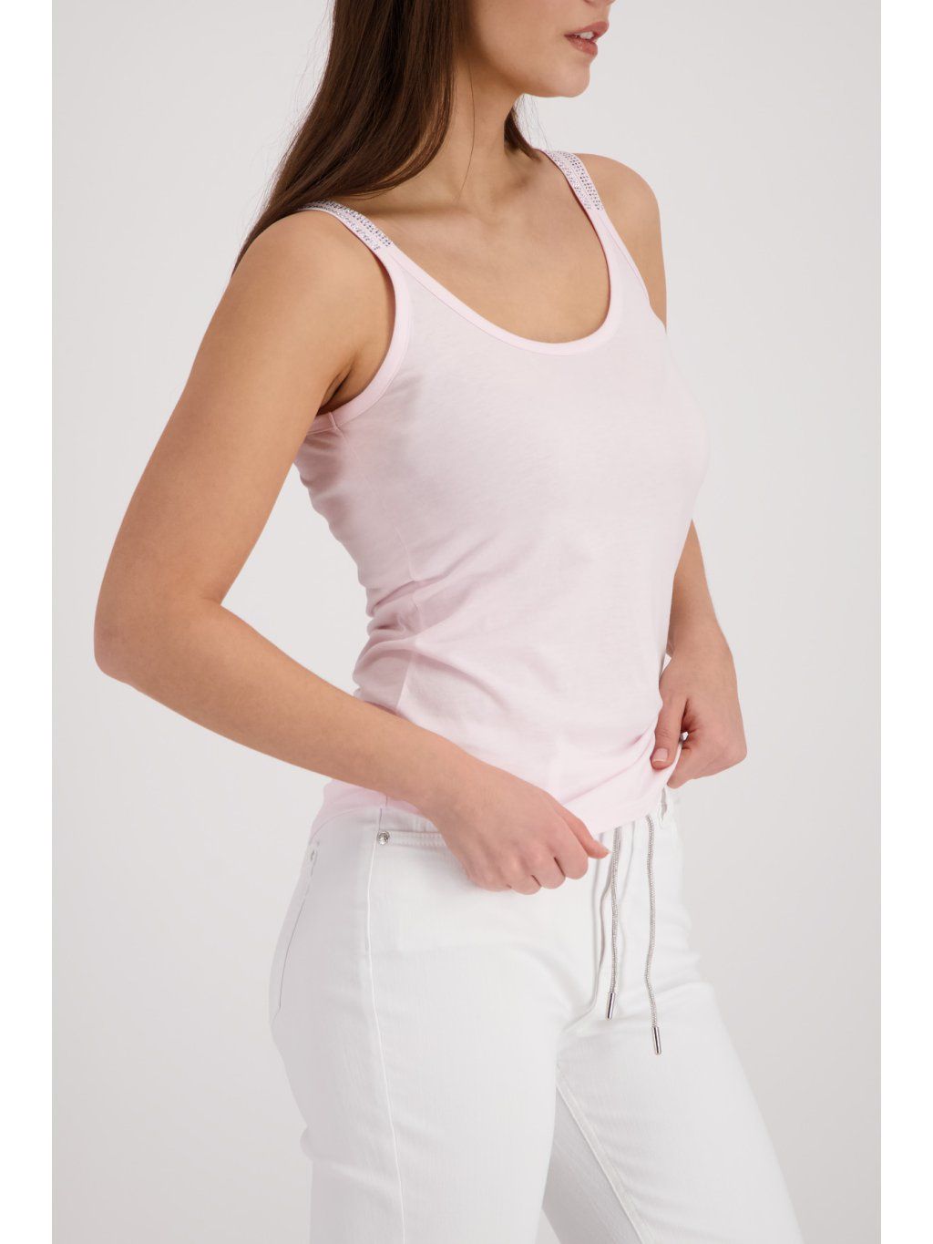 Jednoduché, ale rozhodně ne obyčejné. Toto tílko od značky Monari je přesně ten kousek, který pozvedne i ten nejzákladnější outfit. Tílko Monari v jemné světle růžové barvě působí něžně, svěže a velmi žensky. Hlavním prvkem jsou zdobená ramínka s třpytivými kamínky, která dodávají modelu elegantní a lehce luxusní nádech. Příjemný materiál a pohodlný střih zajistí maximální komfort po celý den. Tohle je přesně ten kousek, který funguje samostatně i jako stylový základ pod sako nebo košili. Pokud chceš něco jednoduchého, ale s efektem, který zaujme, tílko Monari je jasná volba. Tip na styling: Noste samostatně k džínám nebo sukni, případně pod sako – ramínka krásně vyniknou a dodají outfitu šmrnc.Doplňkové parametry