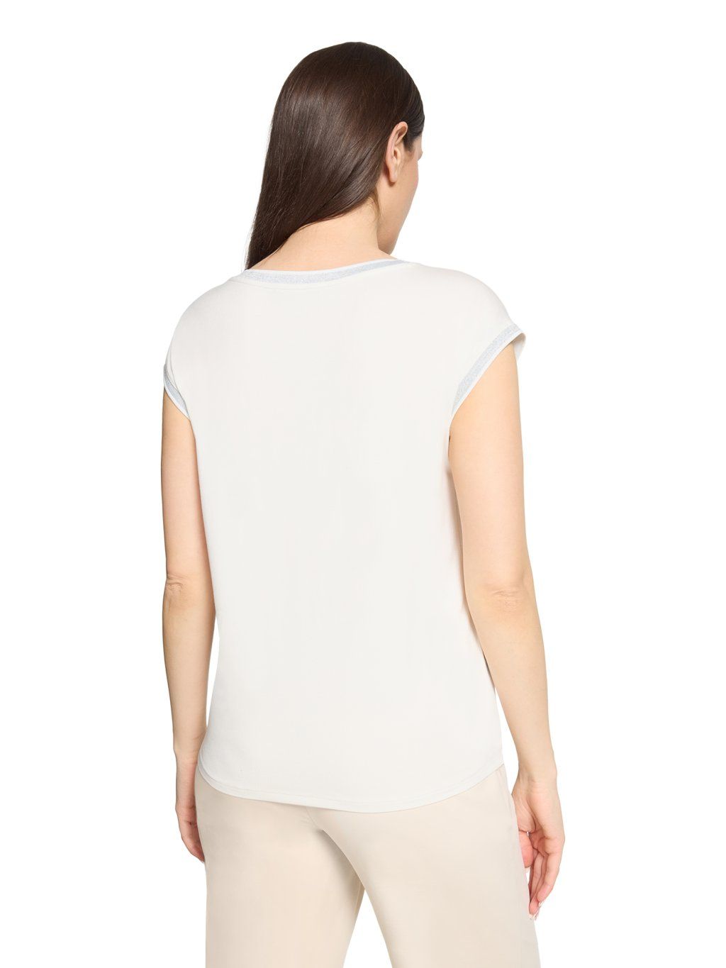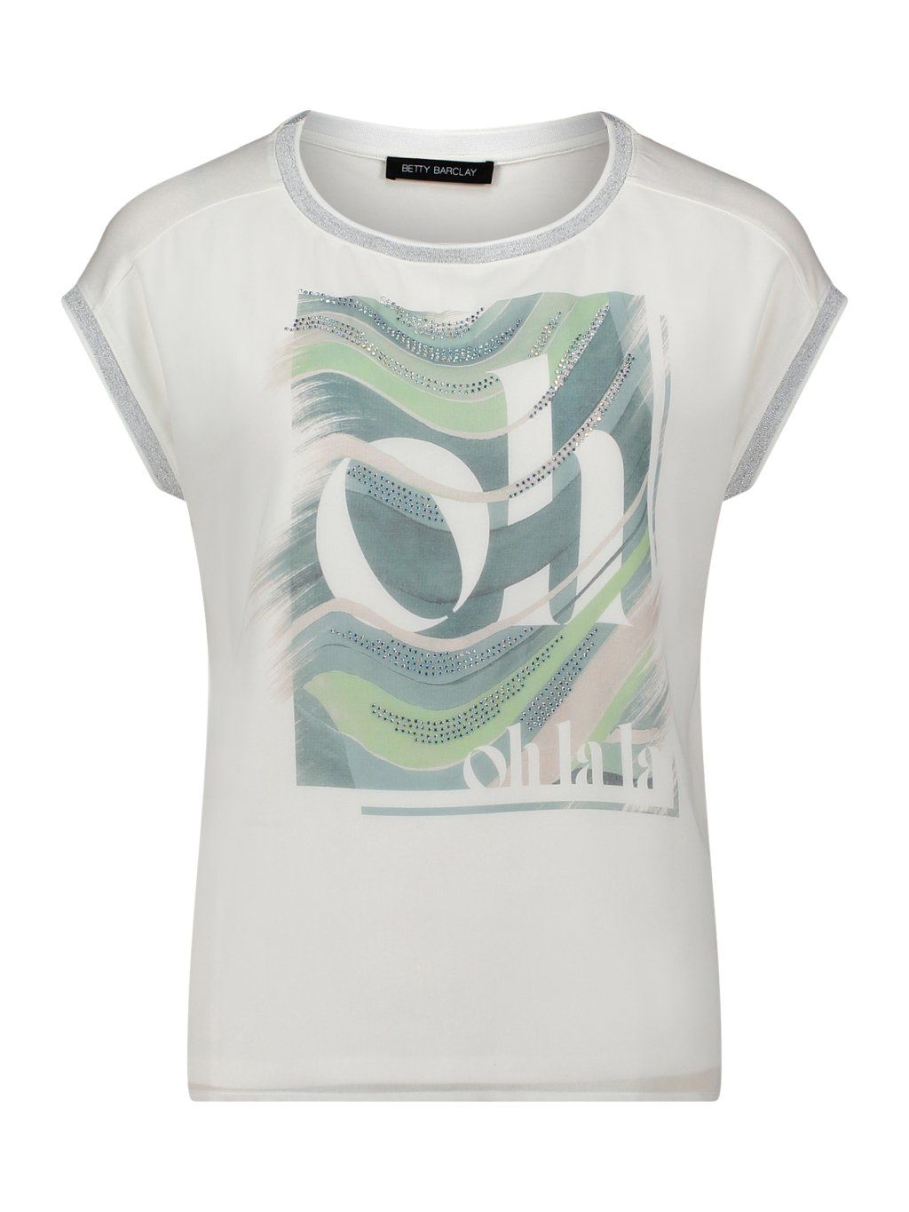 Dámské tričko Betty Barclay v elegantní bílé barvě zaujme moderním potiskem v jemných zeleno-šedých tónech doplněným decentními kamínky, které dodávají outfitu luxusní nádech. Toto tričko Betty Barclay má kulatý výstřih s jemným lesklým lemem, krátký rukáv a příjemný lehký materiál, který zaručuje komfort při celodenním nošení. Stylový kousek od značky Betty Barclay snadno zkombinujete s džínami i elegantními kalhotami a vytvoříte tak outfit vhodný do práce i na volný čas.Doplňkové parametry