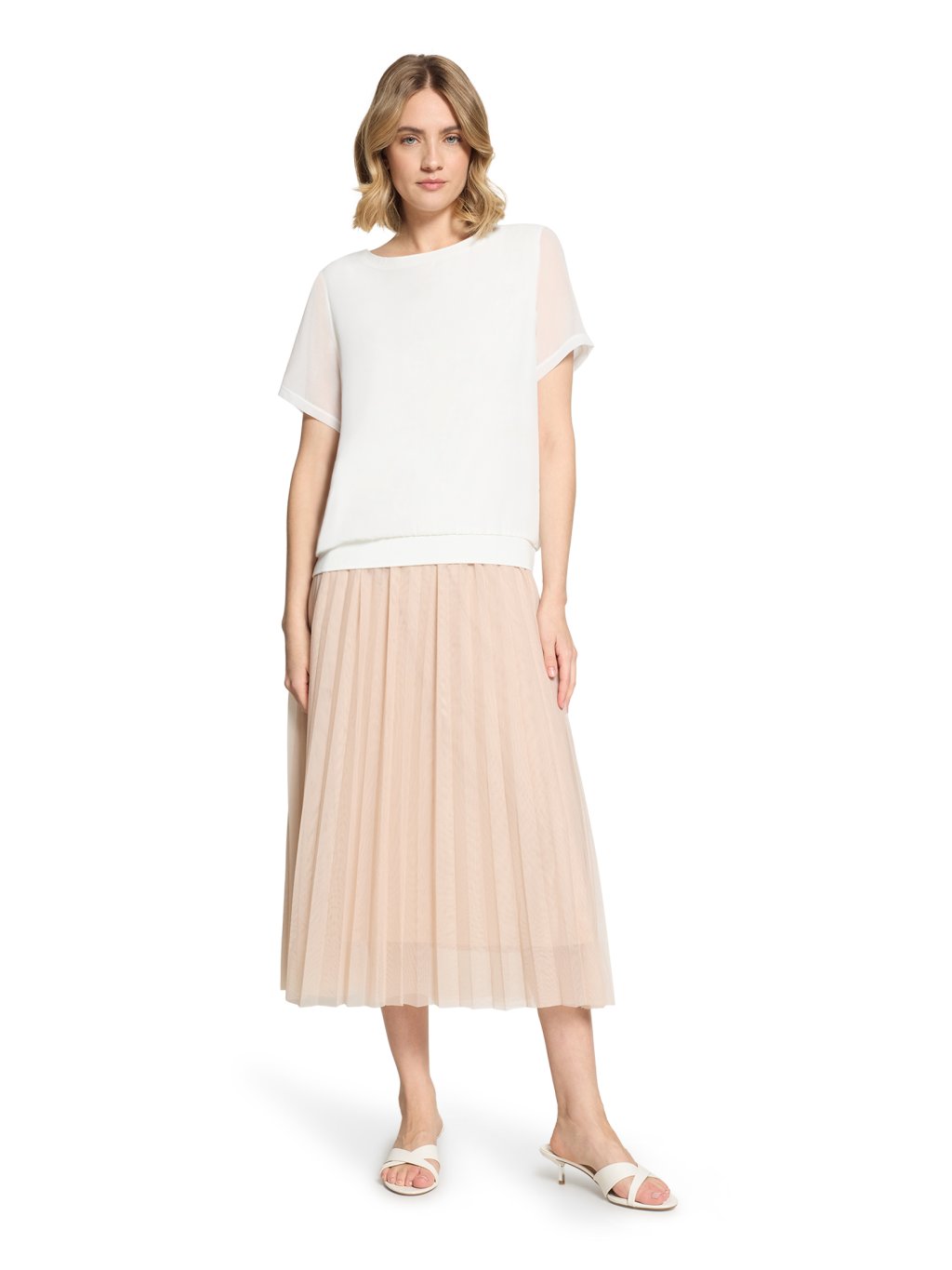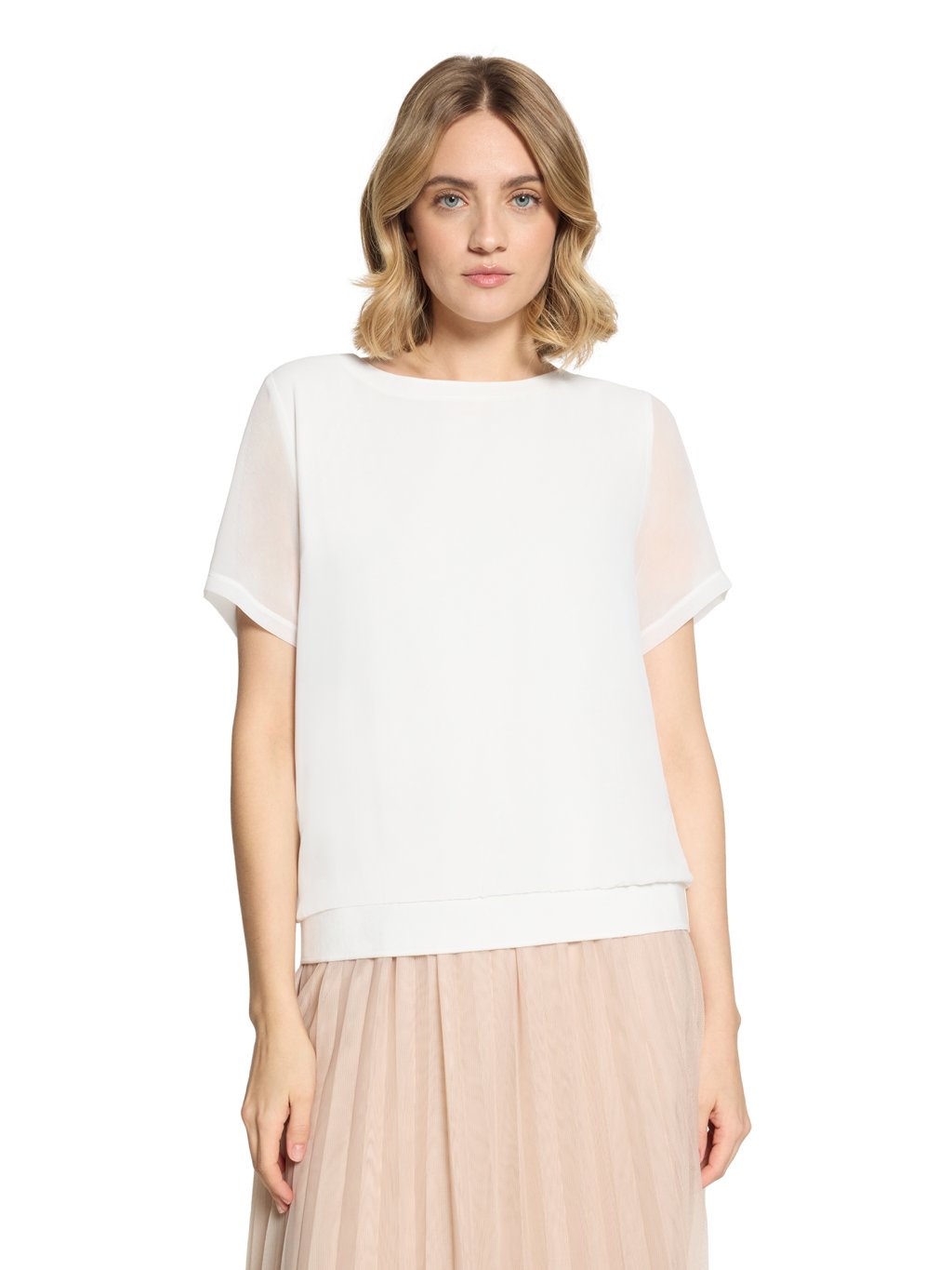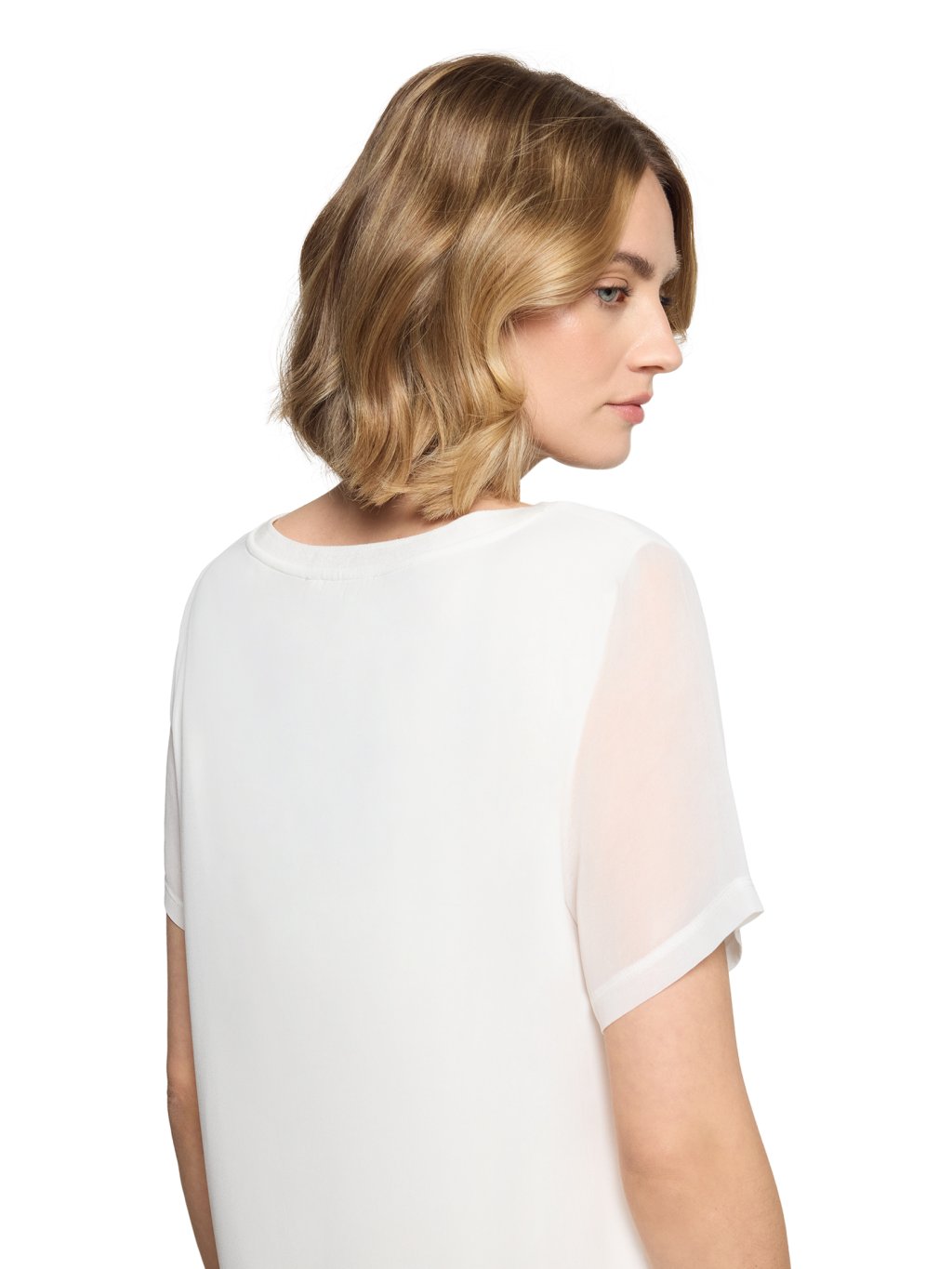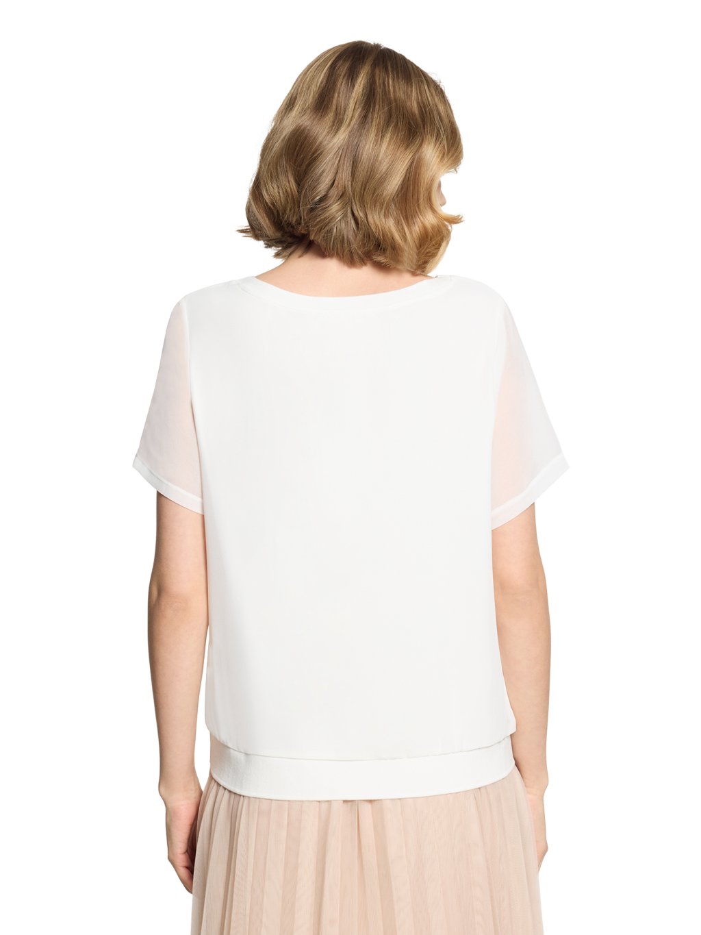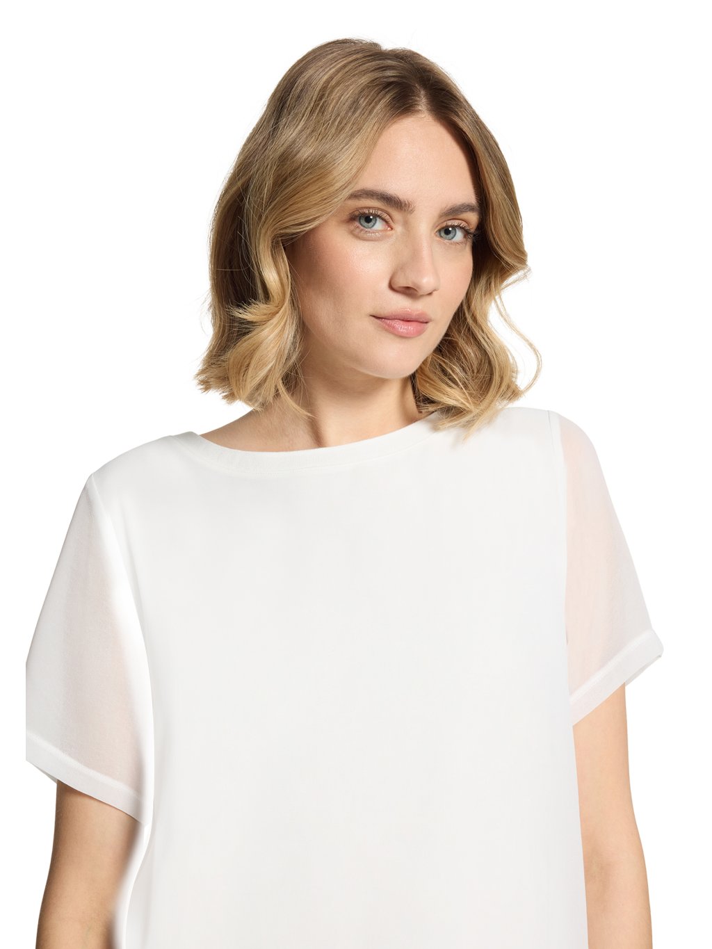 Jednoduché, nadčasové a velmi univerzální. Toto bílé tričko od značky Betty & Co je přesně ten typ kousku, který v šatníku funguje na desítky způsobů. Střih: volnější, lehce rovný střih, který příjemně splývá a nepřiléhá na tělo Výstřih: klasický kulatý výstřih – čistý a elegantní Rukávy: krátké, pohodlné, s jemně širším zakončením Spodní lem: širší pružný lem, který vytváří hezkou siluetu a drží tvar Barva: čistá bílá – ideální základ pro kombinování Styl: minimalistický, nadčasový, velmi snadno kombinovatelný Proč ho zákaznice milují: perfektní základ do šatníku hodí se k džínám, sukni i pod sako působí čistě, svěže a elegantně Styling tip do prodejny: Skvěle funguje například s béžovými kalhotami, džínami nebo pod lehké letní sako – vytvoří moderní a upravený outfit během pár vteřin.Doplňkové parametry